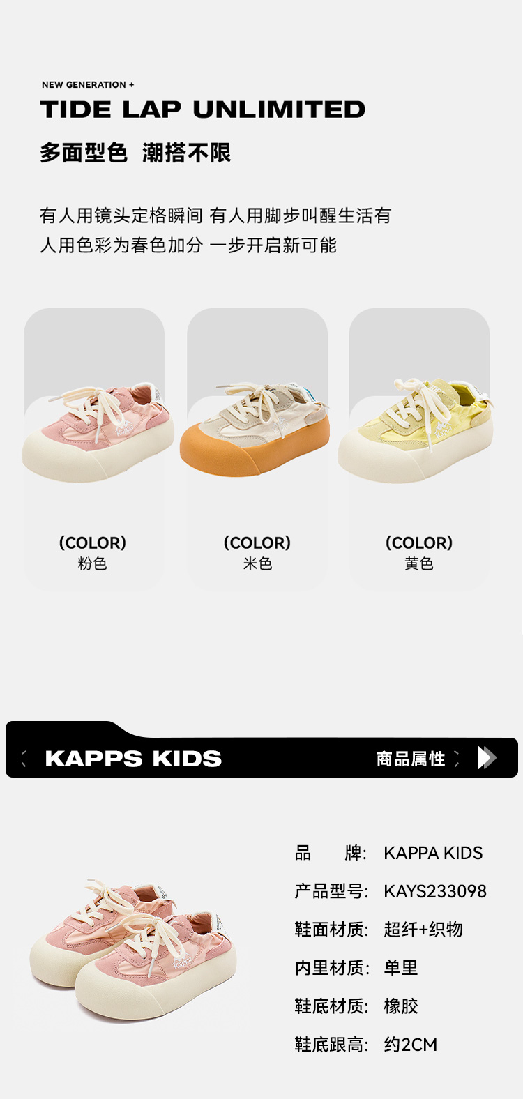 Kappa kids儿童德训鞋透气百搭休闲鞋中大童男女童板鞋蓬蓬鞋春款男童透气鞋子