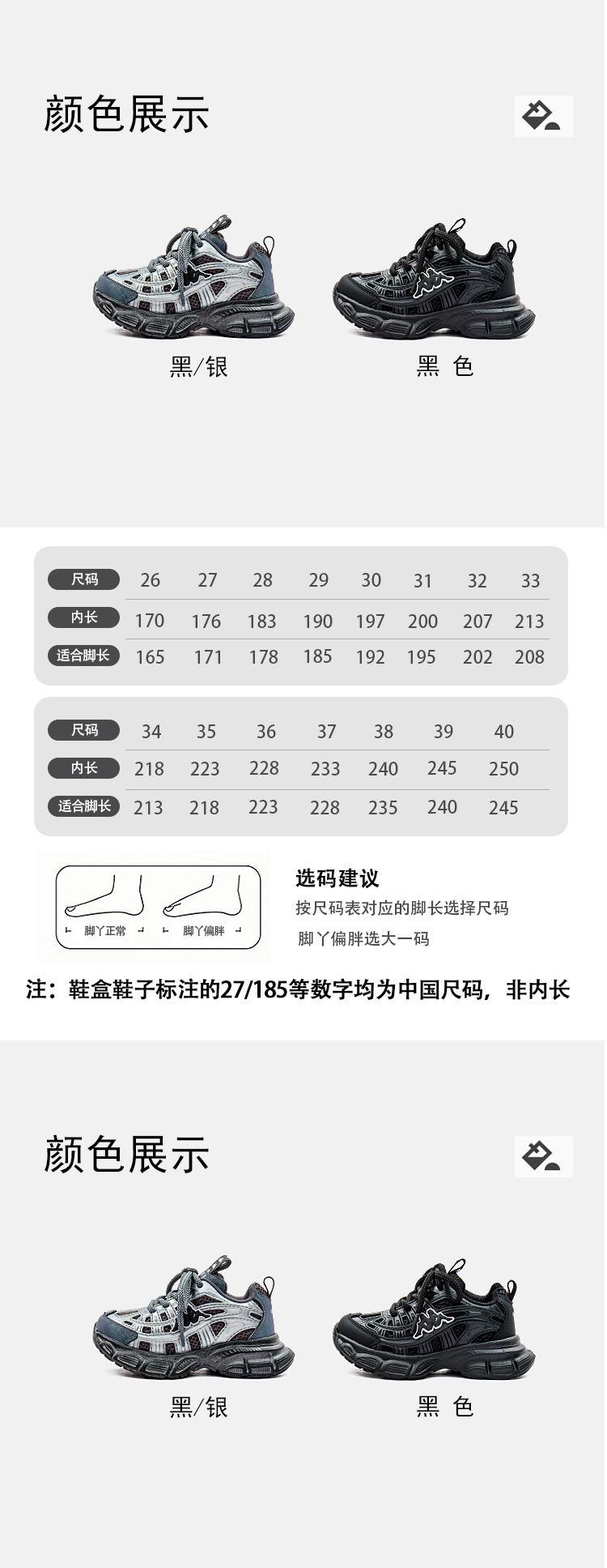 商品名称:Kappa Kids儿童秋款鞋子中大童跑步鞋轻便运动鞋黑武士老爹鞋亲子童鞋男童女童鞋子