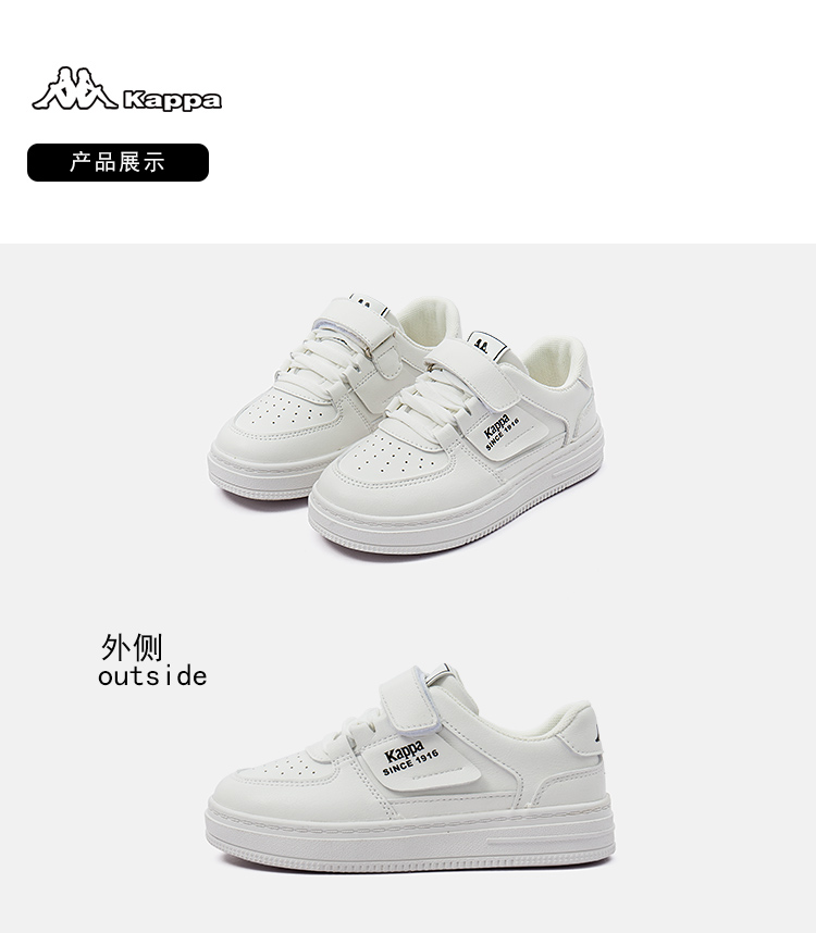 商品名称:Kappa Kids卡帕童鞋轻便舒适小白鞋2024春季新款夏款休闲中大童软底板鞋子男女童鞋男童