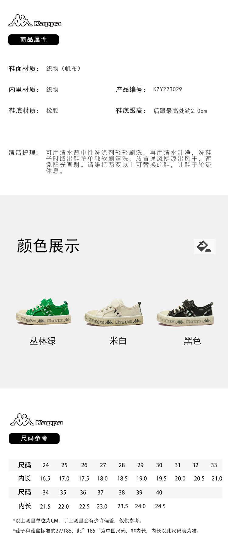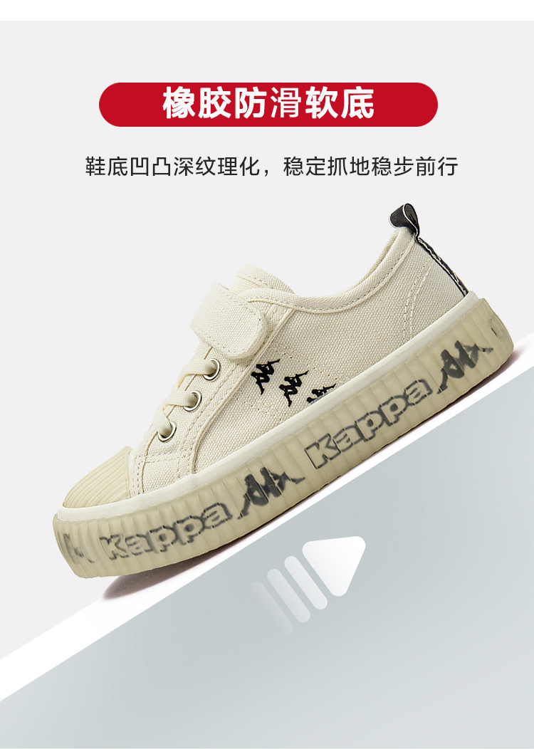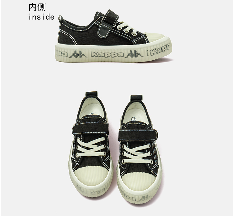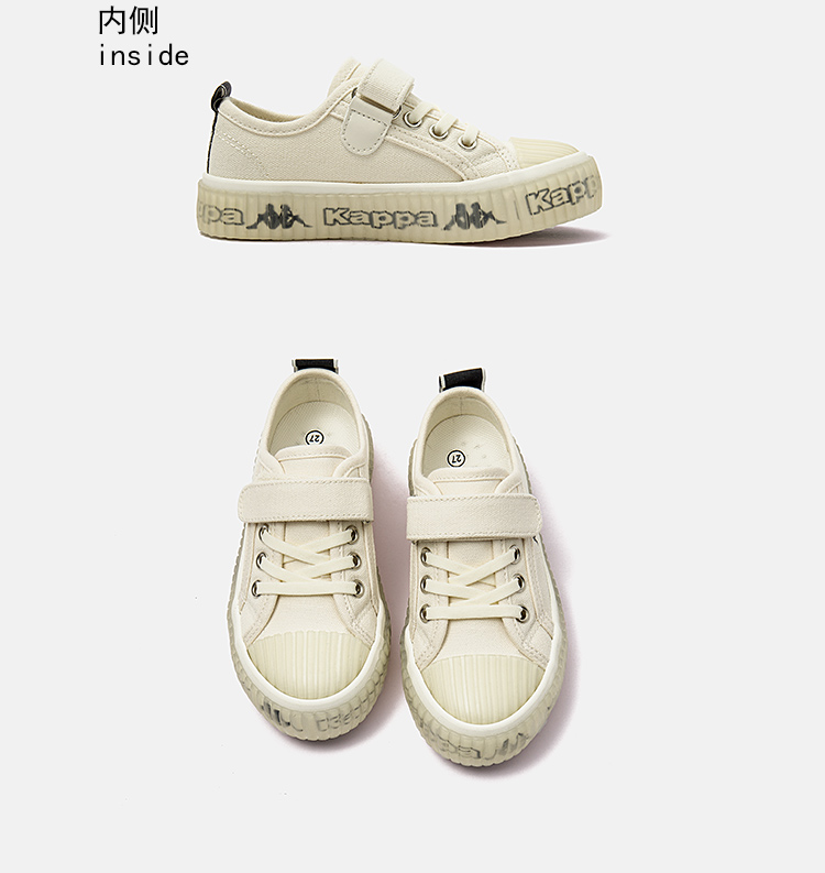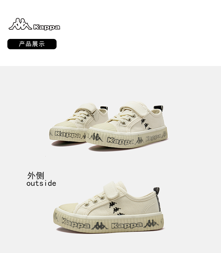 商品名称:Kappa kids卡帕儿童魔术贴帆布鞋子2024春秋季新款中大童透气小白板鞋男女童百搭鞋子男童