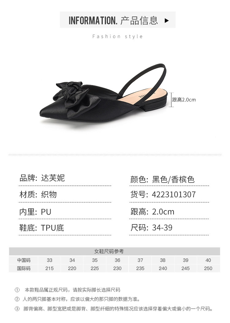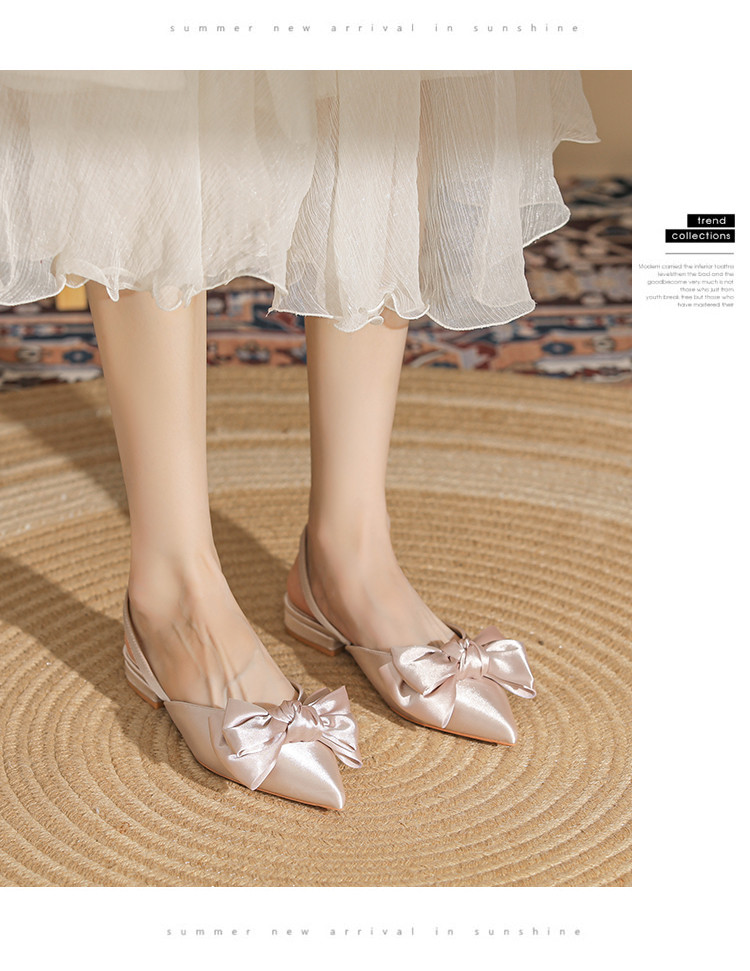 商品名称:【简约百搭】仙女风蝴蝶结后空单鞋女春夏款尖头气质通勤平底鞋 330199