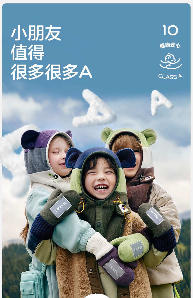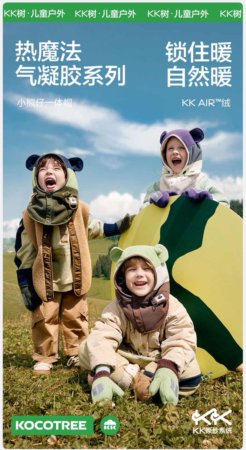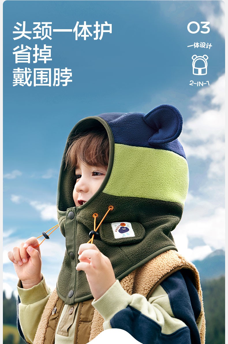 【直供】KK树儿童帽子秋冬季宝宝套头帽冬天围巾围脖一体护耳保暖小熊仔一体帽