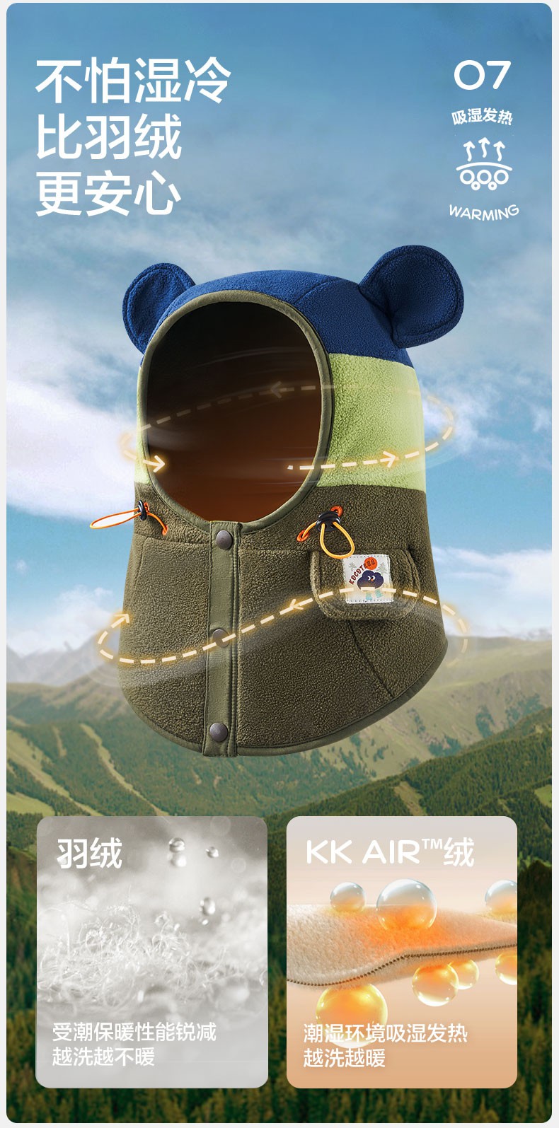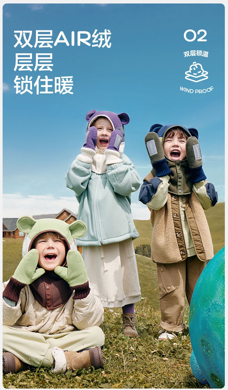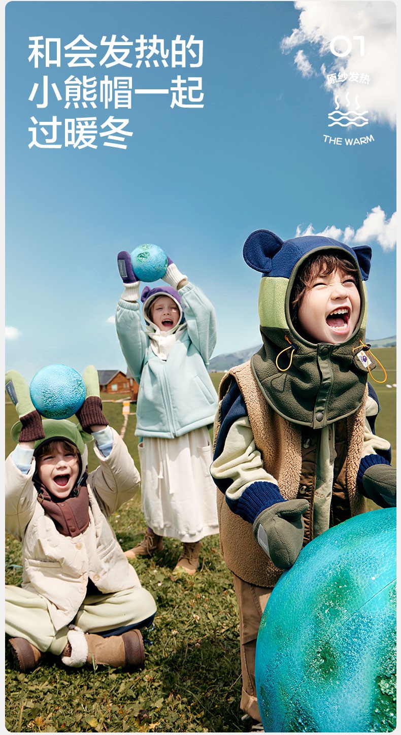 【直供】KK树儿童帽子秋冬季宝宝套头帽冬天围巾围脖一体护耳保暖小熊仔一体帽