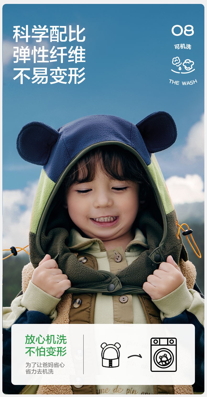 商品名称:【直供】KK树儿童帽子秋冬季宝宝套头帽冬天围巾围脖一体护耳保暖小熊仔一体帽