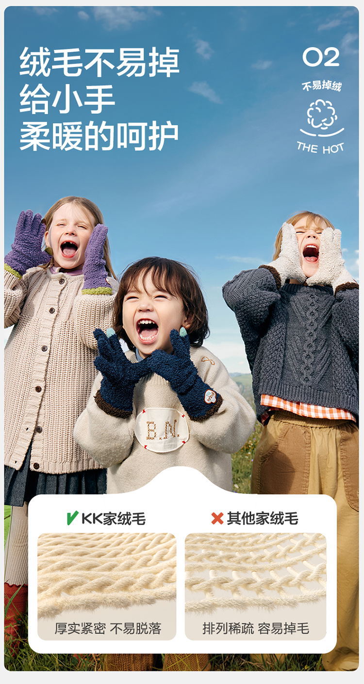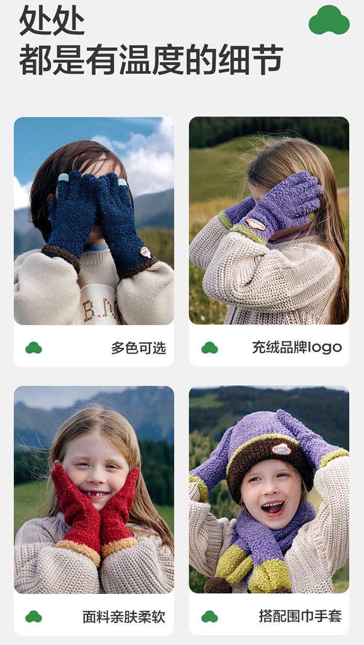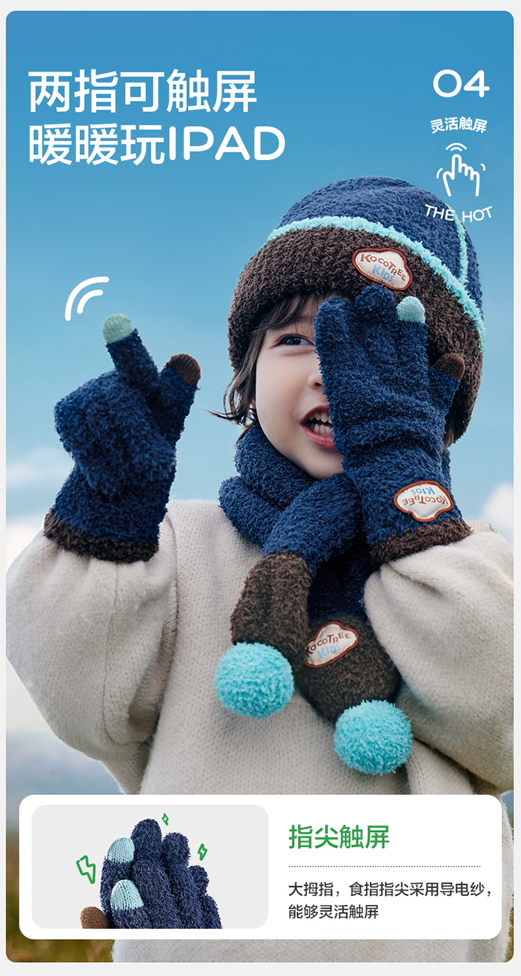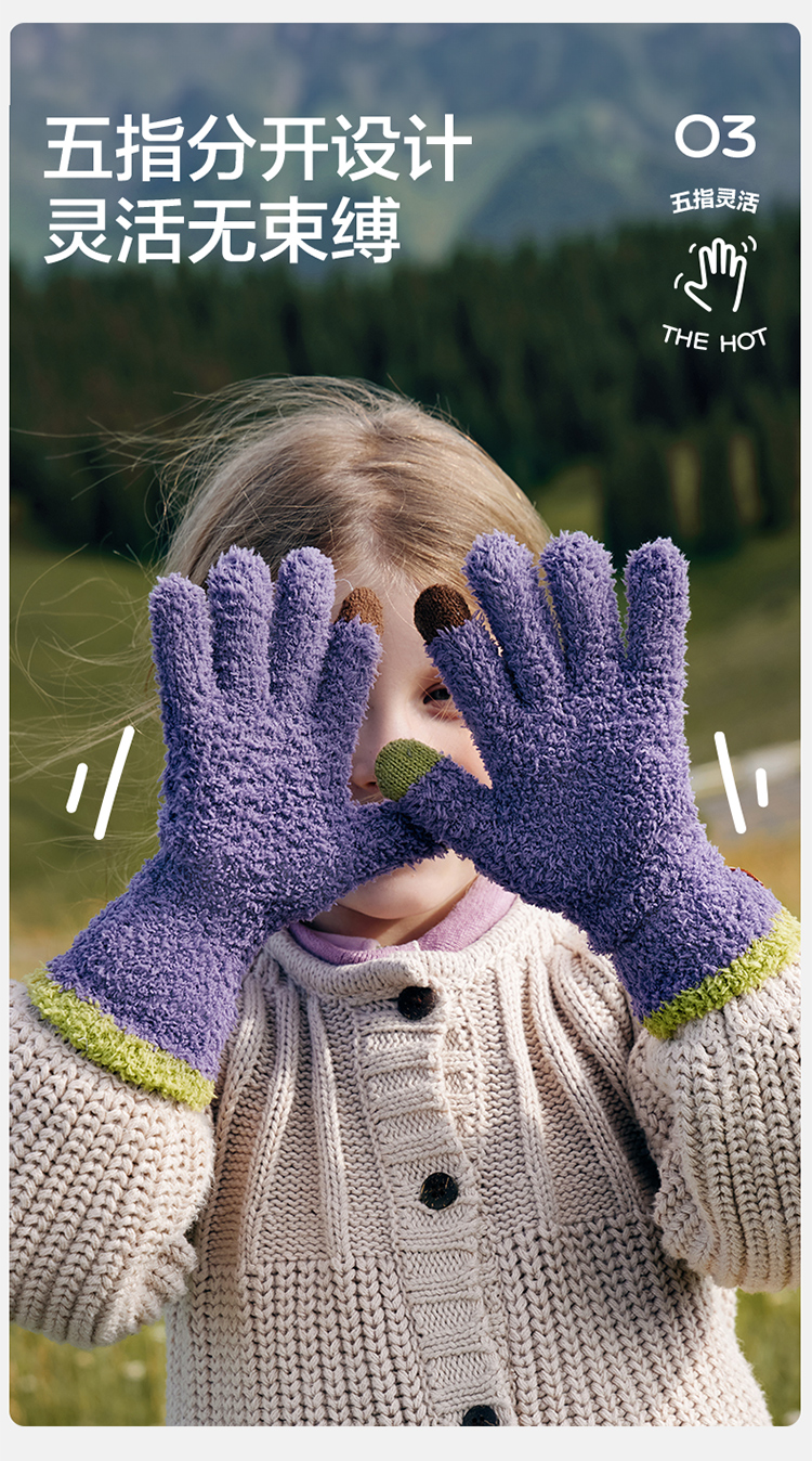 商品名称:【直供】KK树可触屏儿童手套冬天保暖宝宝大童五指分指秋冬抗静电