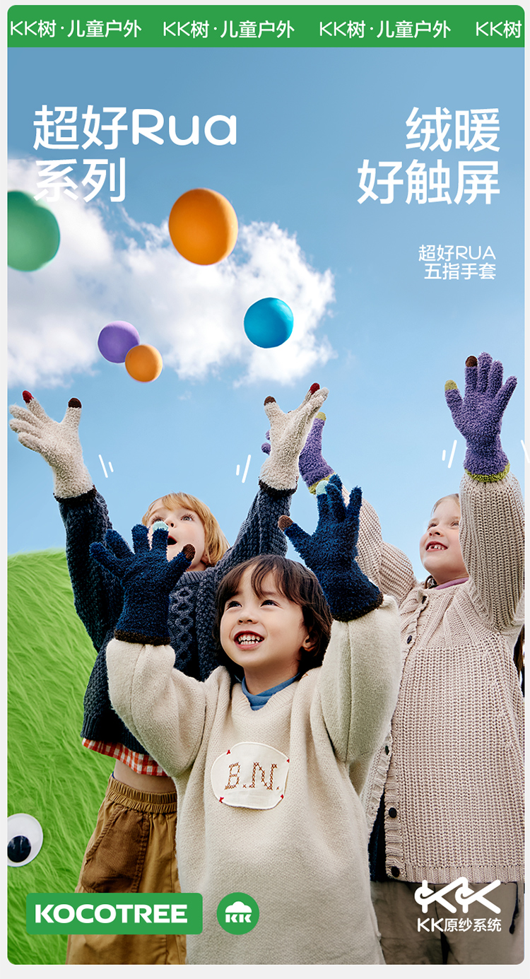 【直供】KK树可触屏儿童手套冬天保暖宝宝大童五指分指秋冬抗静电