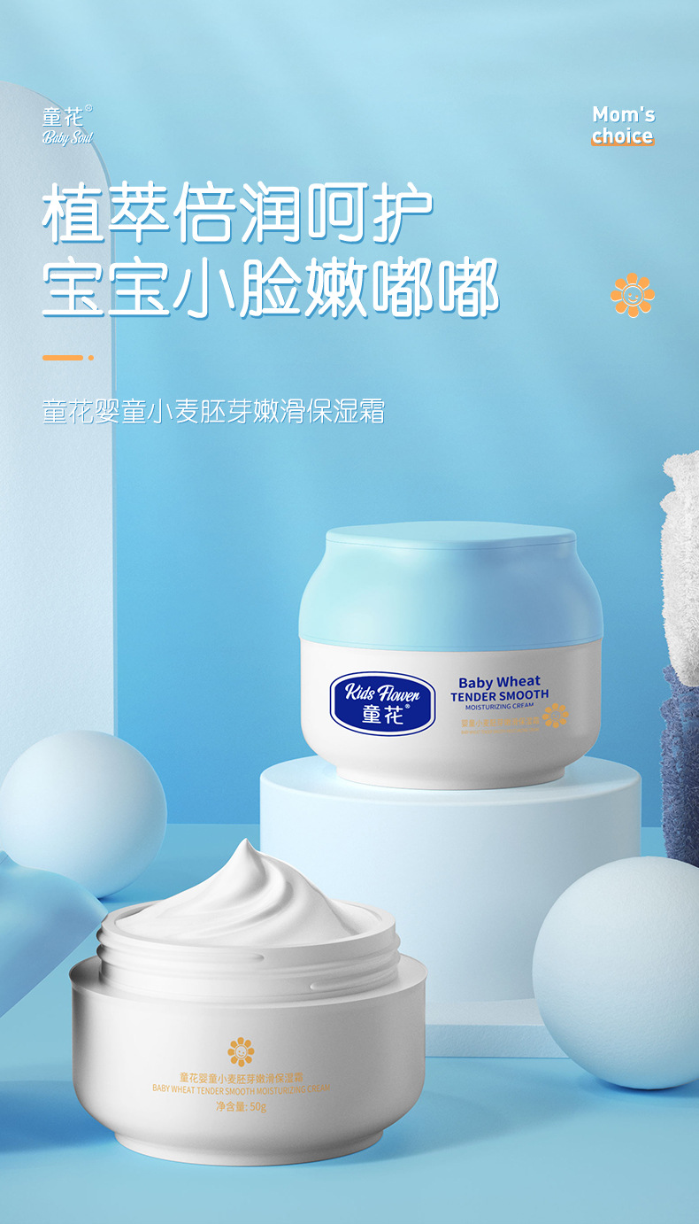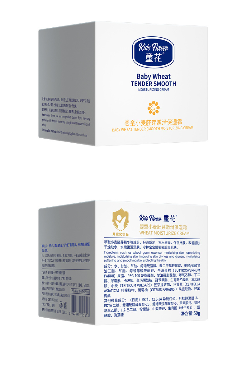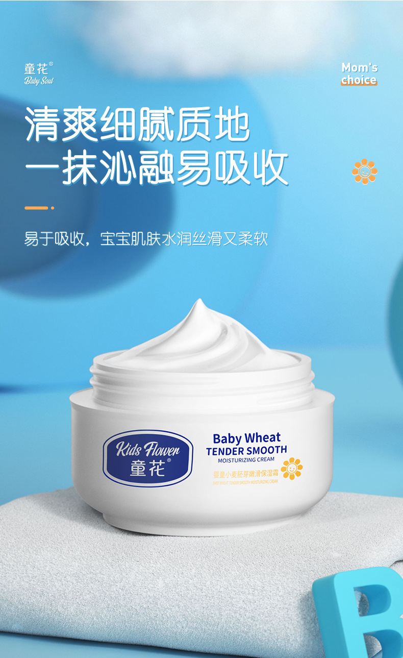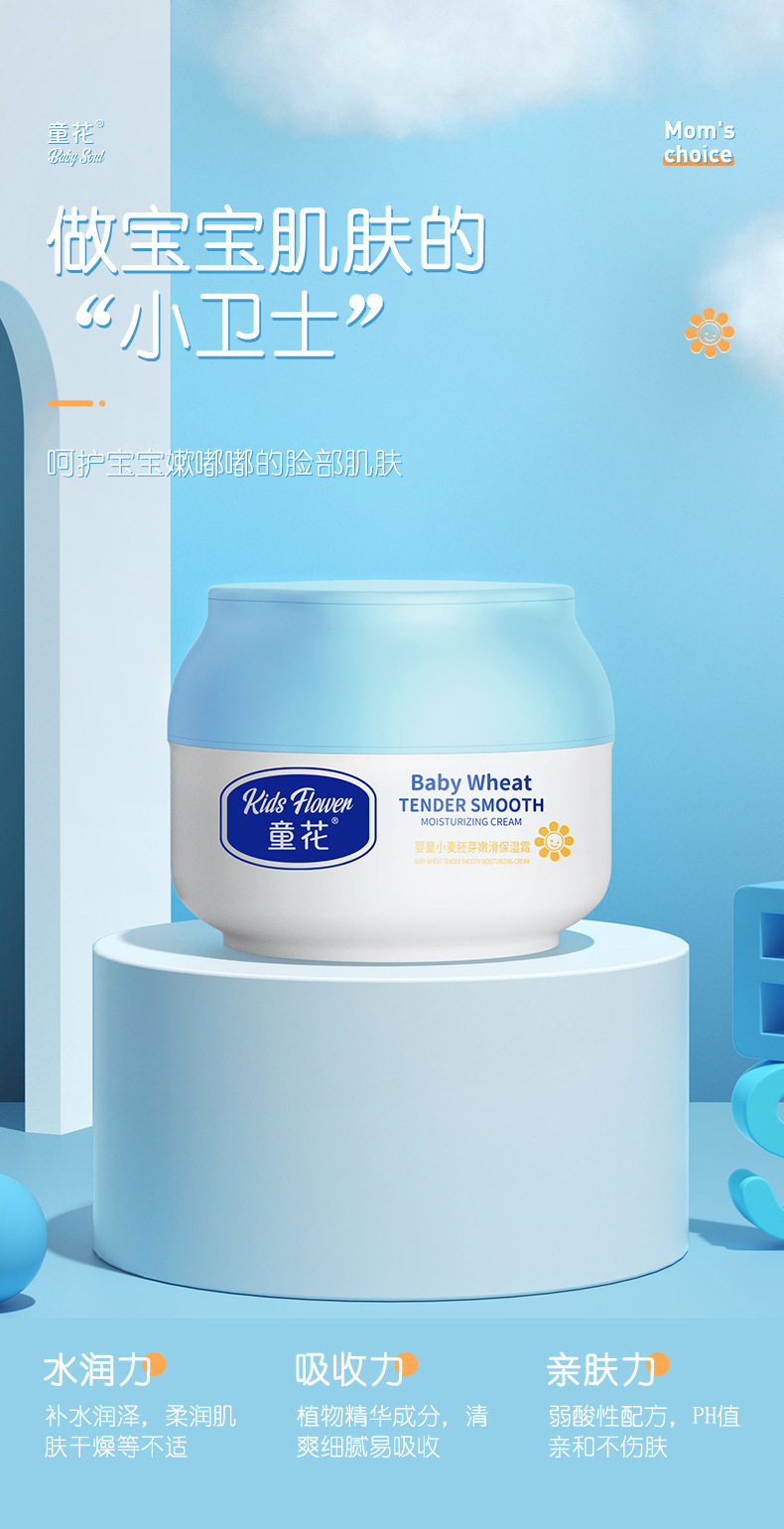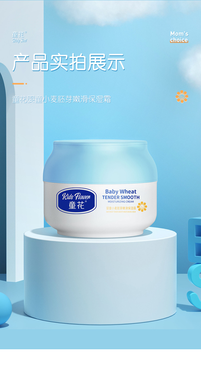 商品名称:童花婴幼儿童小麦胚芽保湿霜轻盈补水保湿滋润柔滑靓肤清爽细腻防皴防干燥面霜50g
