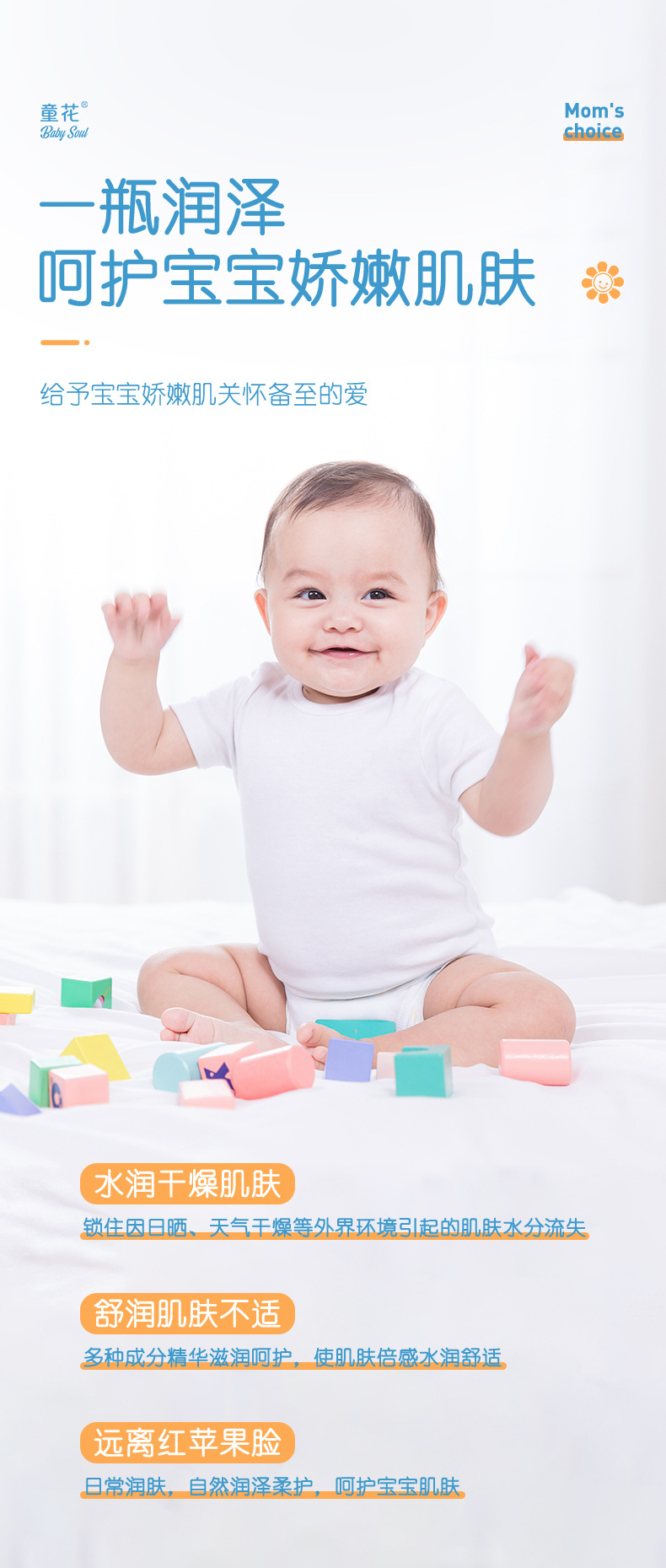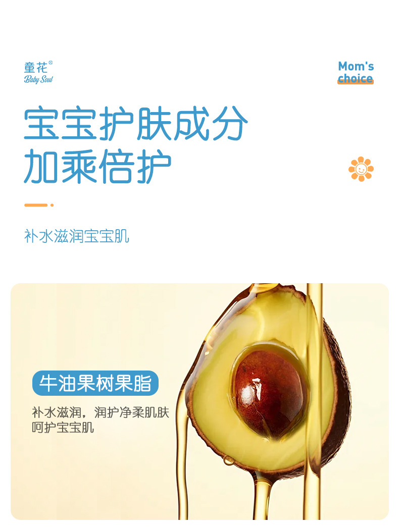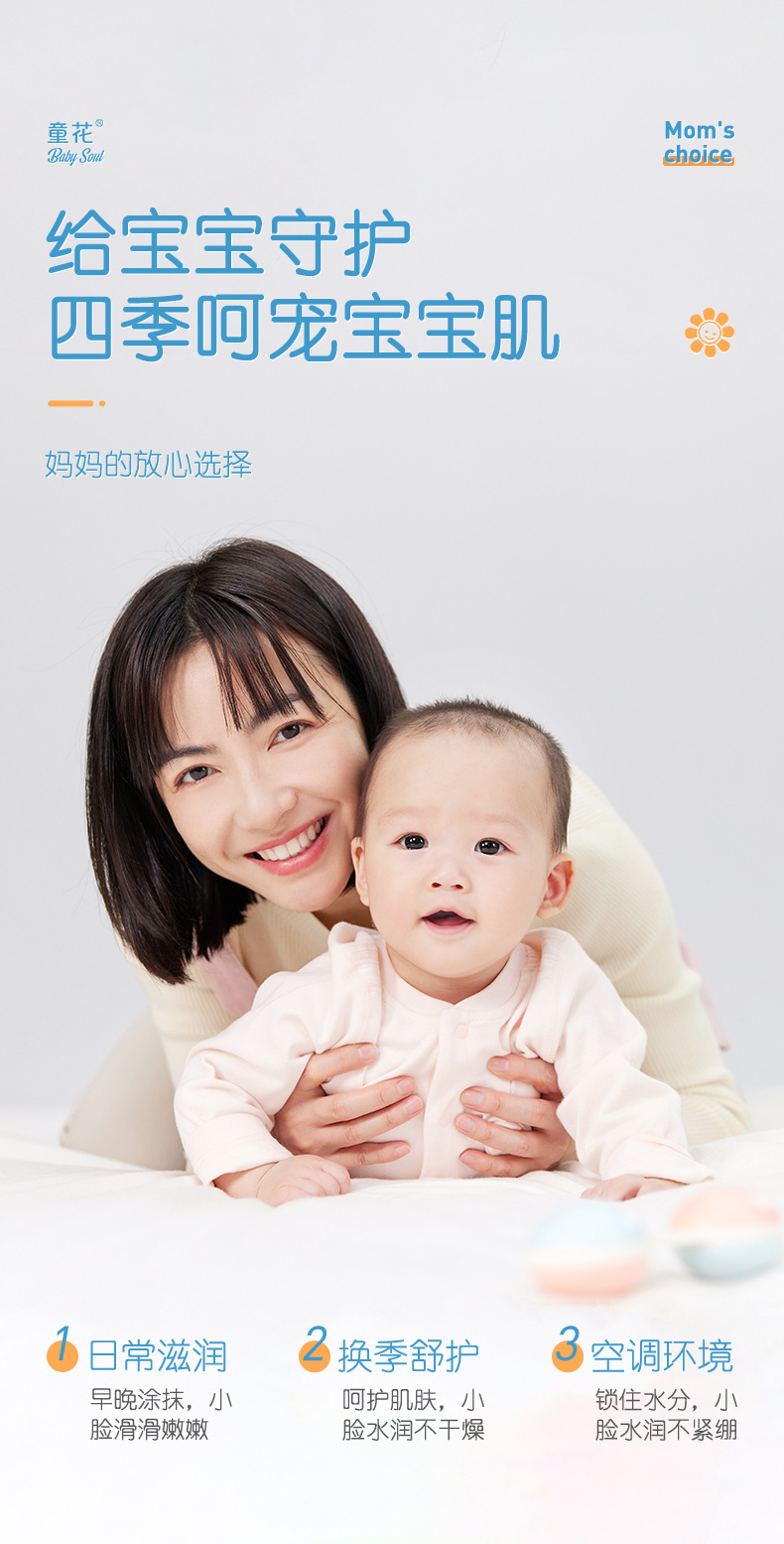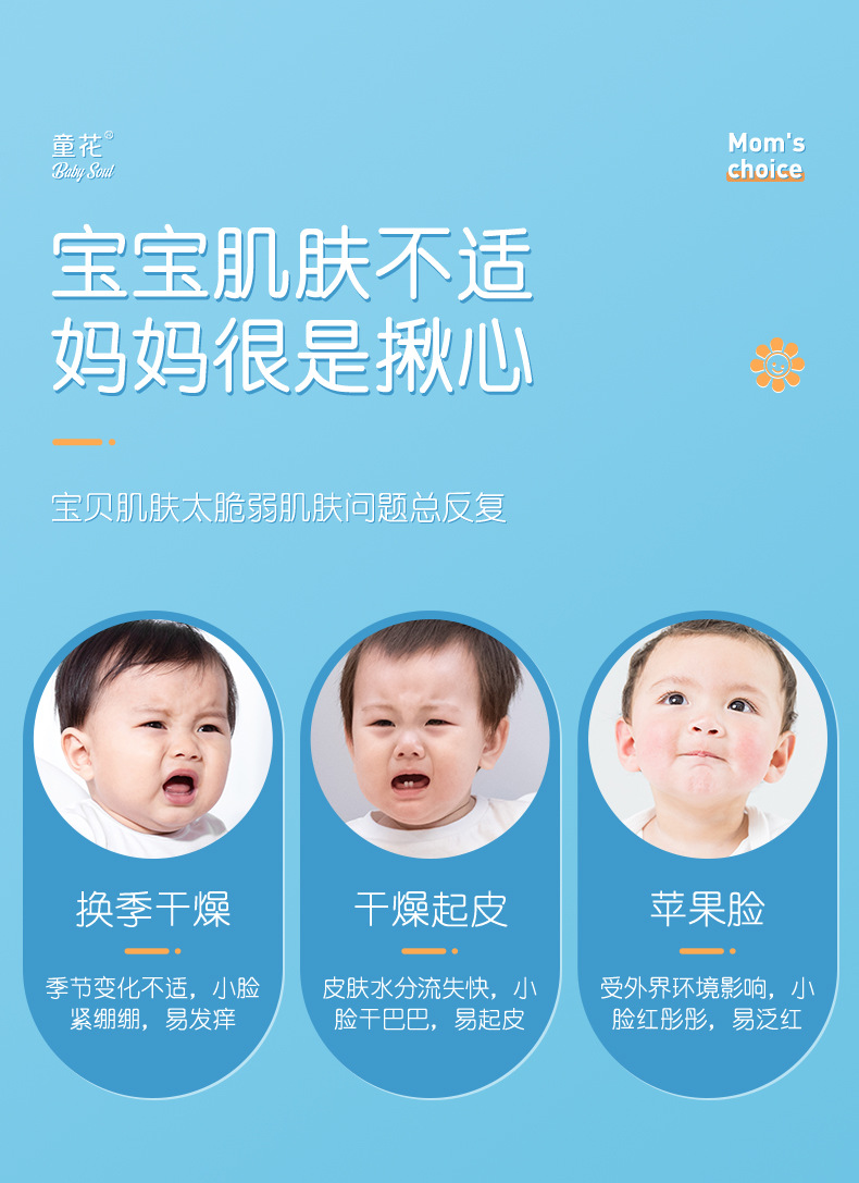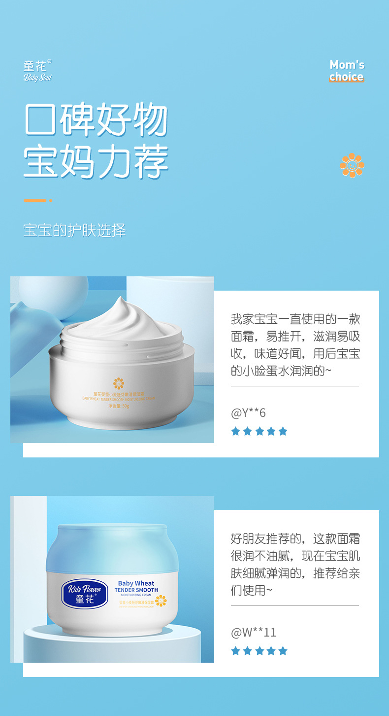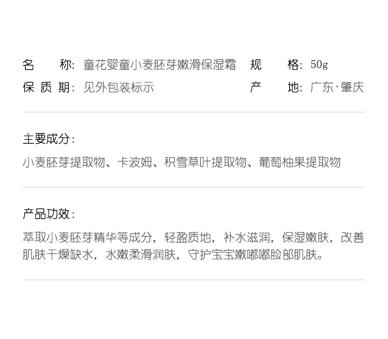 商品名称:童花婴幼儿童小麦胚芽保湿霜轻盈补水保湿滋润柔滑靓肤清爽细腻防皴防干燥面霜50g