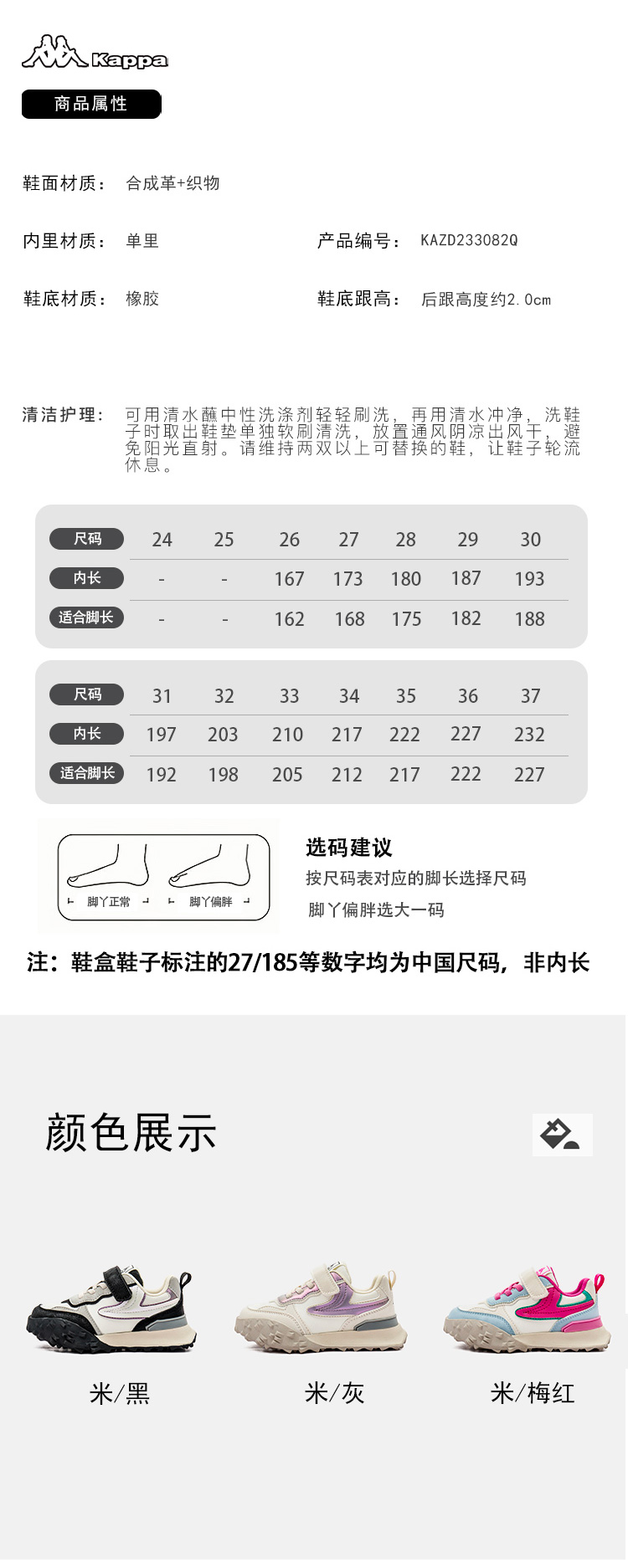 商品名称:kappa kids卡帕儿童鞋运动鞋女童2024秋季新款中大童男童轻便休闲老爹鞋跑步鞋子