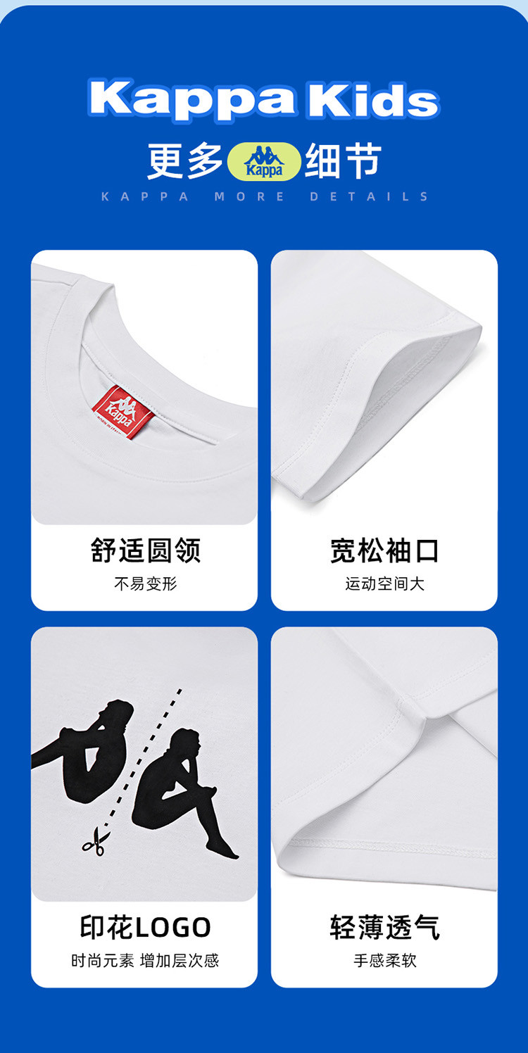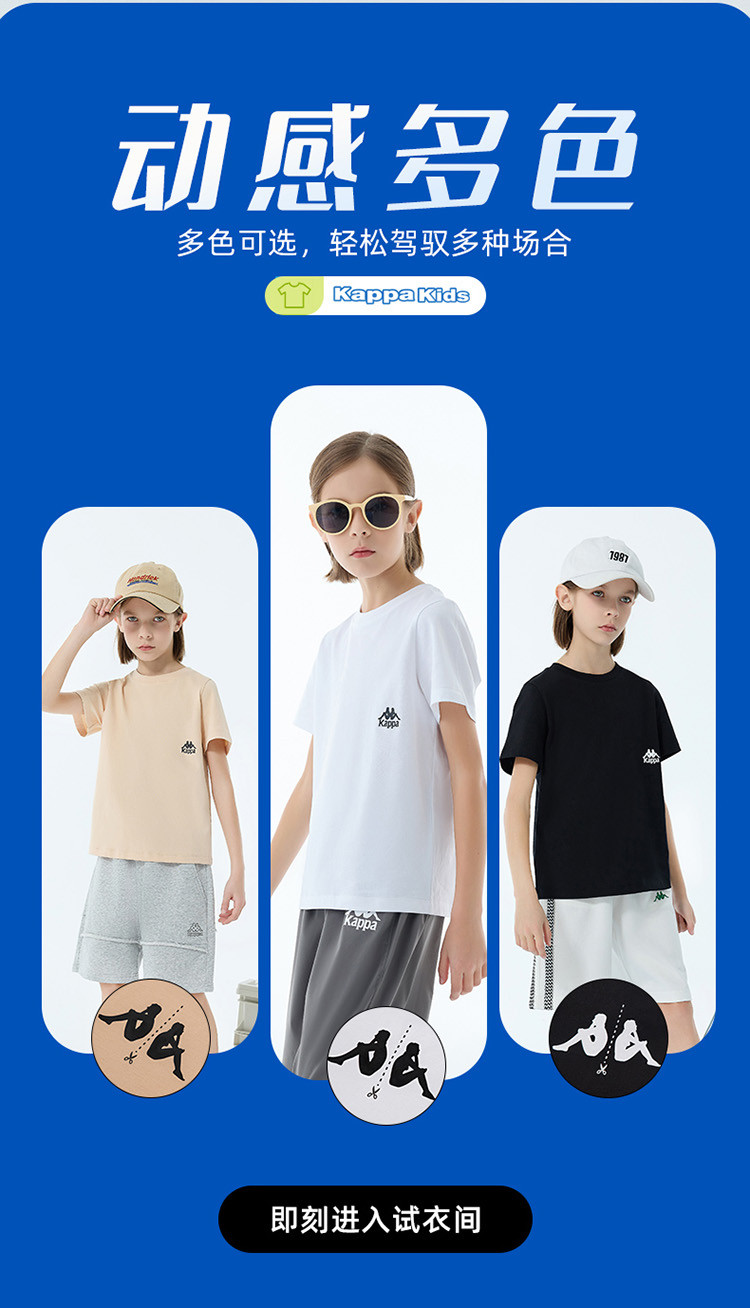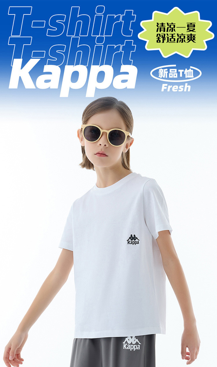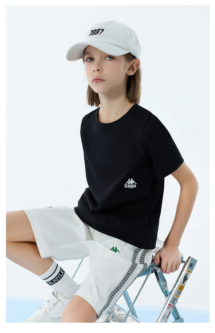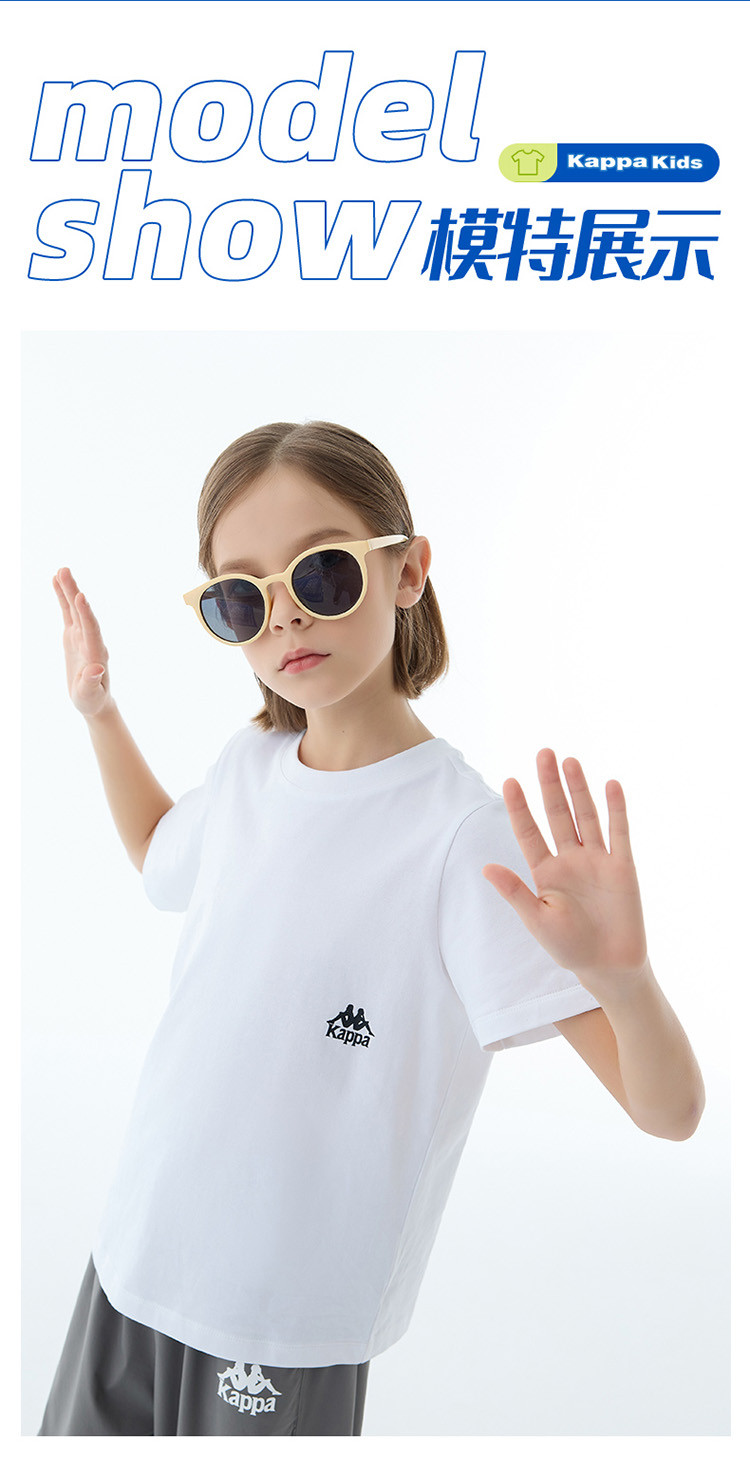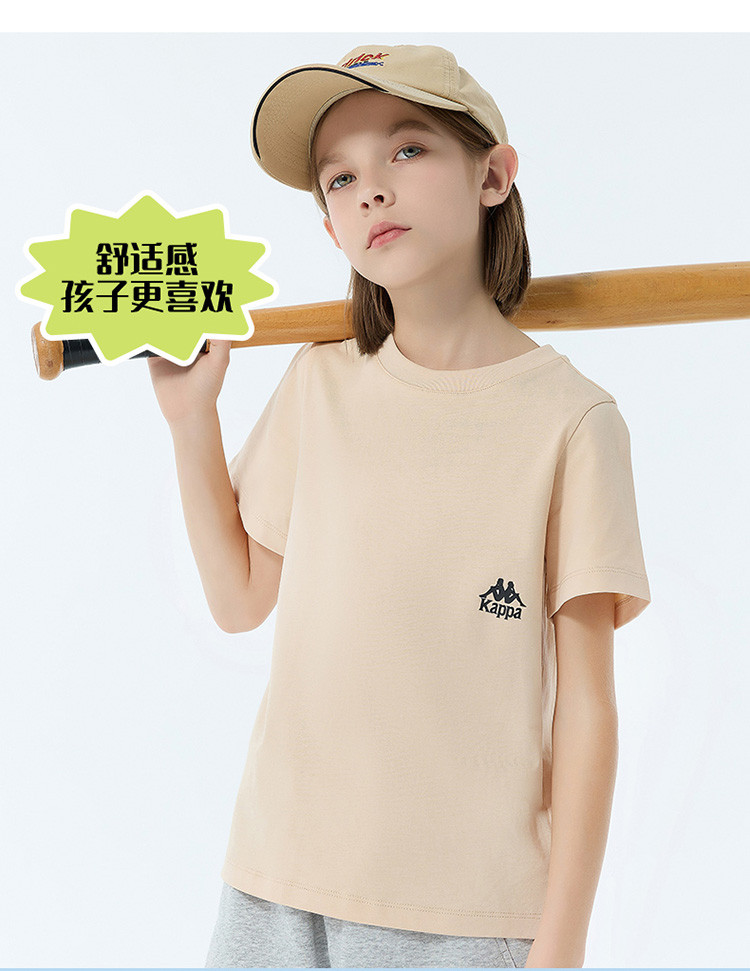 商品名称:kappa kids卡帕2024新款居家休闲百搭儿童夏季纯棉短袖中大童户外T恤男女童t恤夏装童装