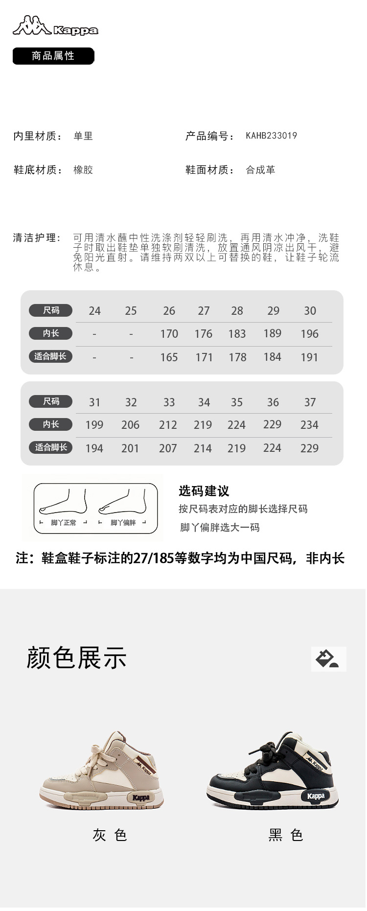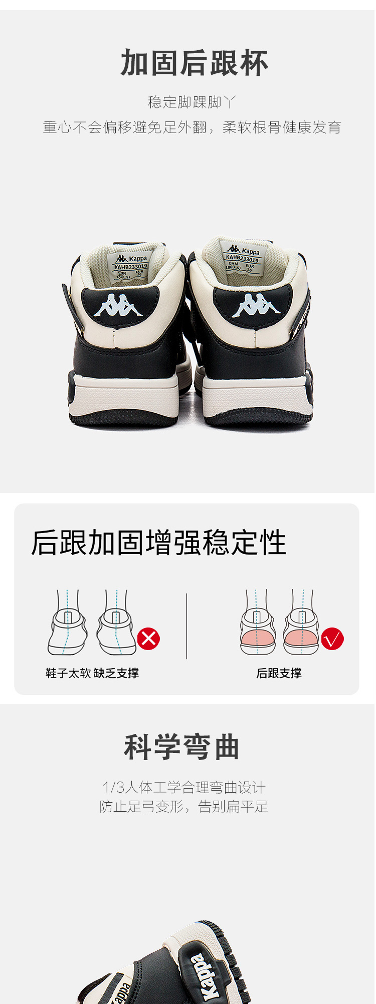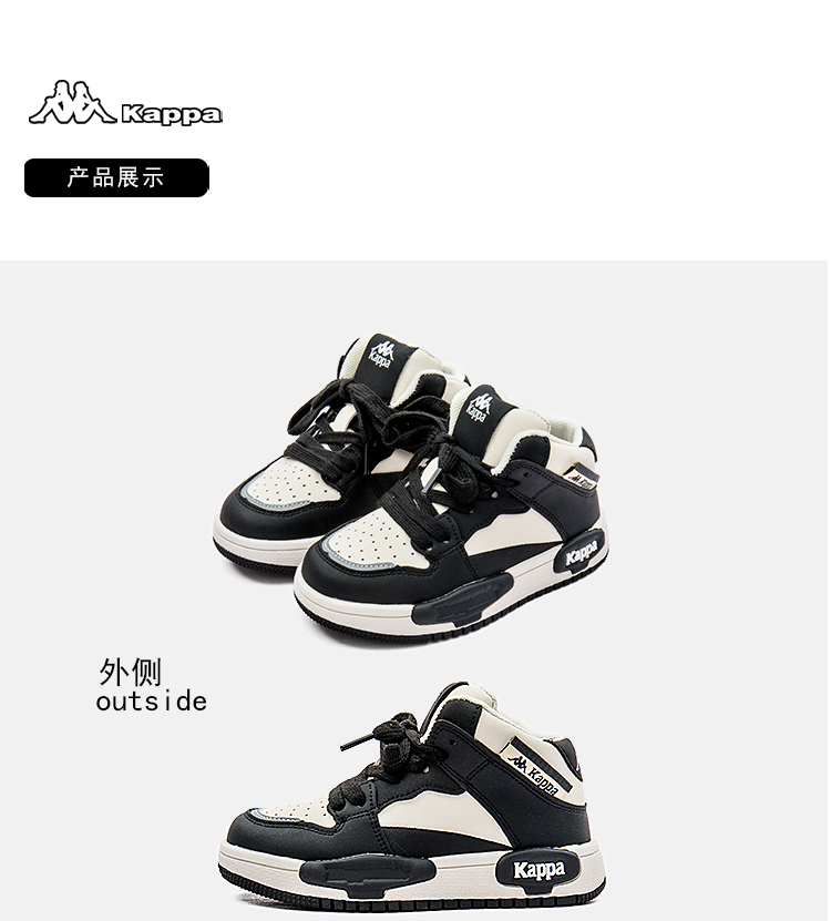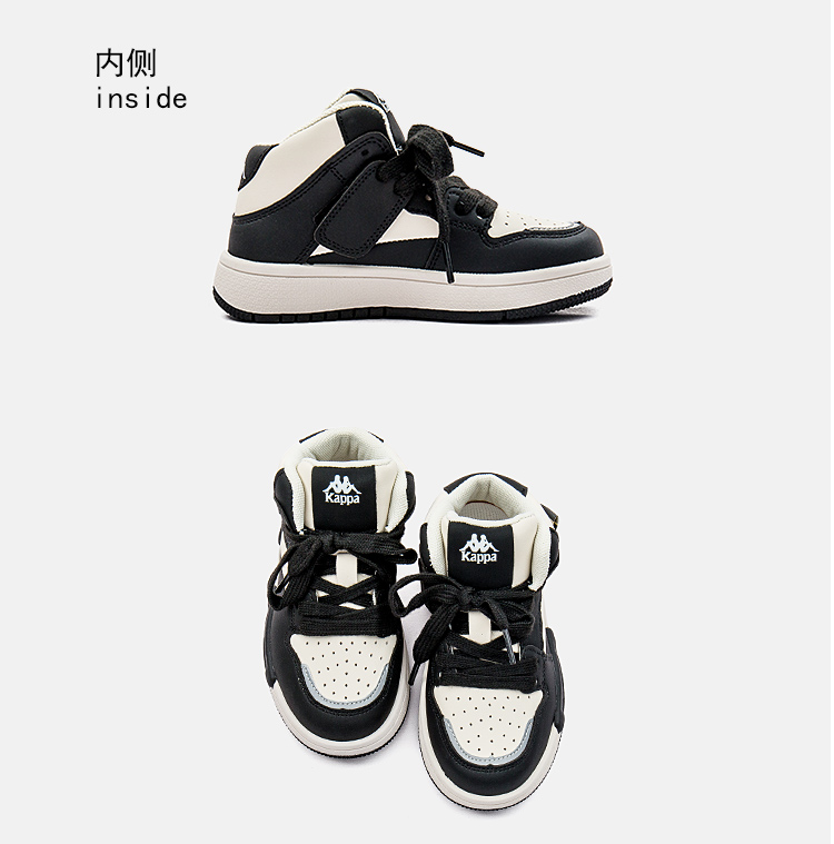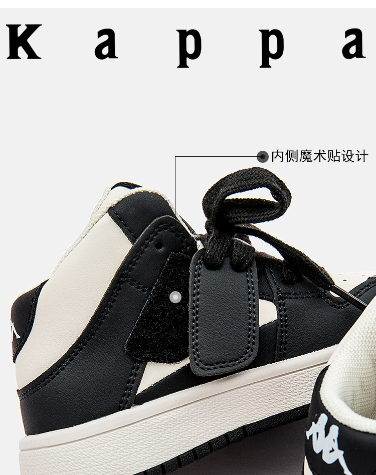 商品名称:Kappa kids卡帕童鞋黑白熊猫高帮鞋2024秋季新款中大童休闲轻便小白鞋男女童鞋子男鞋