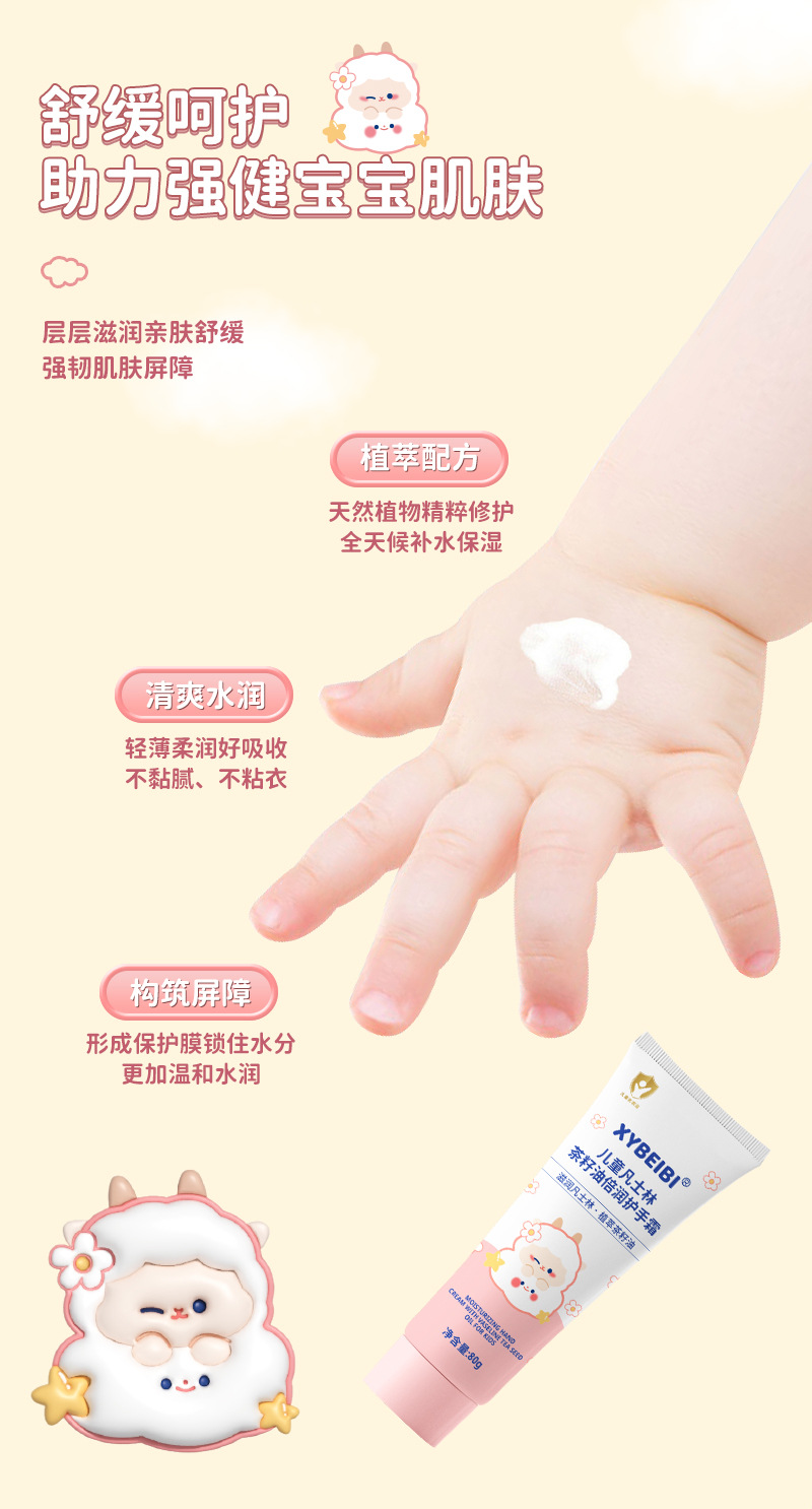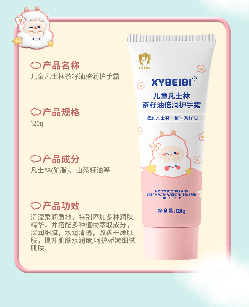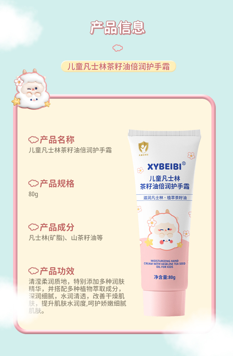 商品名称:凡士林儿童护手霜婴幼儿护手霜天然滋养茶籽油 秋冬滋润防干裂补水保湿护手霜植淬