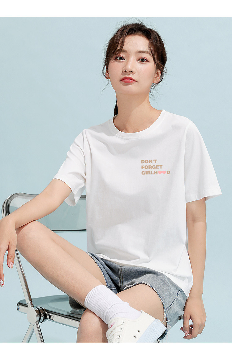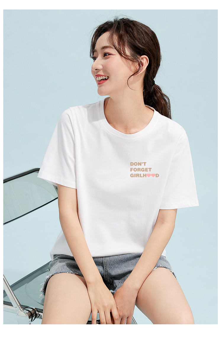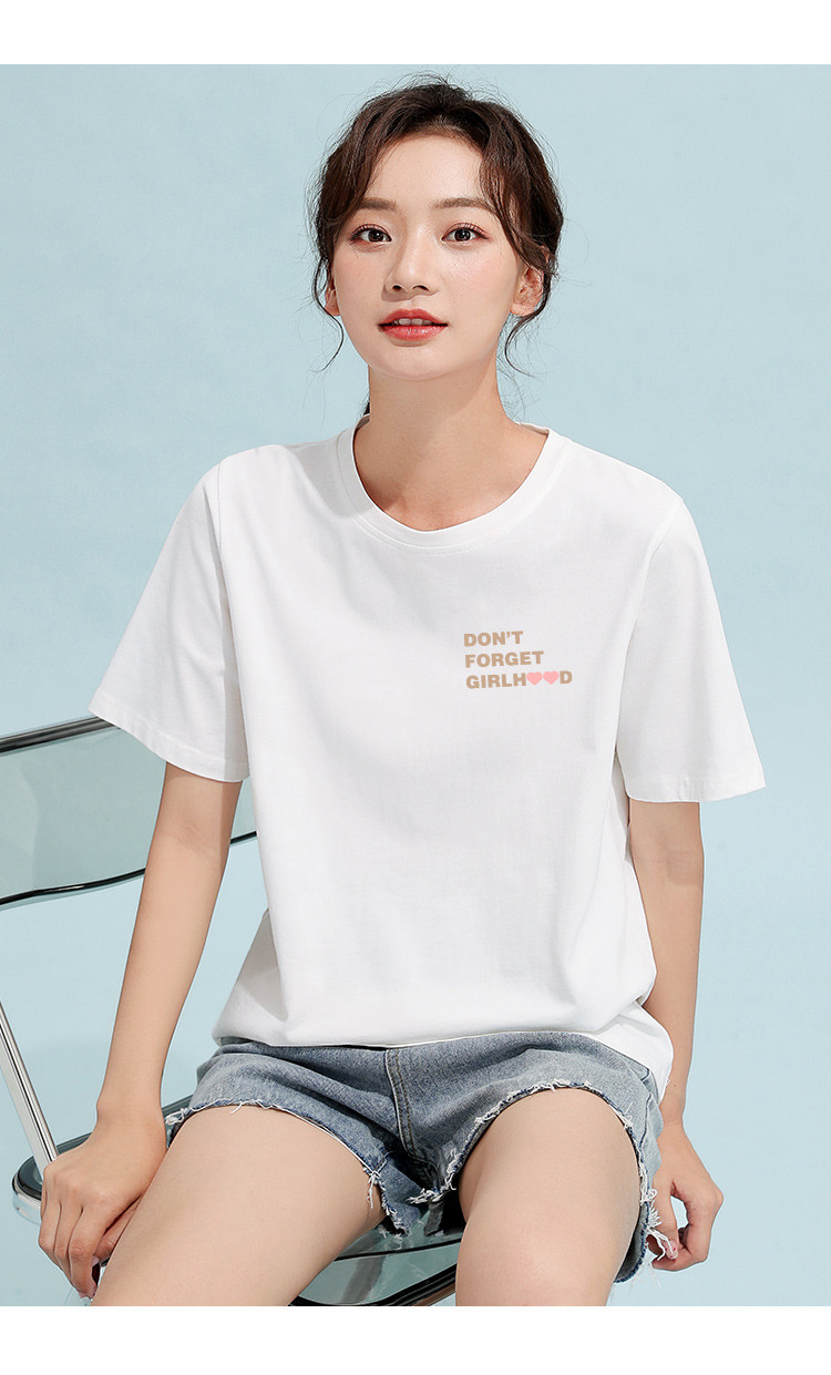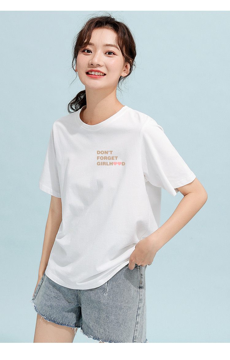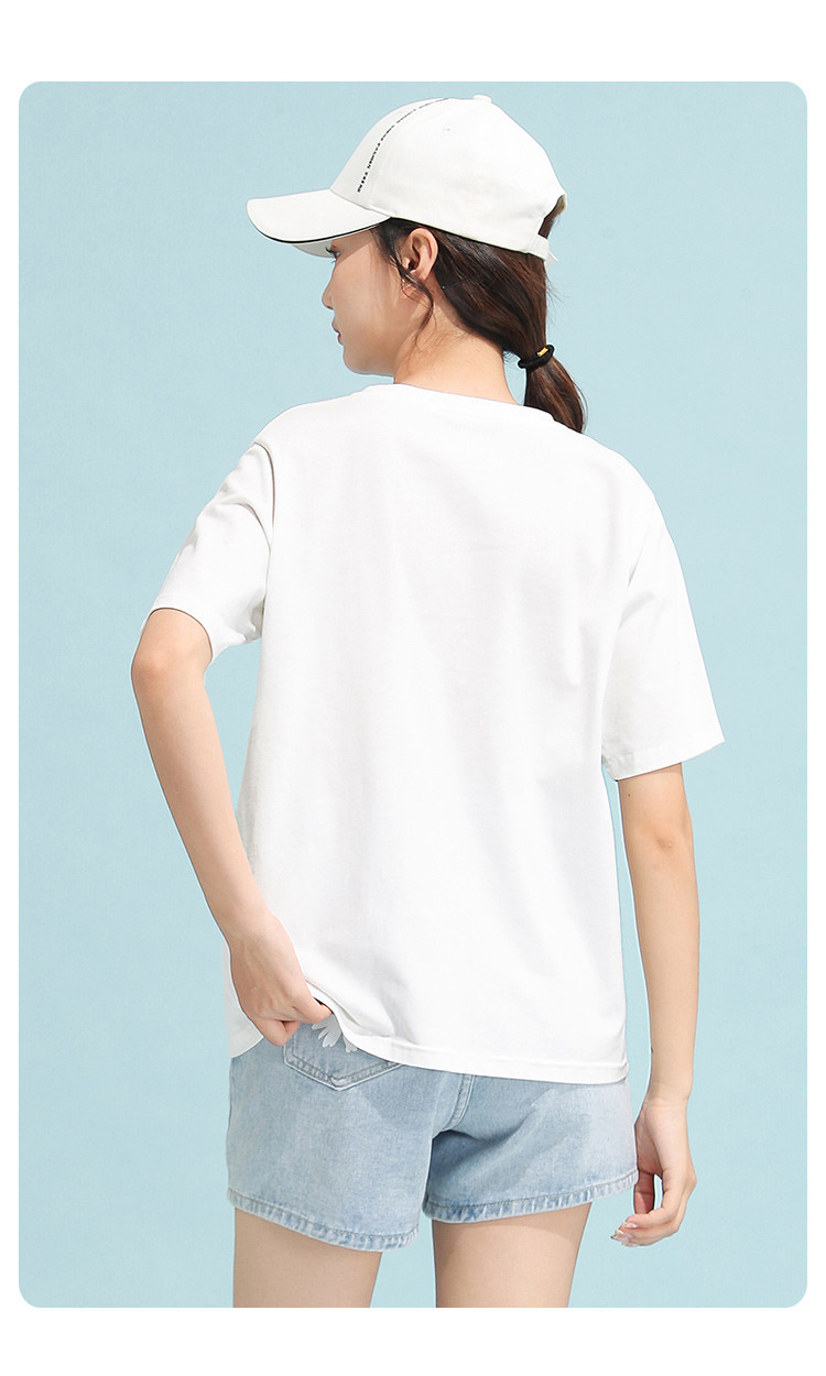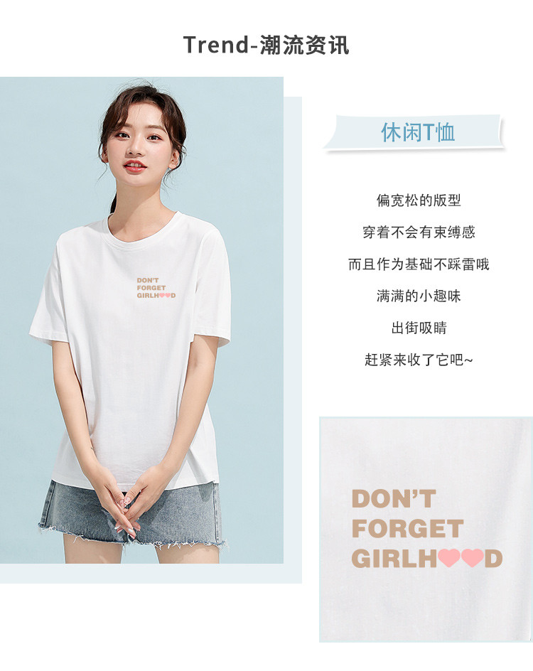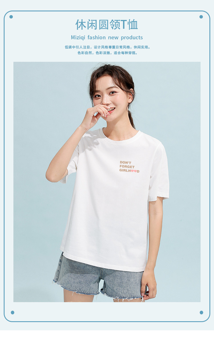 商品名称:米子旗夏季款圆领宽松短袖T恤字母印花简约百搭短袖上衣遮肉女 628506