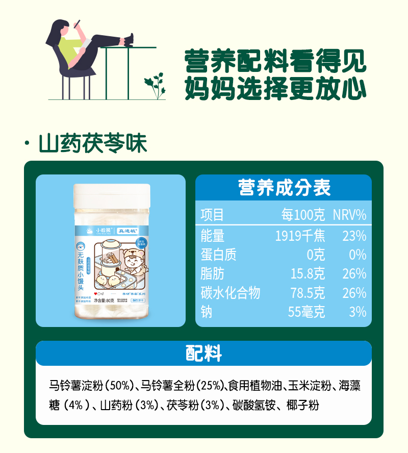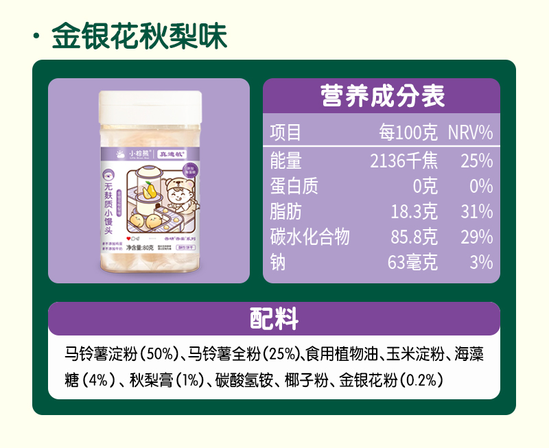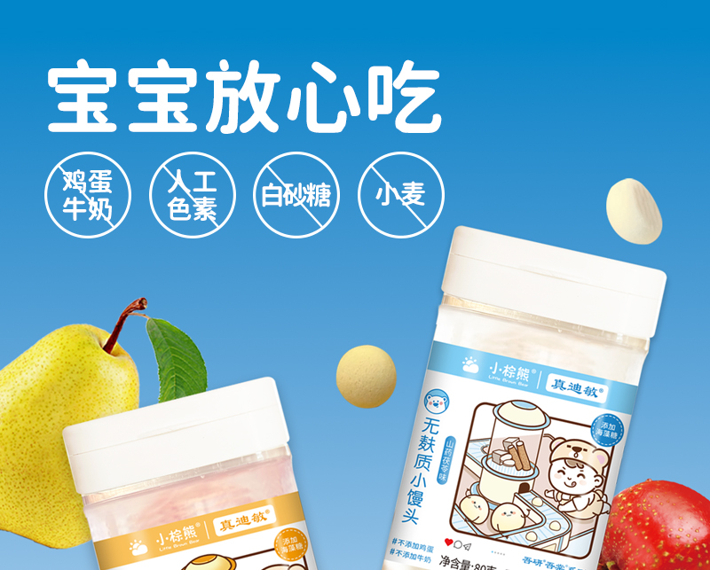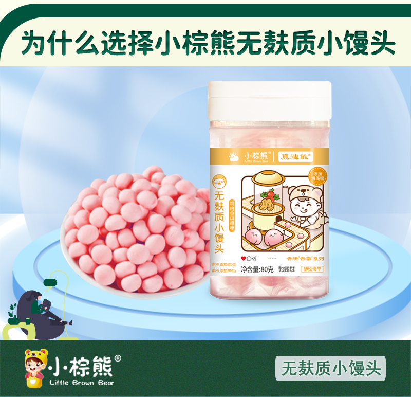 商品名称:小棕熊无麸质小馒头 80克/罐 三味可选 入口即化奶豆小馒头儿童
