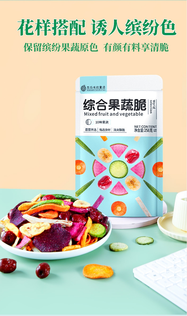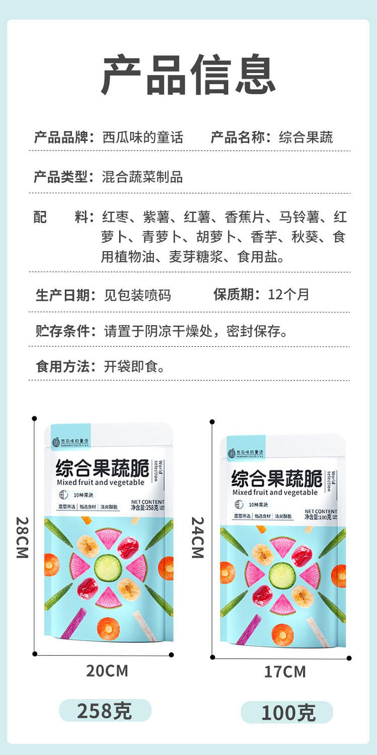 商品名称:西瓜味的童话什锦果蔬脆蔬菜干水果干258g/袋混合装休闲网红孕妇儿童零食