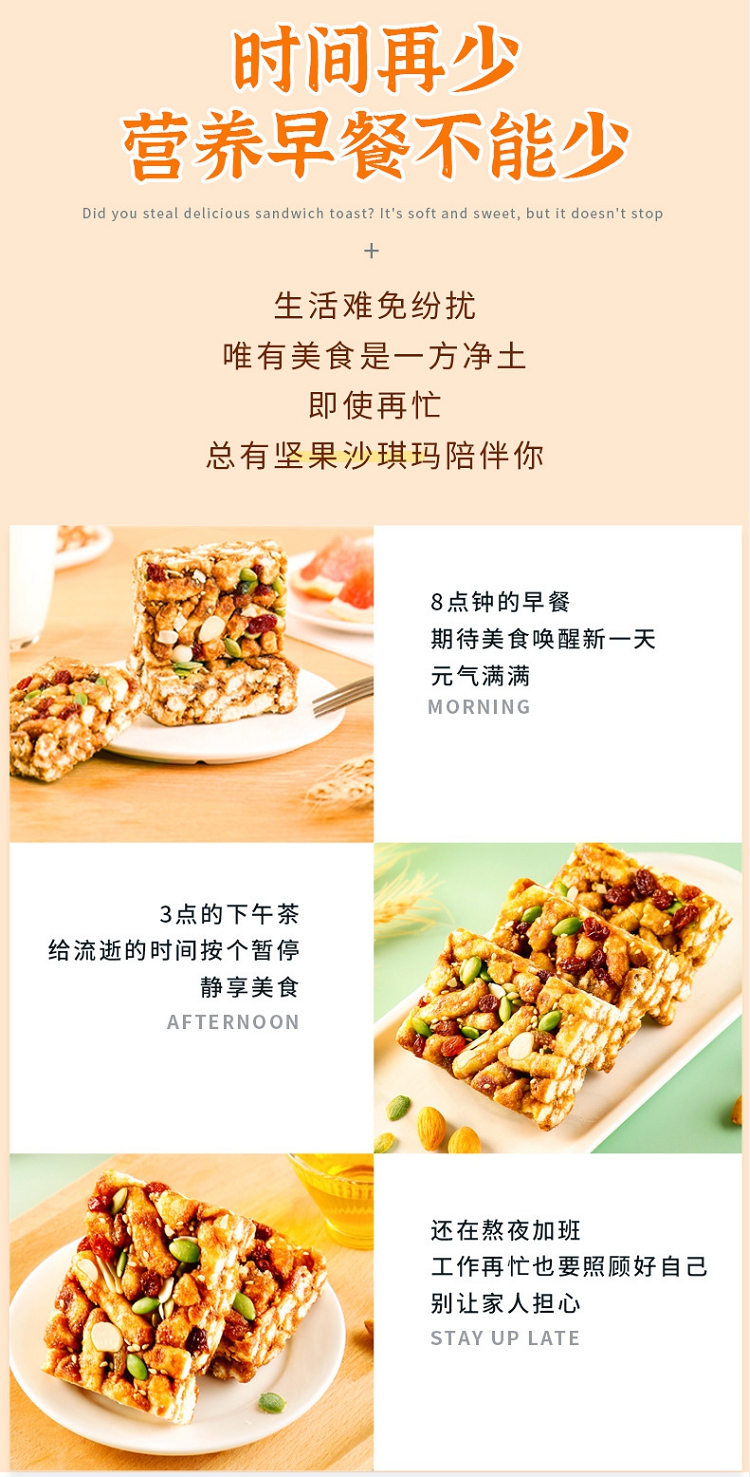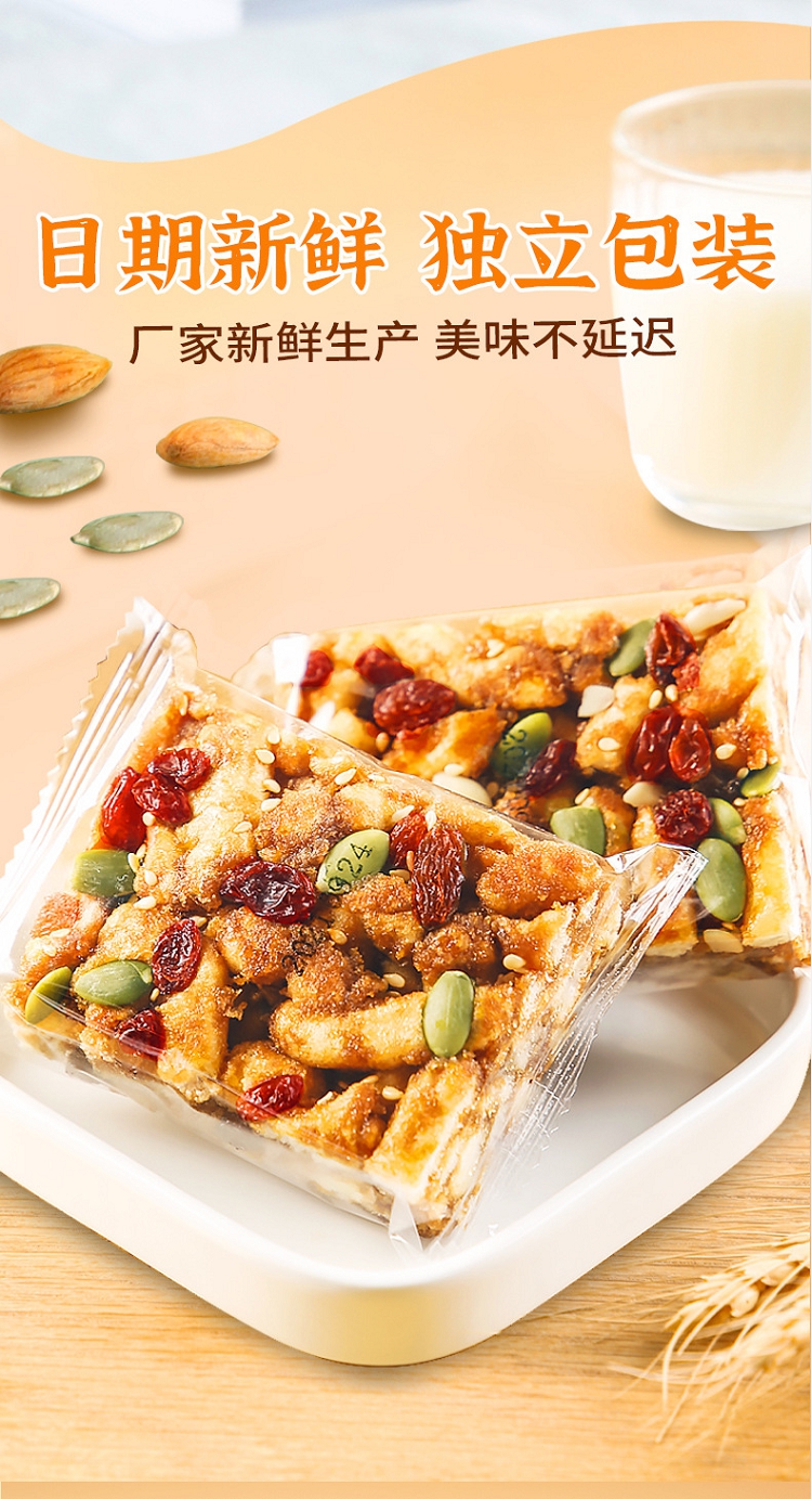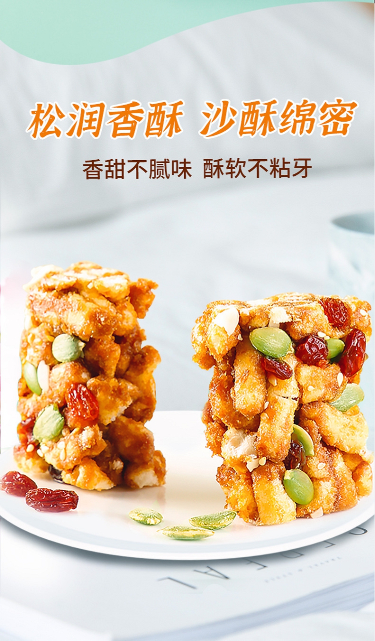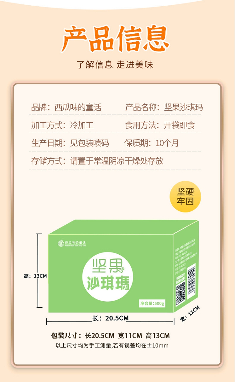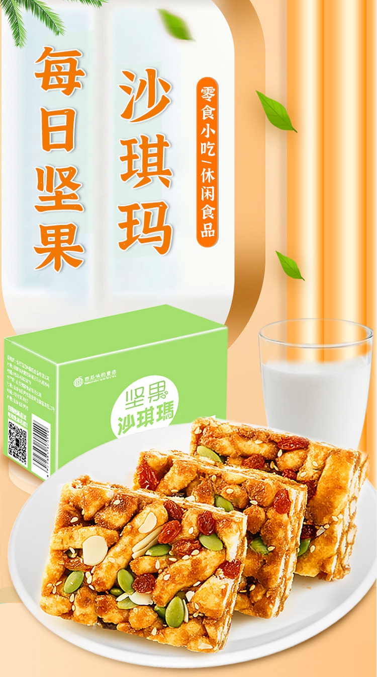 商品名称:西瓜味的童话坚果沙琪玛传统糕点办公室休闲零食营养早餐代餐500g/箱