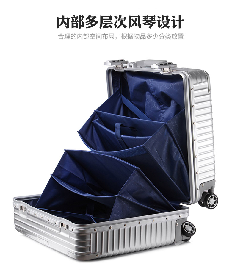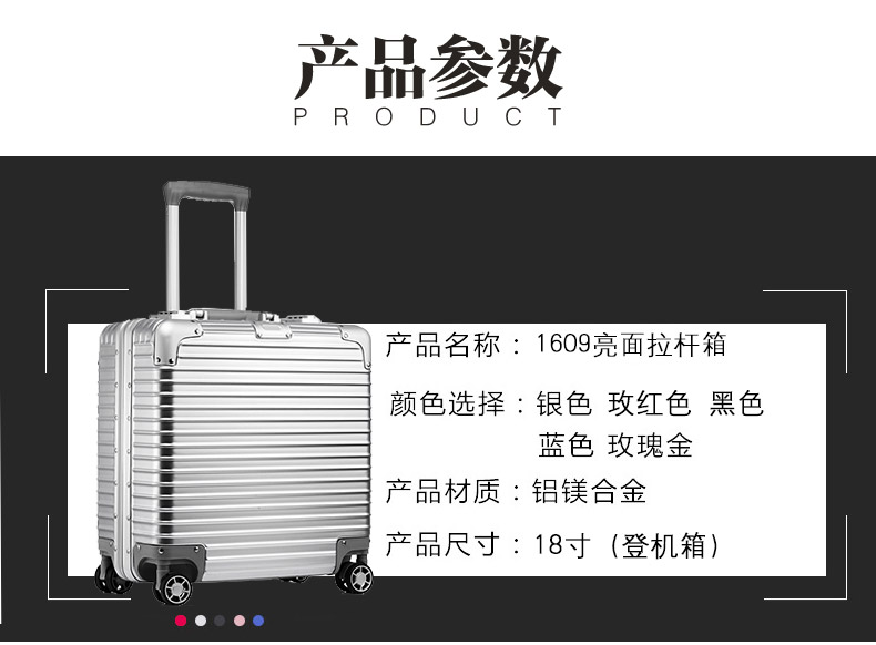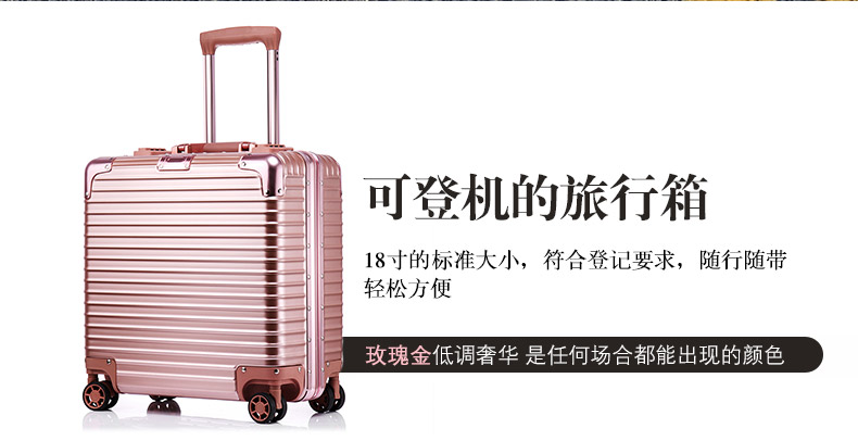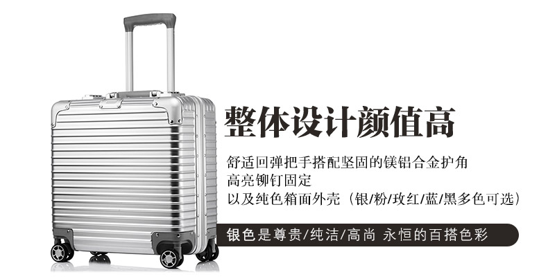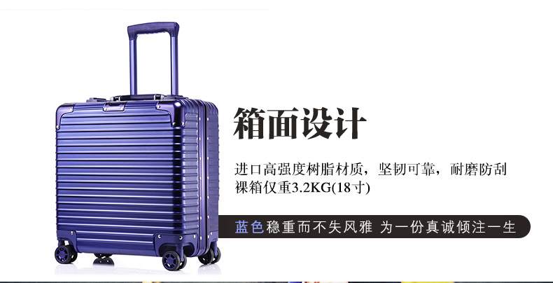 商品名称:纯奢登机系列航空旅行箱18寸铝框登机箱拉杆箱行李箱密码箱