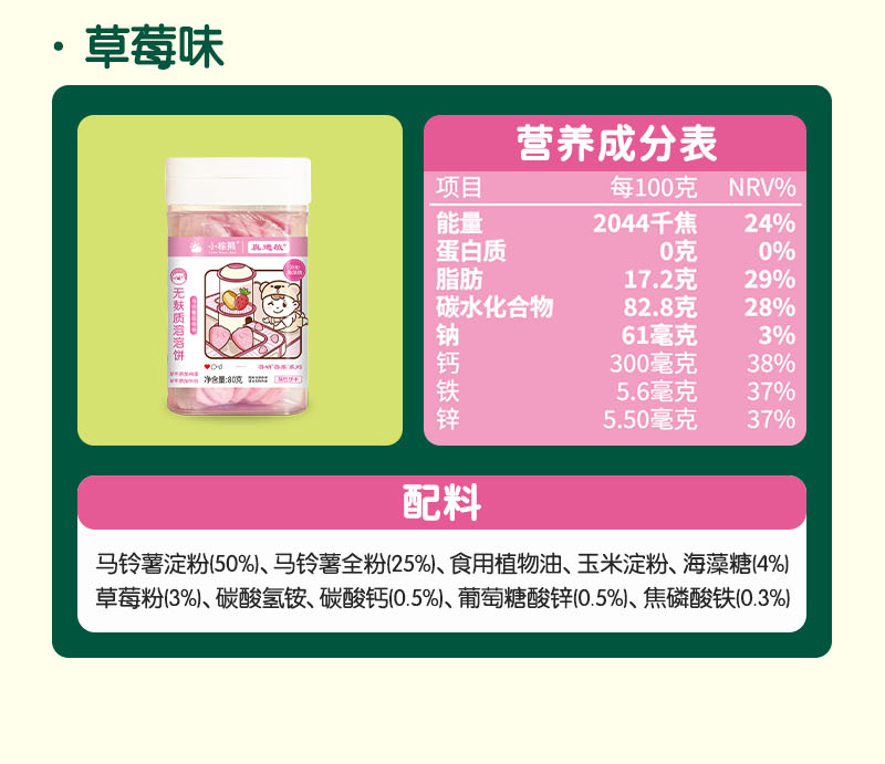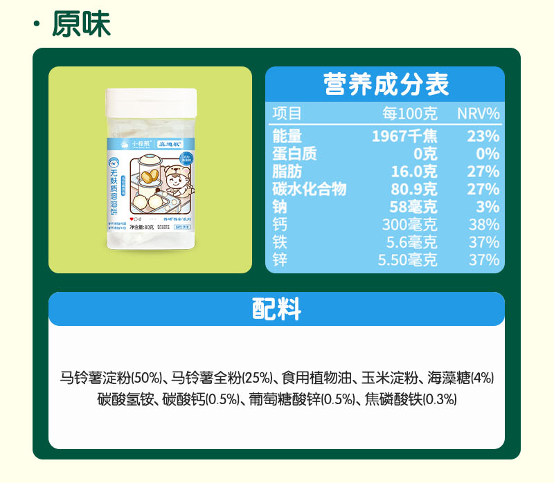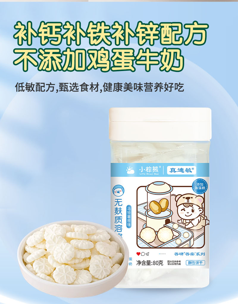 商品名称:小棕熊无麸质溶溶饼 80克 三味可选入口即化溶豆豆溶豆零食儿童