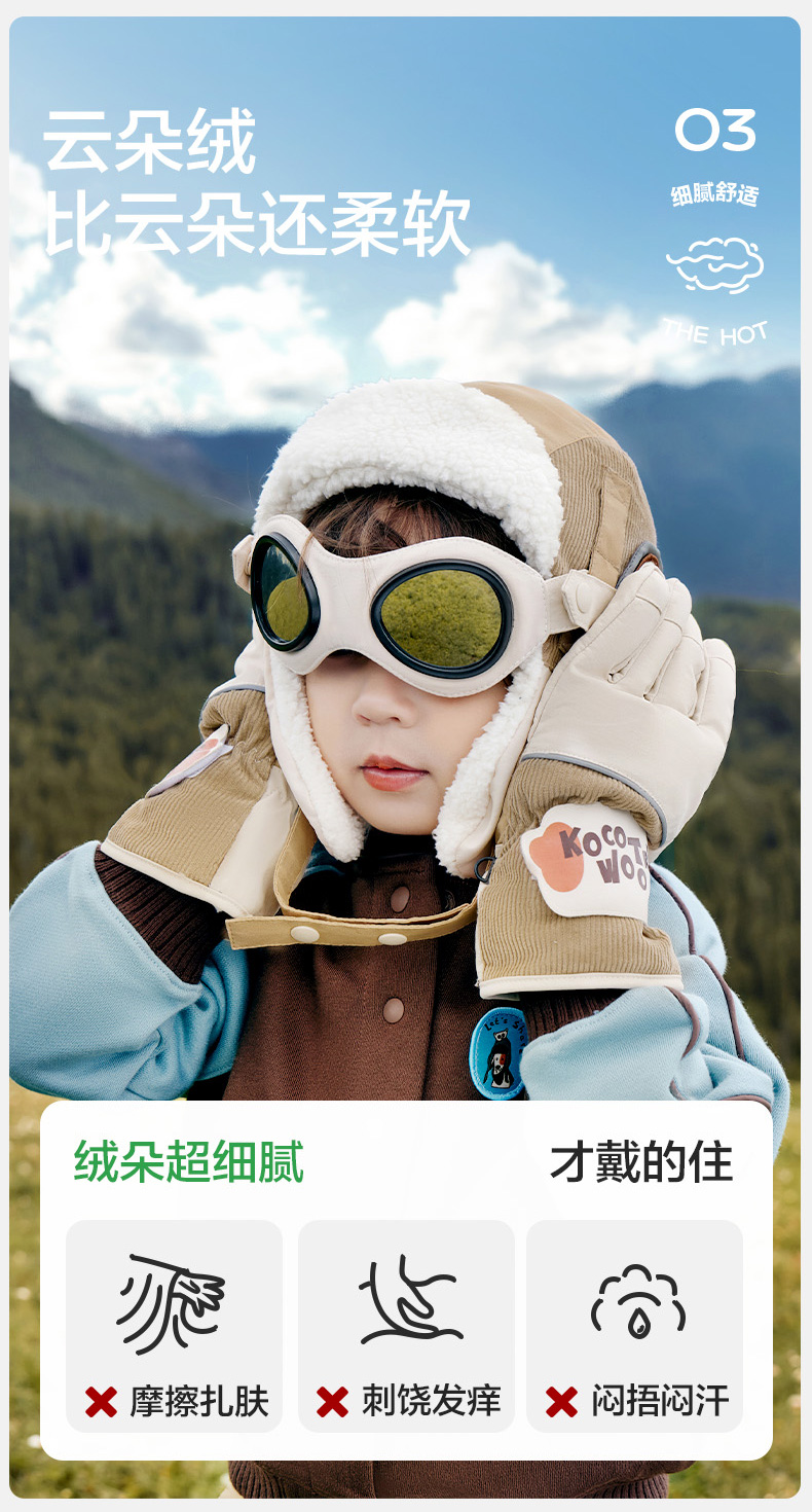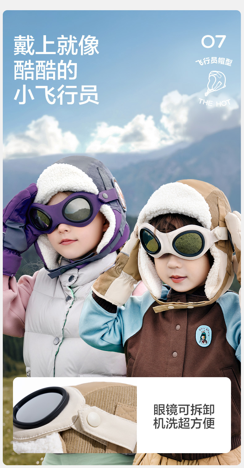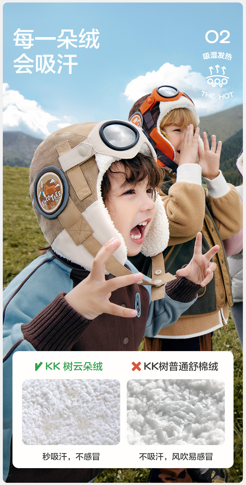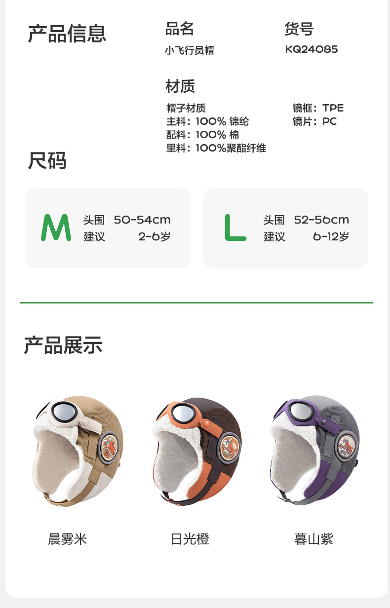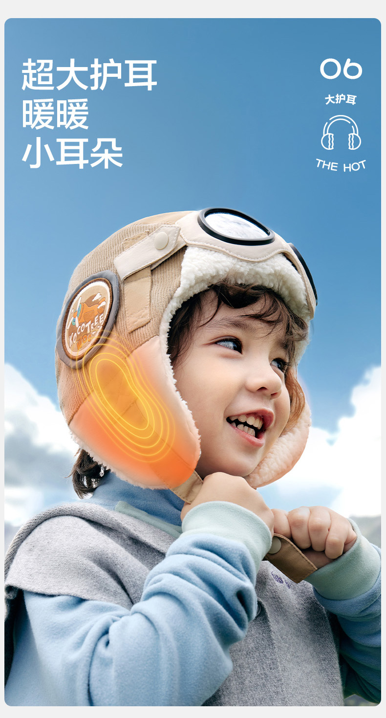 商品名称:【直供】KK树飞行员儿童帽子秋冬雷锋帽防风护耳宝宝保暖2024新款小飞行员帽