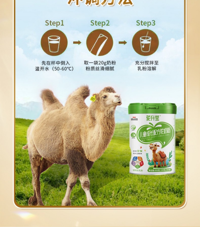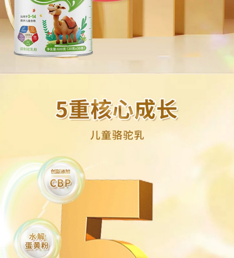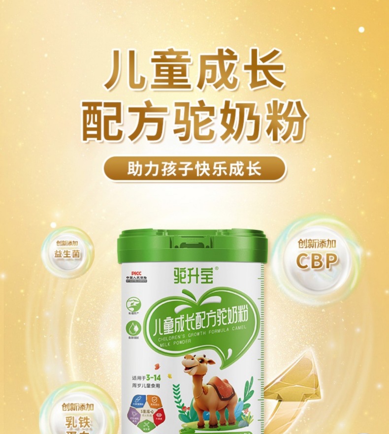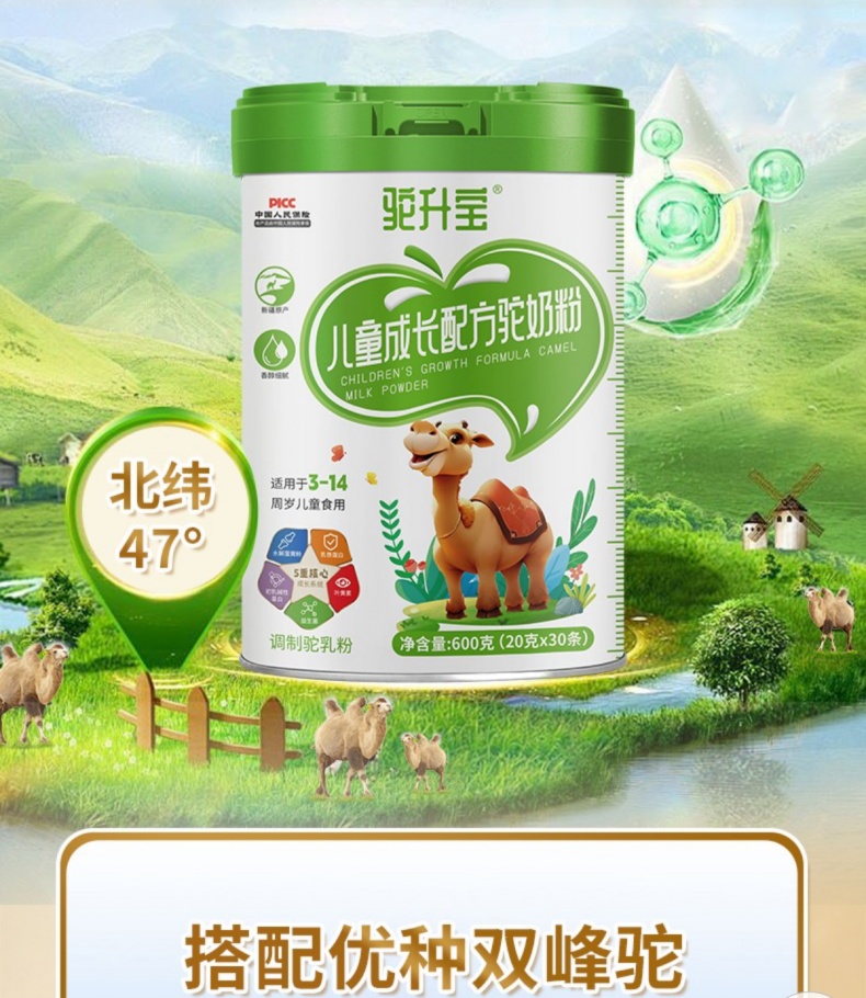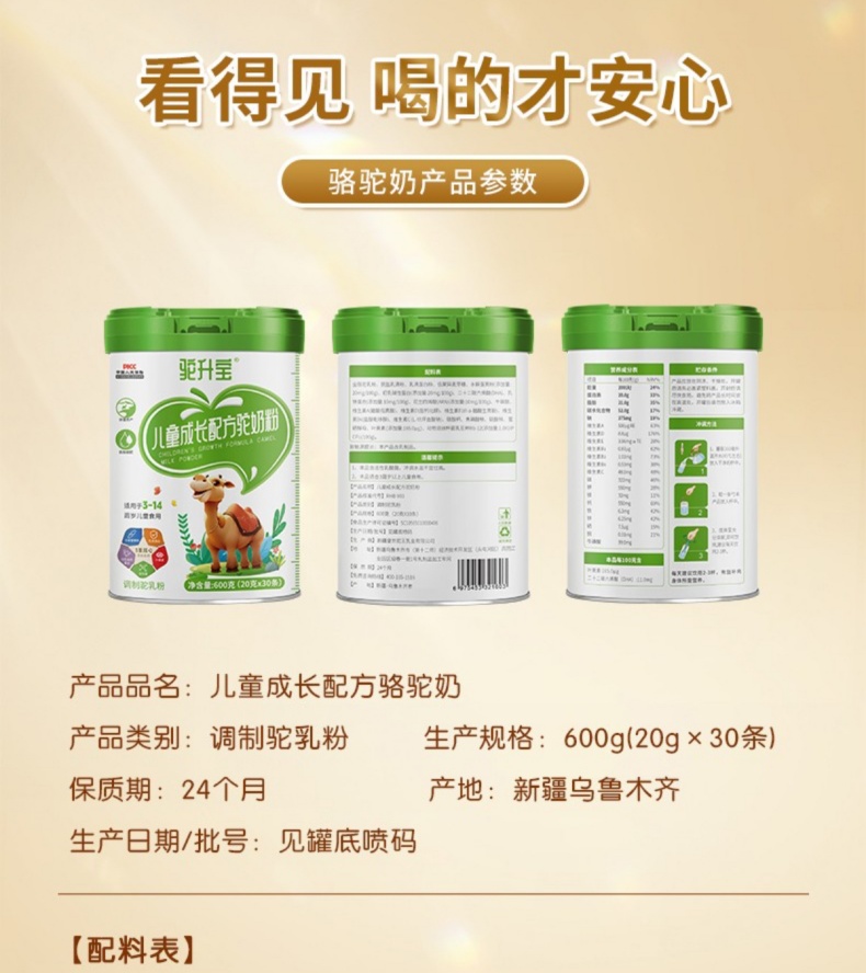 商品名称:【25年3月份日期】驼升宝儿童成长配方驼奶粉600克3-14周岁儿童学生青少年新疆骆驼奶粉
