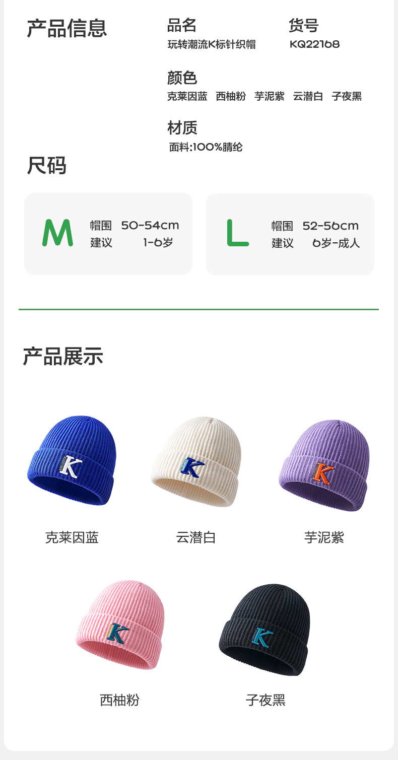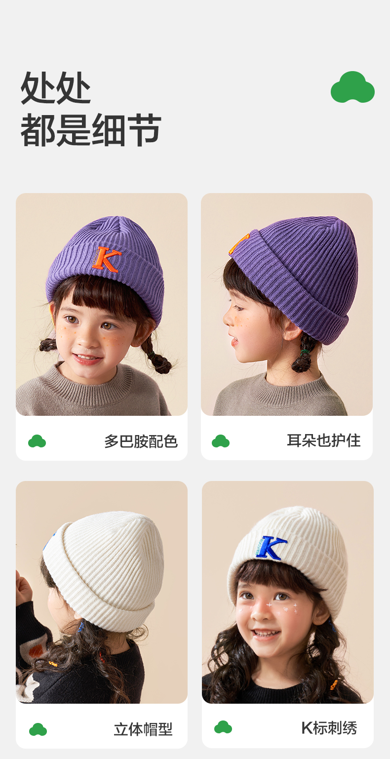 商品名称:【直供】KK树儿童帽子秋冬针织护耳毛线帽宝宝保暖防风抗静电洋气
