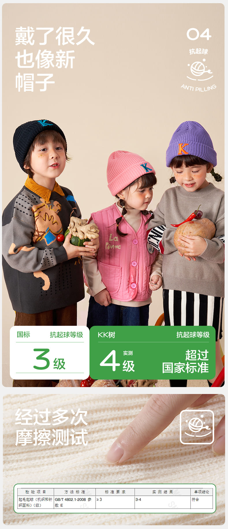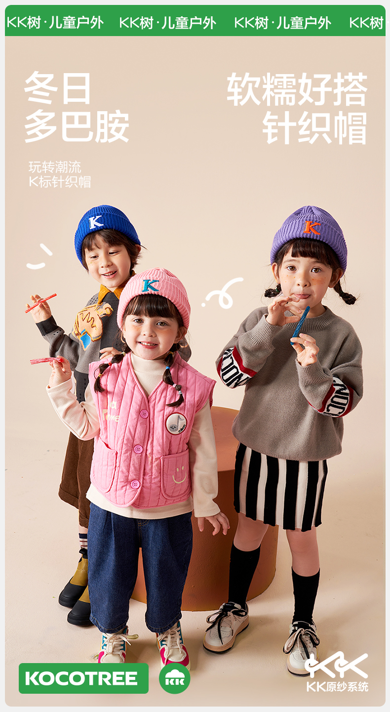 【直供】KK树儿童帽子秋冬针织护耳毛线帽宝宝保暖防风抗静电洋气
