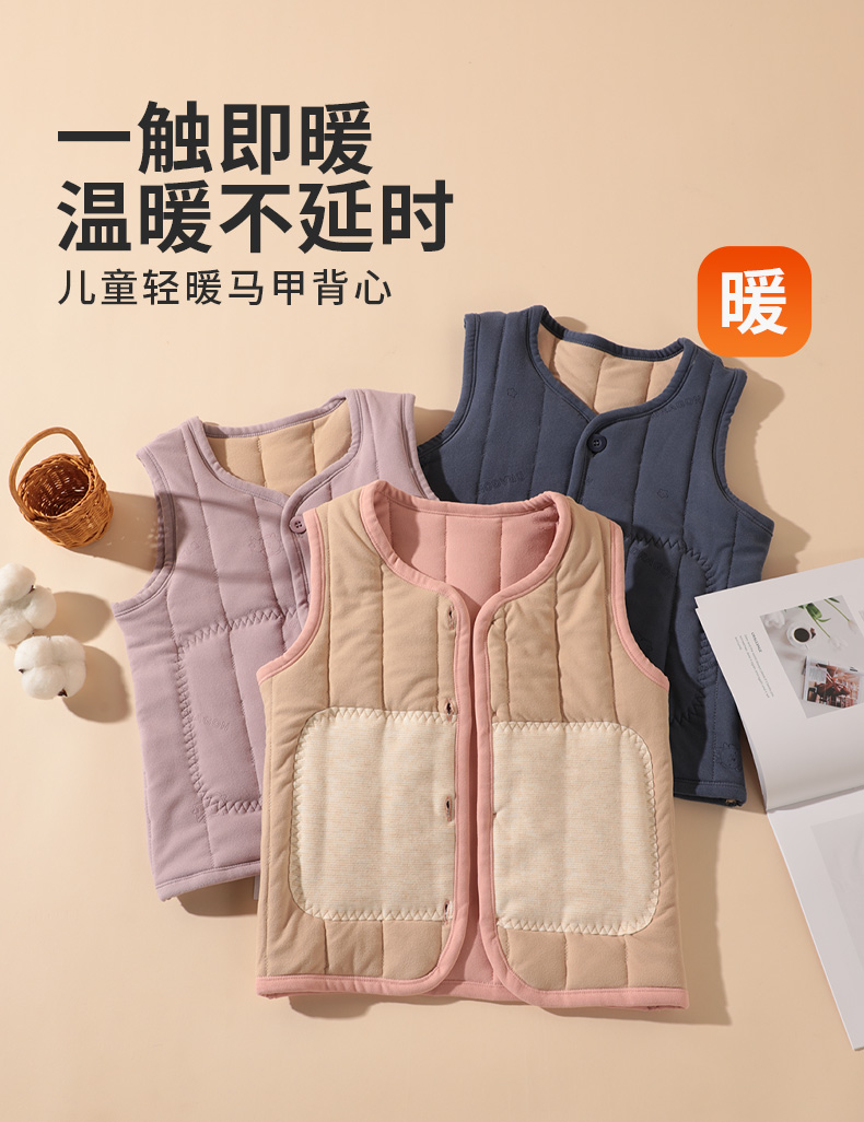 彩桥儿童保暖马甲内穿坎肩男女童加绒加厚背心校服神器棉衣内胆秋冬季