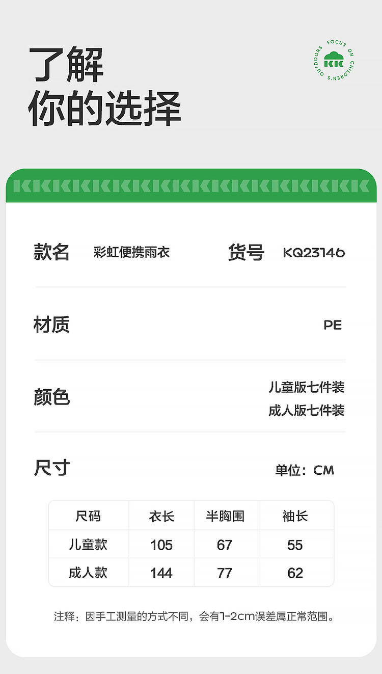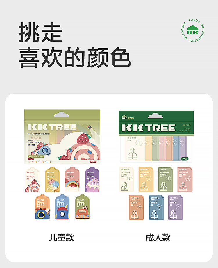 商品名称:【直供】KK树一次性雨衣儿童上学专用小学生便携式压缩雨披成人加厚亲子彩虹便携雨衣