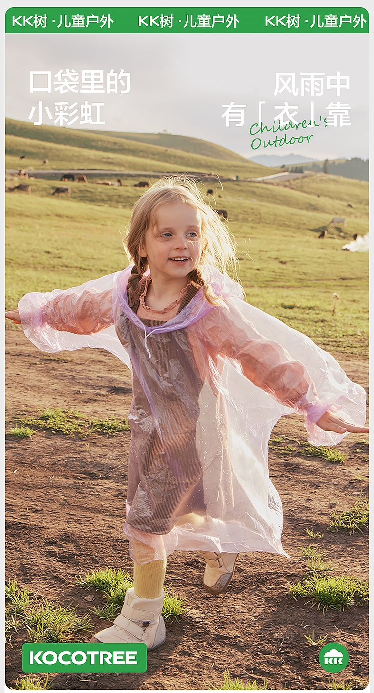 【直供】KK树一次性雨衣儿童上学专用小学生便携式压缩雨披成人加厚亲子彩虹便携雨衣