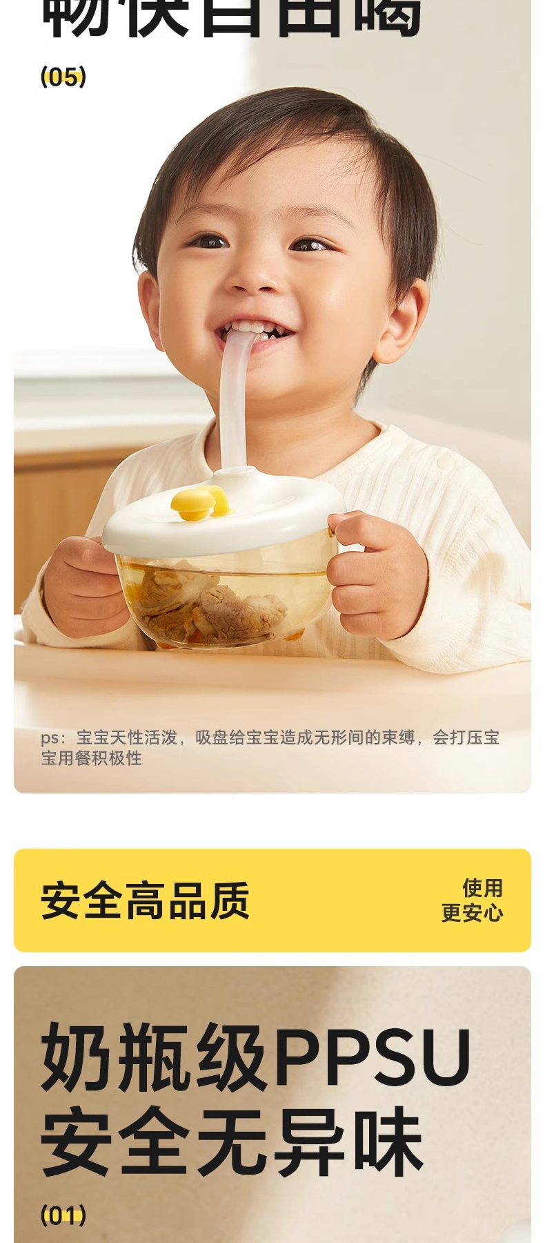 商品名称:VS皇宠好吸汤碗宝宝喝汤辅食碗吃米糊喝粥喂水专用儿童吃饭餐具奶瓶级PPSU材质