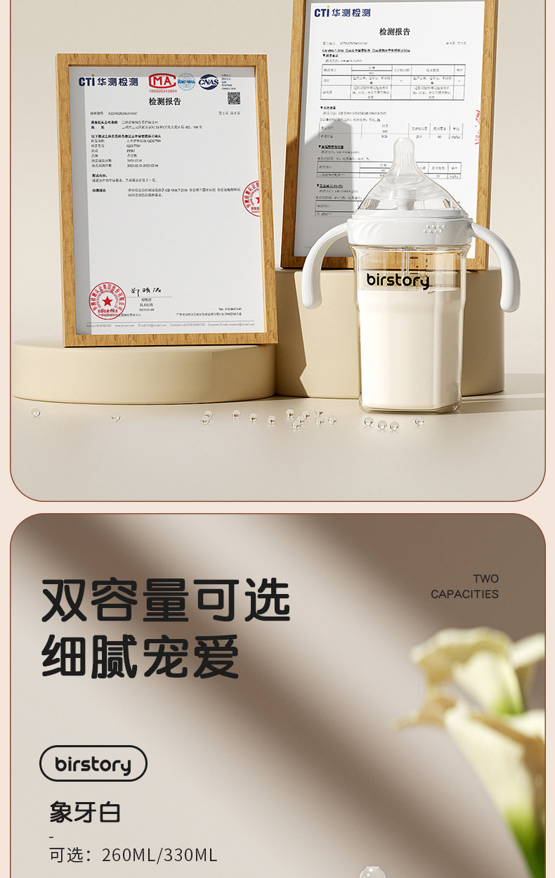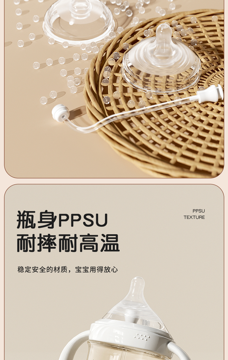 商品名称:良品物语 ppsu奶瓶一杯两用宽口径新生儿吸管奶瓶儿童喝奶吸管杯学饮杯奶嘴吸嘴260/330ml