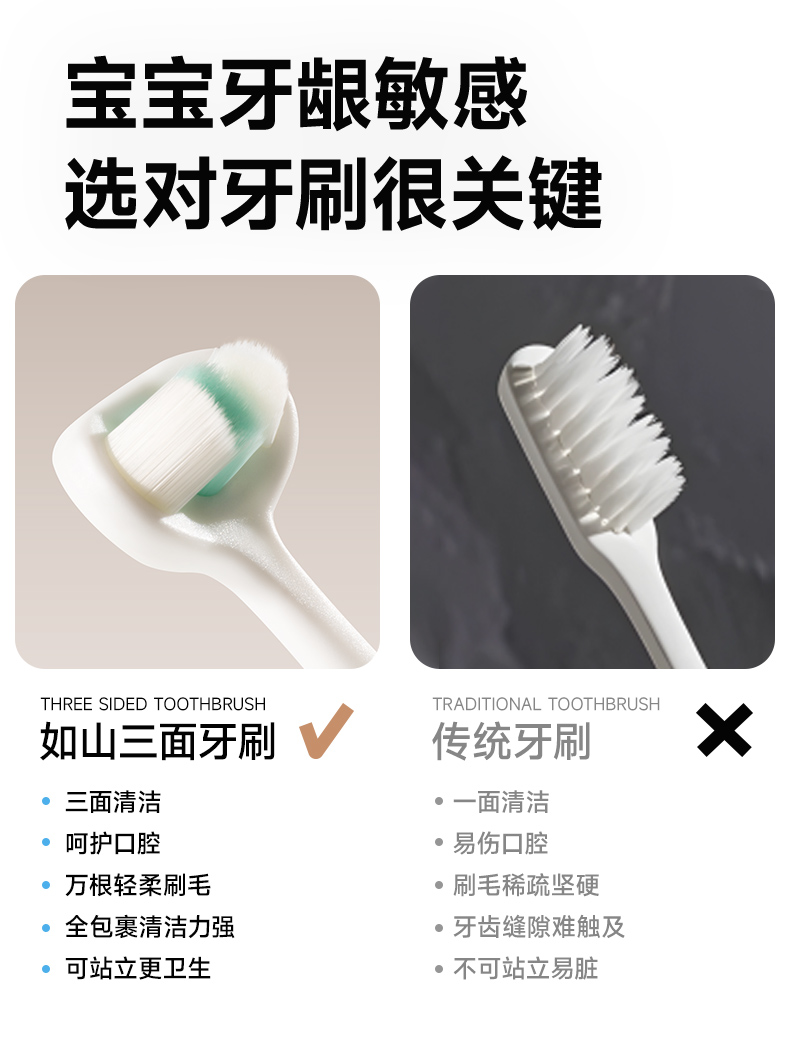 商品名称:如山儿童牙刷0-3到6-12岁软毛刷换牙期u型护齿婴幼儿乳牙刷三面