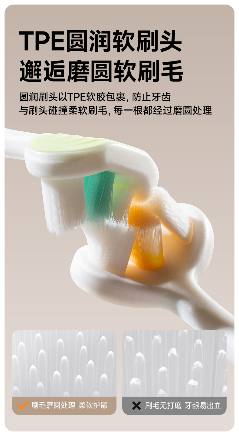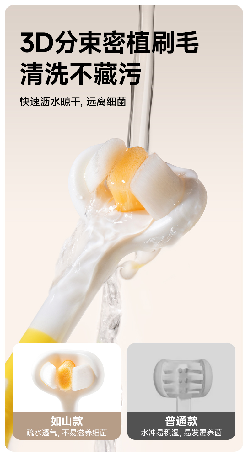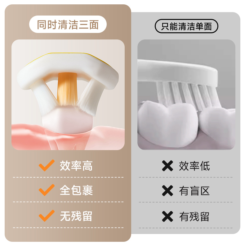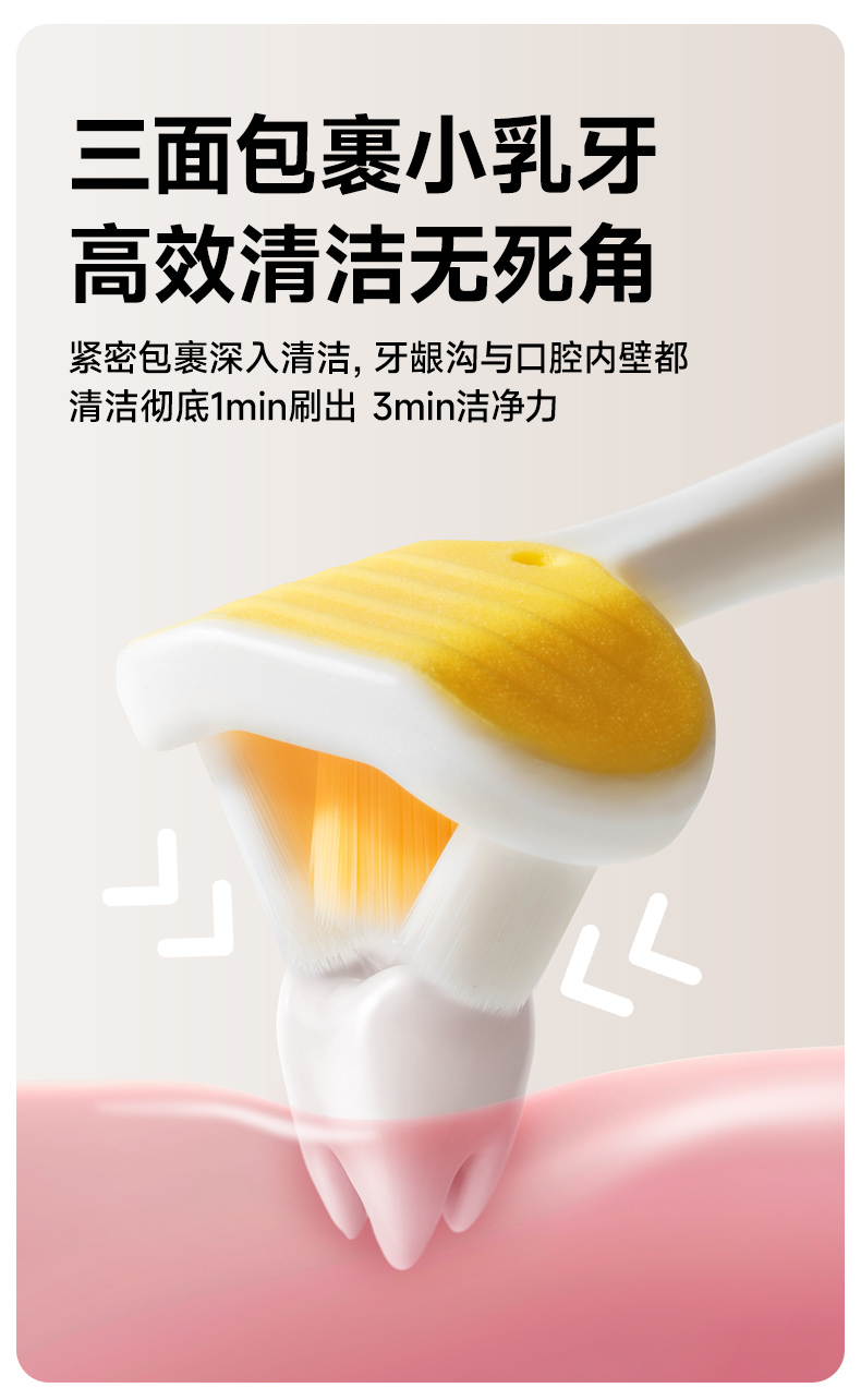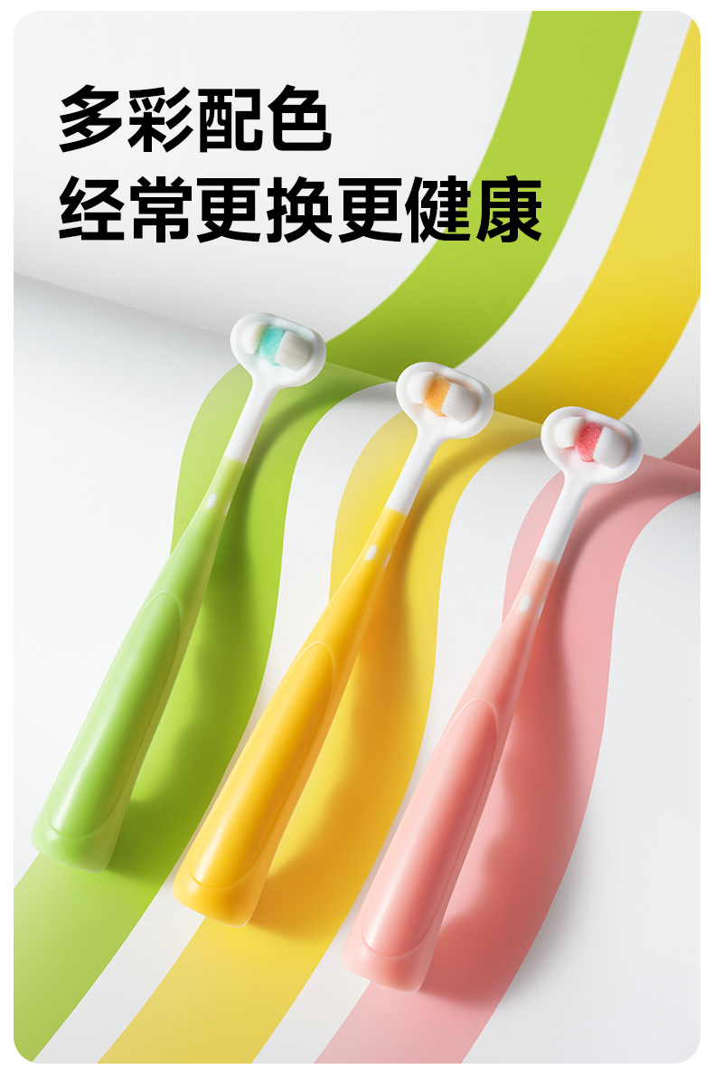 如山儿童牙刷0-3到6-12岁软毛刷换牙期u型护齿婴幼儿乳牙刷三面