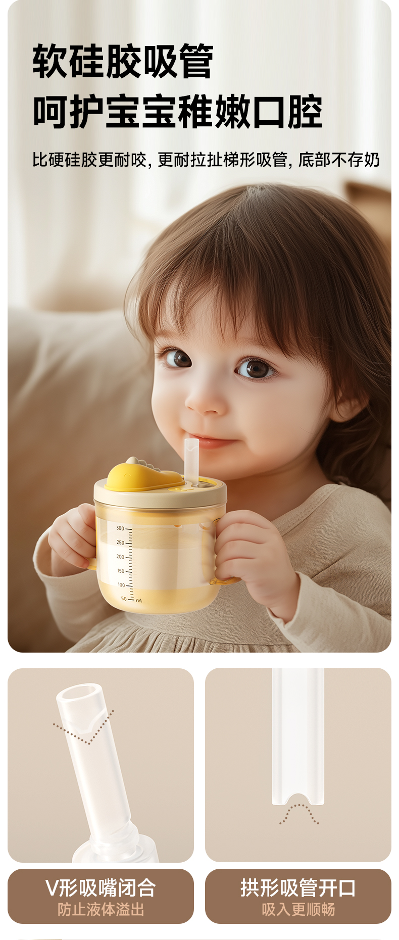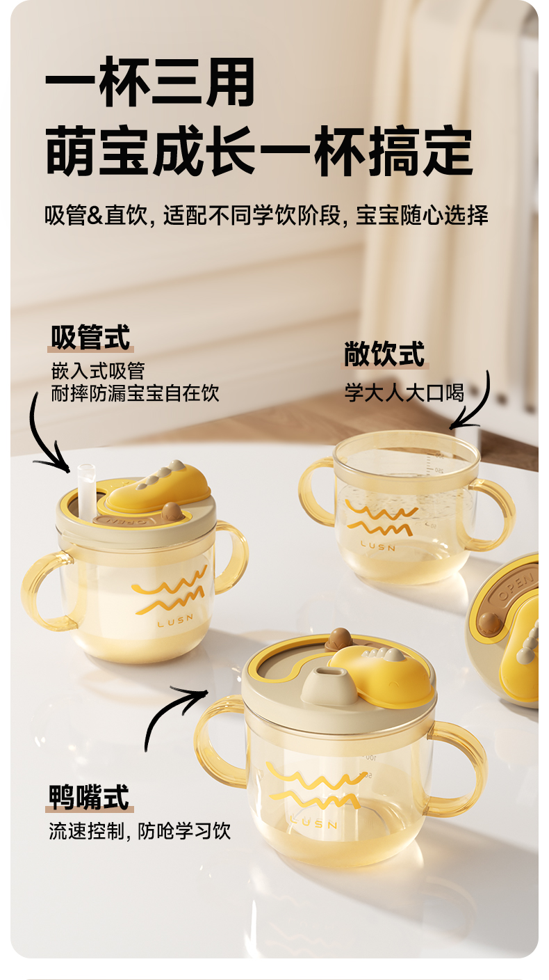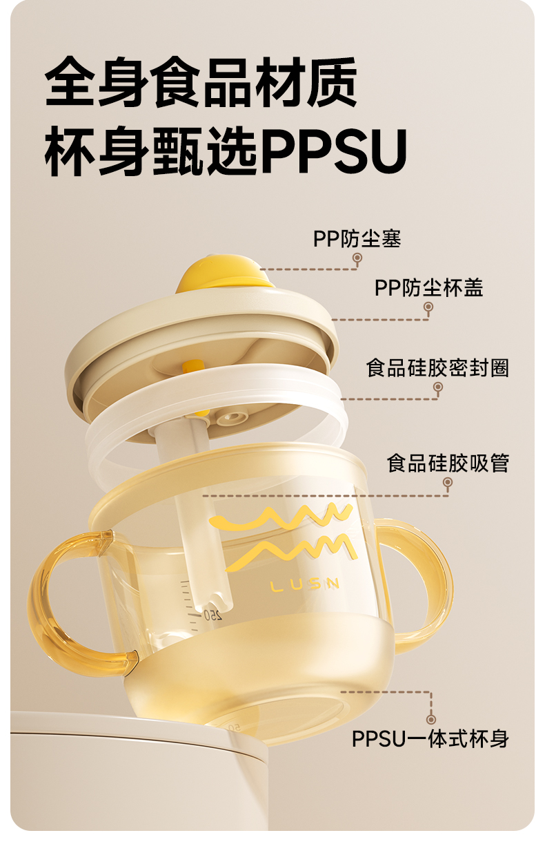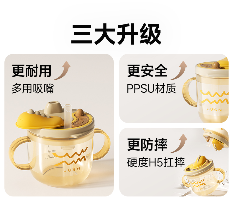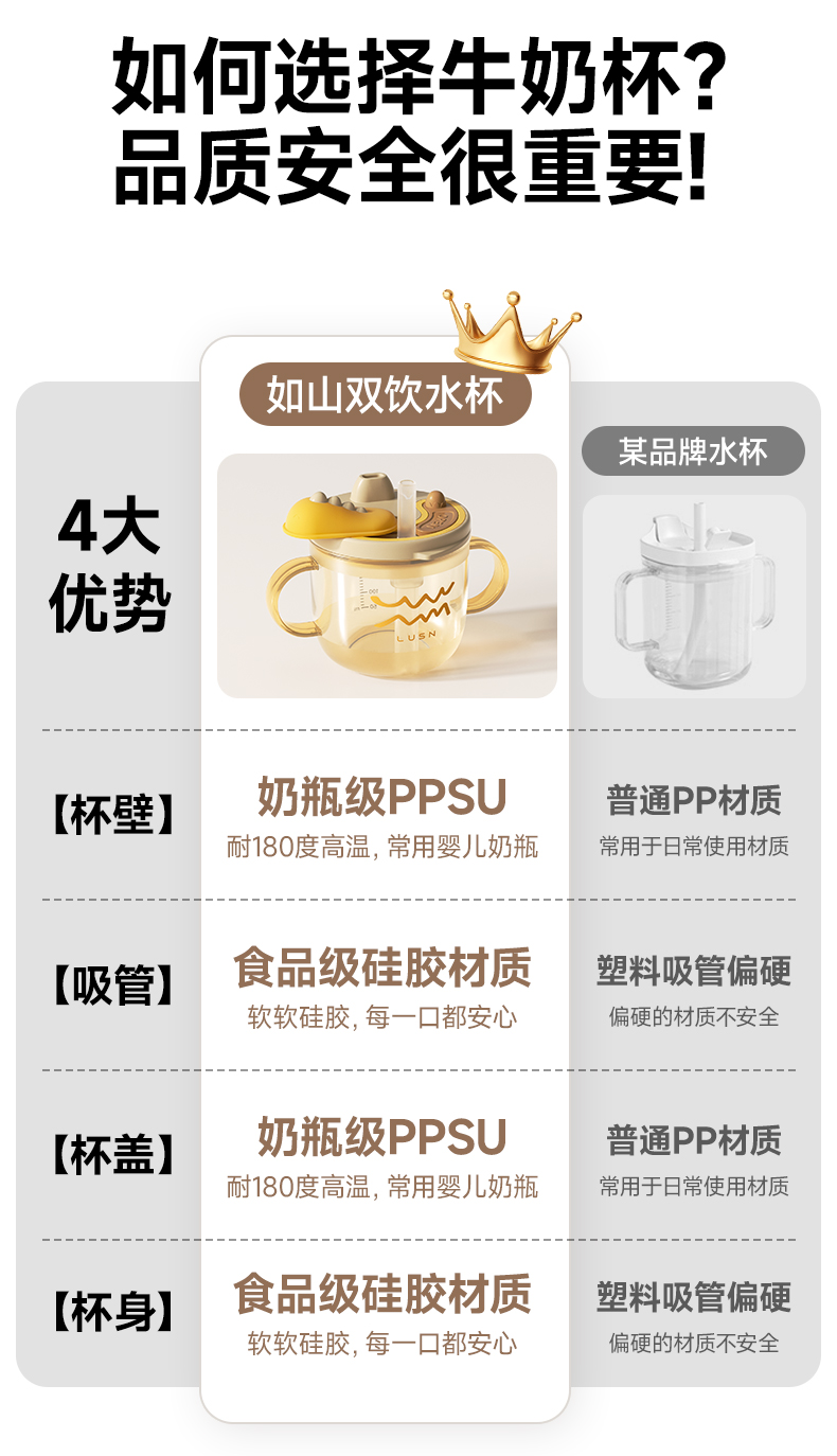 商品名称:如山儿童牛奶杯1-2-3岁以上宝宝奶瓶PPSU刻度吸管直饮喝水杯防摔