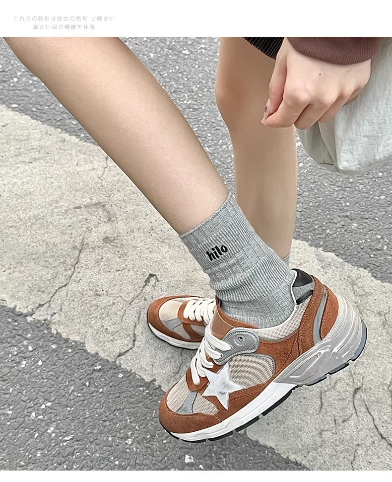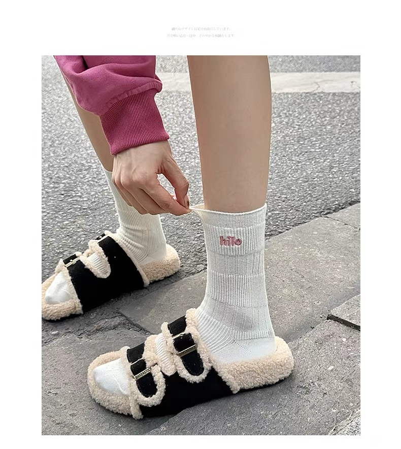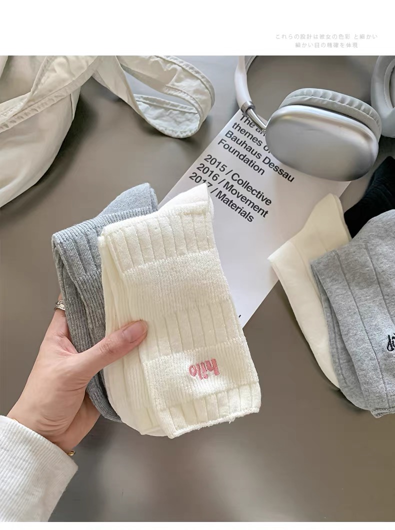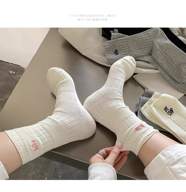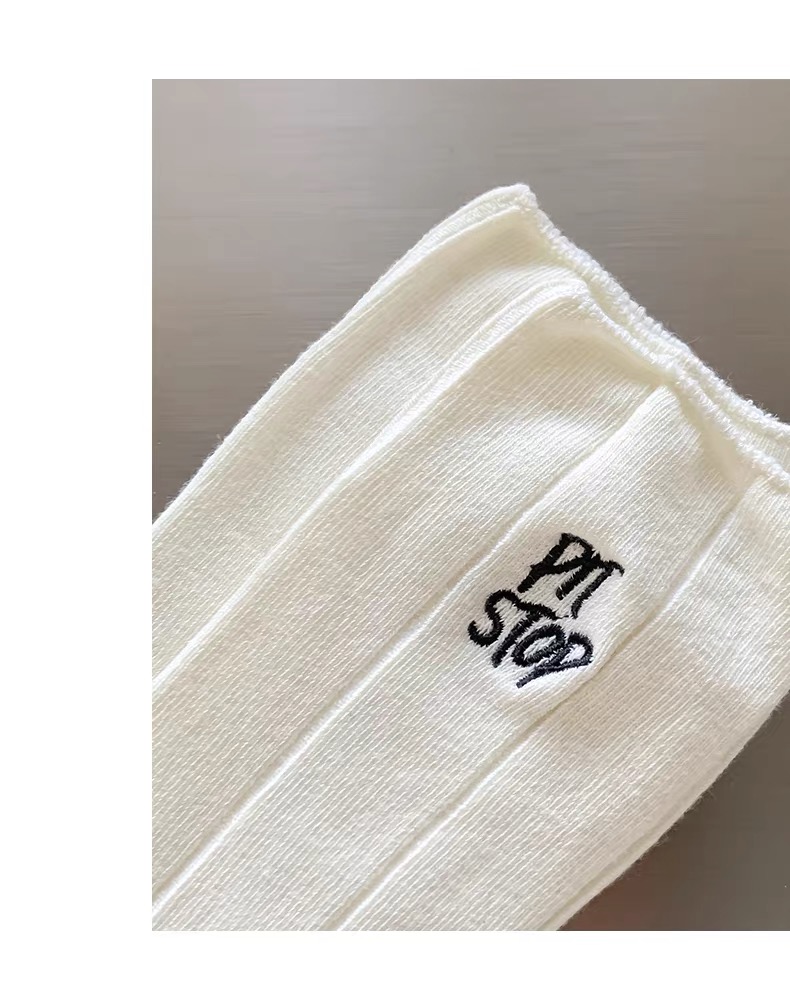 【5双装】朝暮栖止双针刺绣字母袜子女中筒简约堆堆袜高弹松口精梳棉袜显瘦