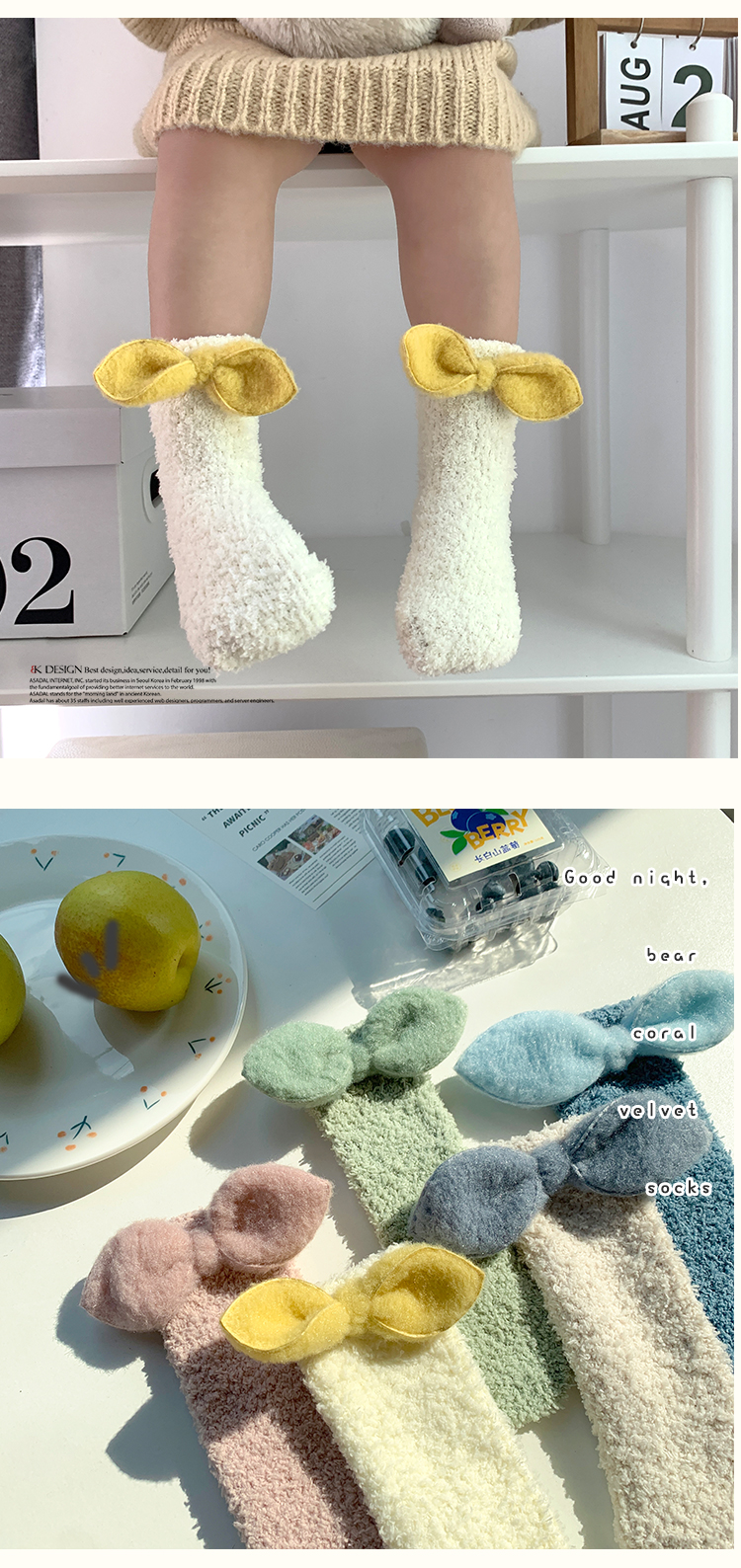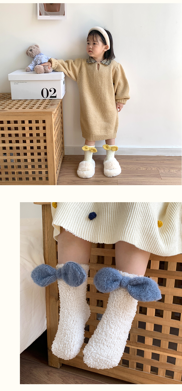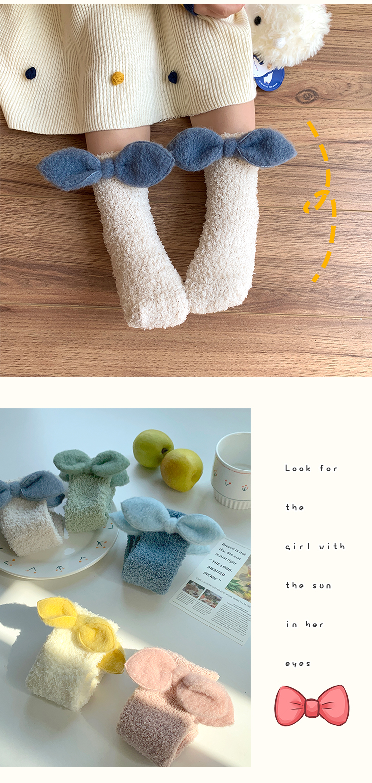 儿童蝴蝶结珊瑚绒袜