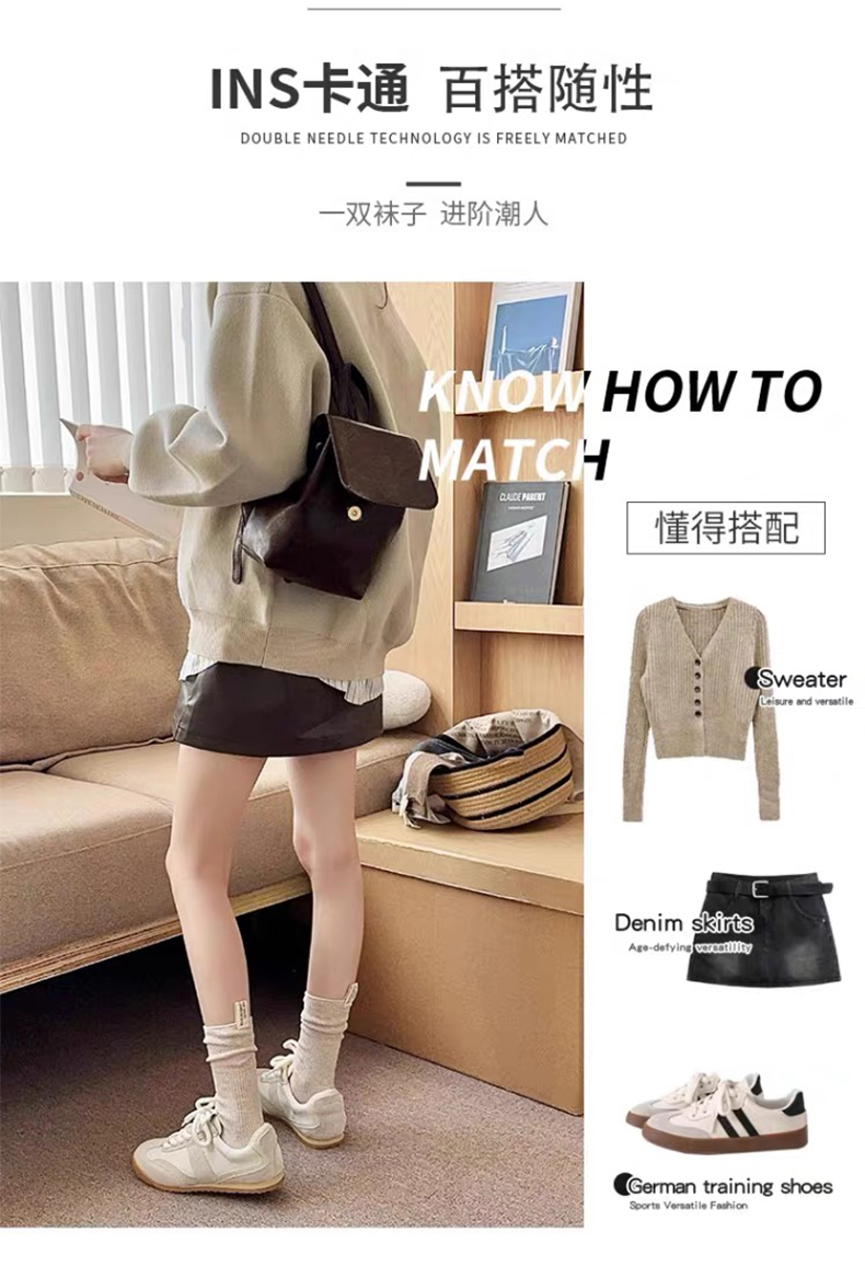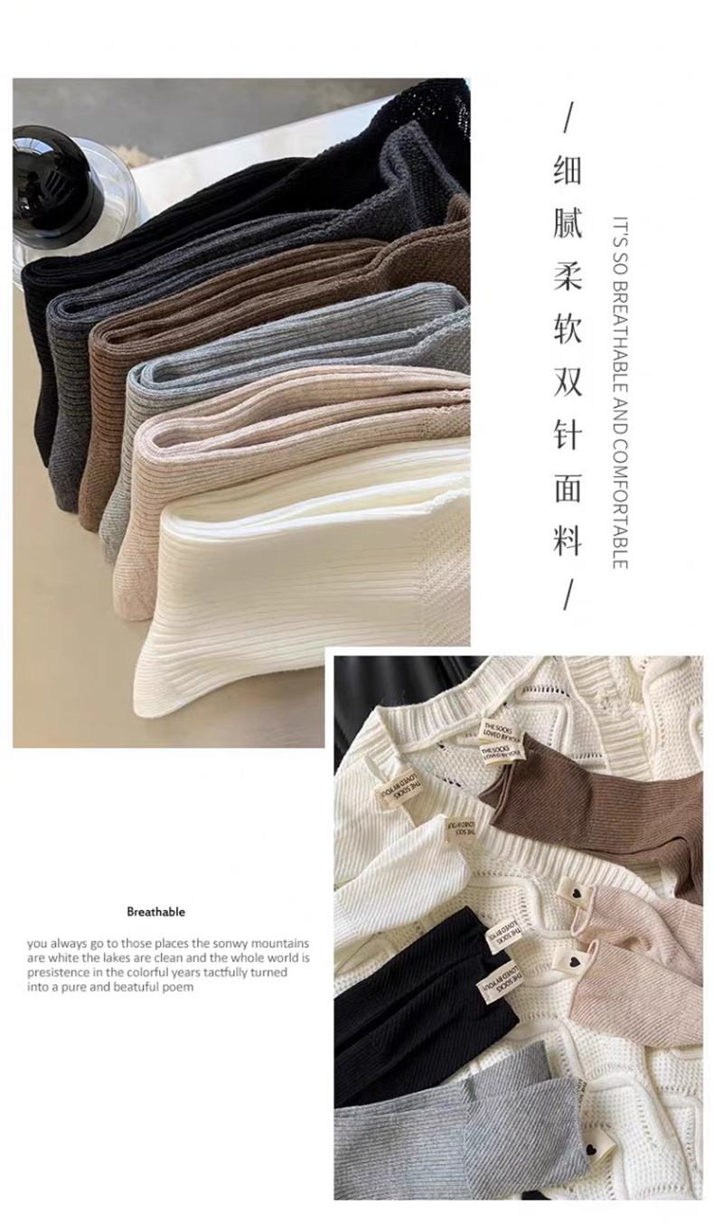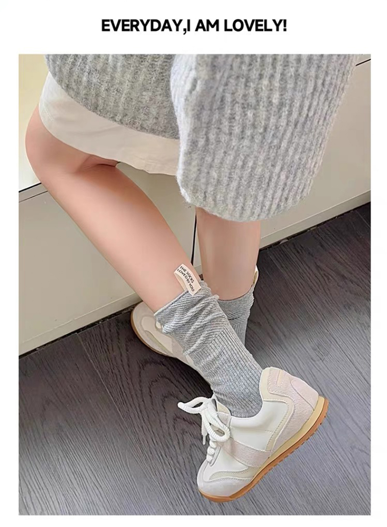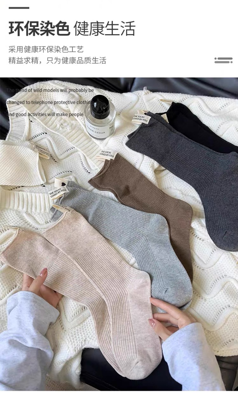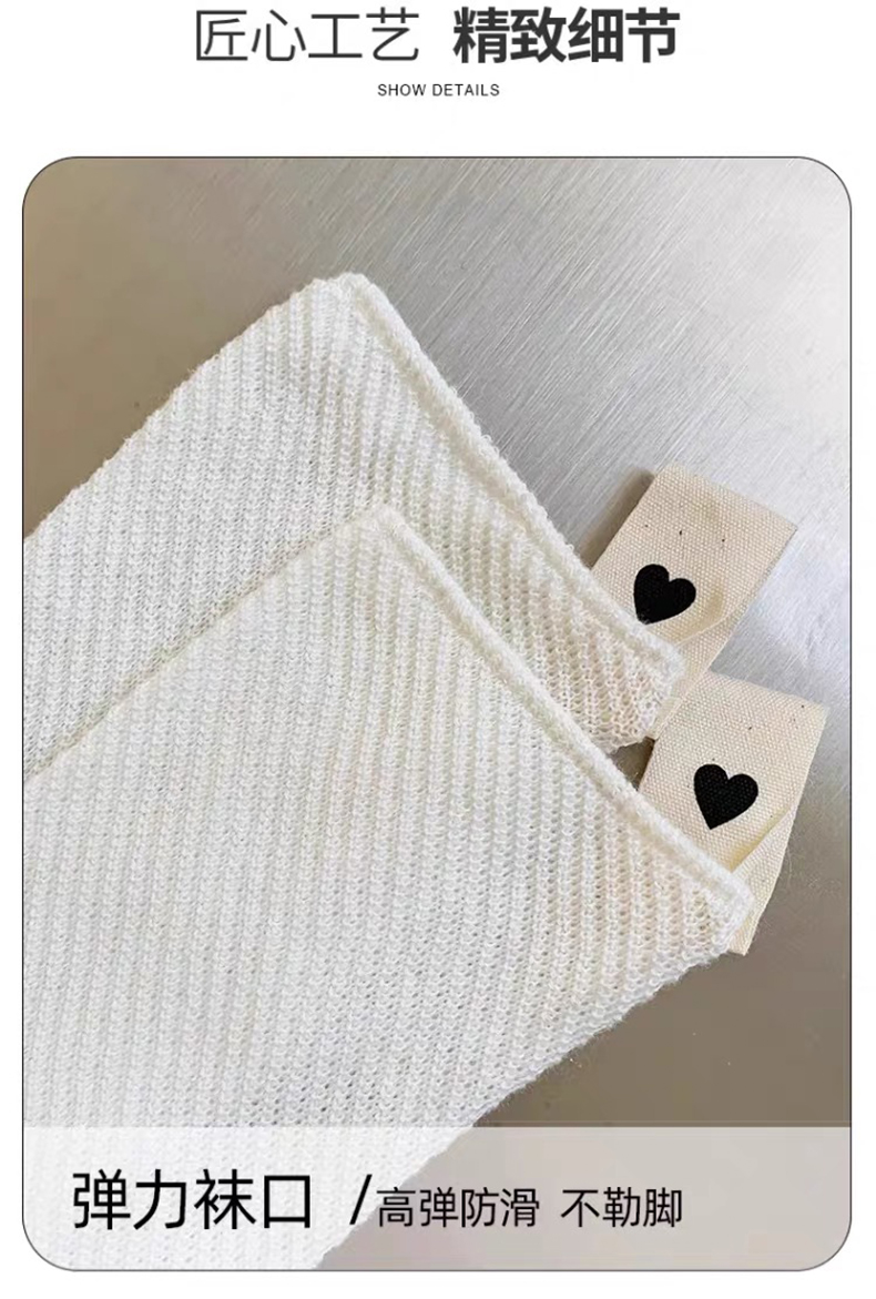商品名称:【5双装】朝暮栖止后跟布标中筒袜子个性少女小腿袜粗线双针网眼镂空堆堆袜