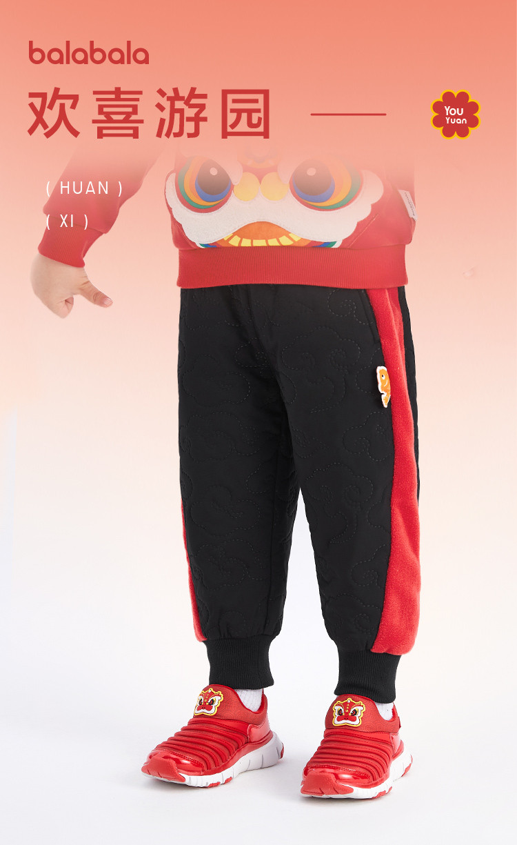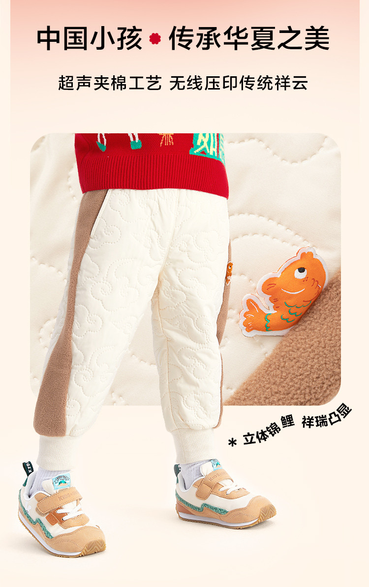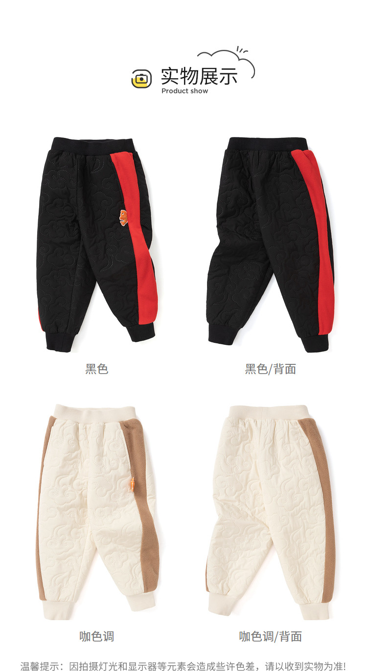 商品名称:超声夹棉工艺儿童国风加厚棉裤男童女童裤子宝宝春秋童装不卡档 538437