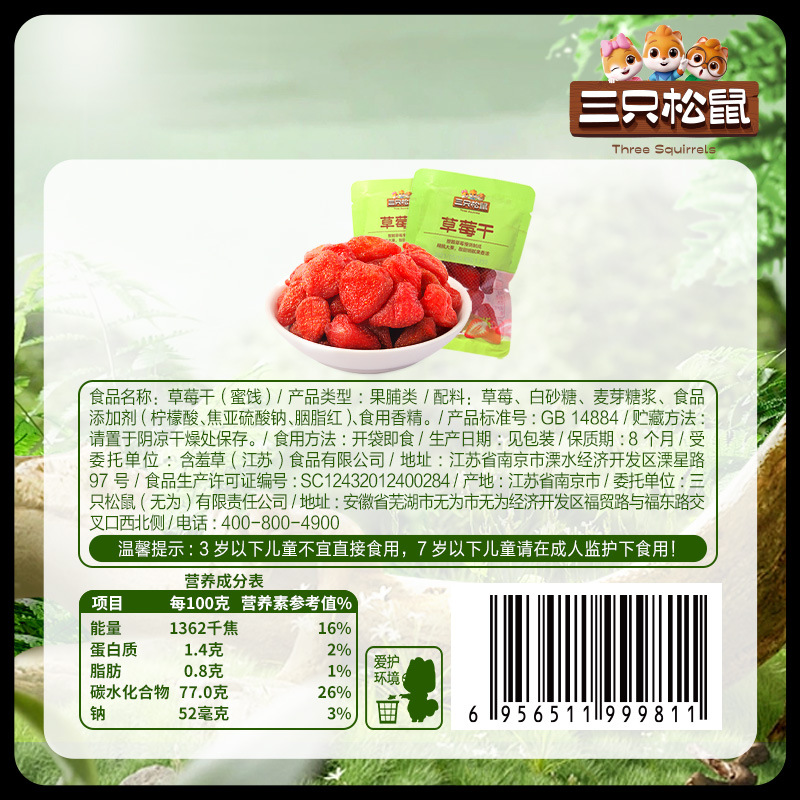 商品名称:三只松鼠草莓干36g/袋果干蜜饯果脯休闲健康零食水果干果干零食草莓干果