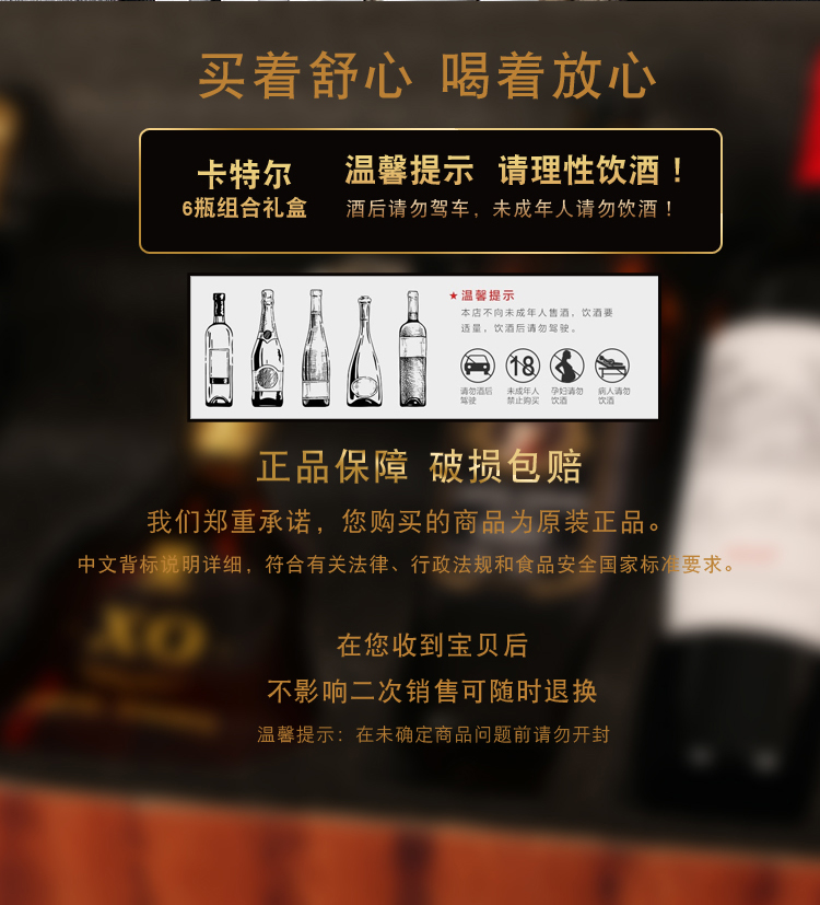 商品名称:卡特尔进口红酒干红葡萄酒和洋酒威士忌XO共6支组合精美礼盒【红酒洋酒组合大礼包】