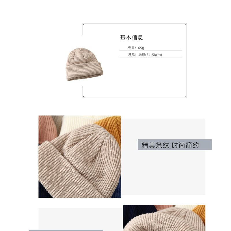 商品名称:彤彤兔 头围53-58cm 秋冬纯色光板卷边针织帽户外休闲防寒保暖毛线帽子