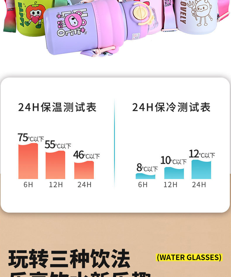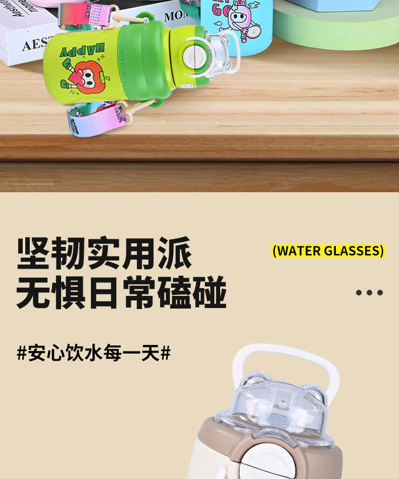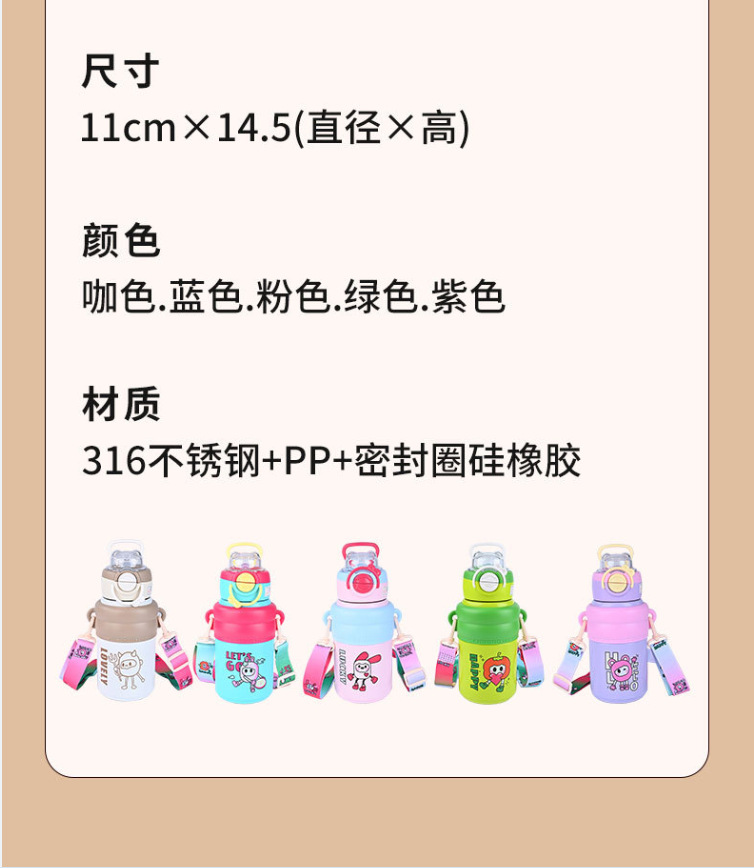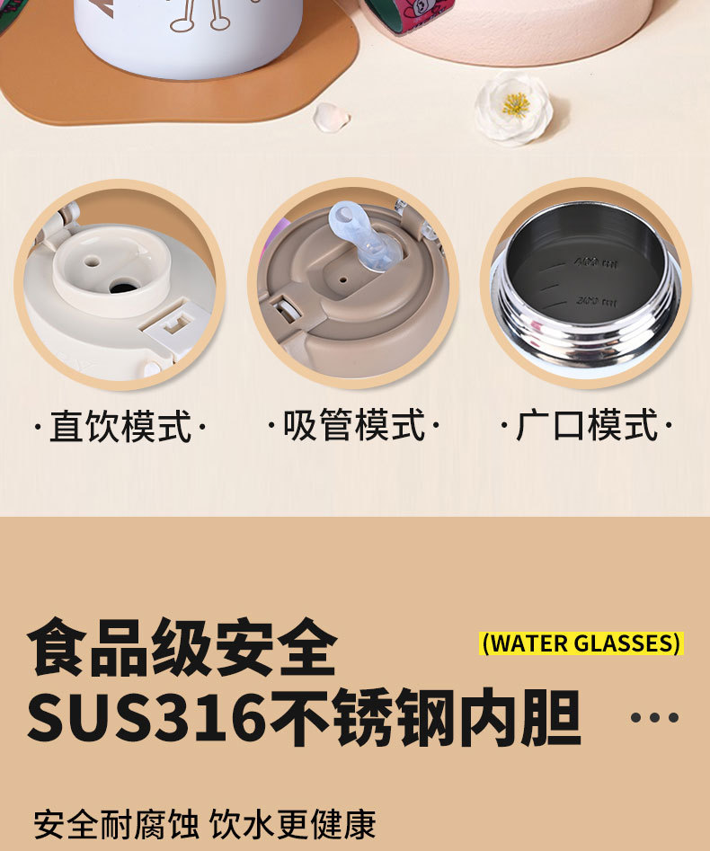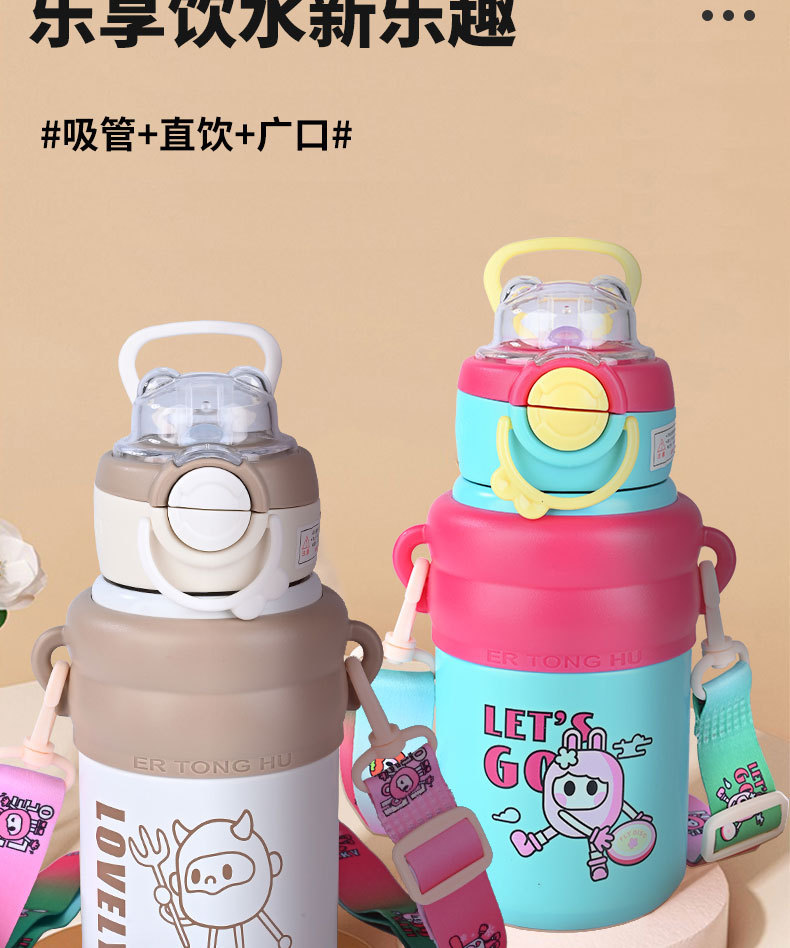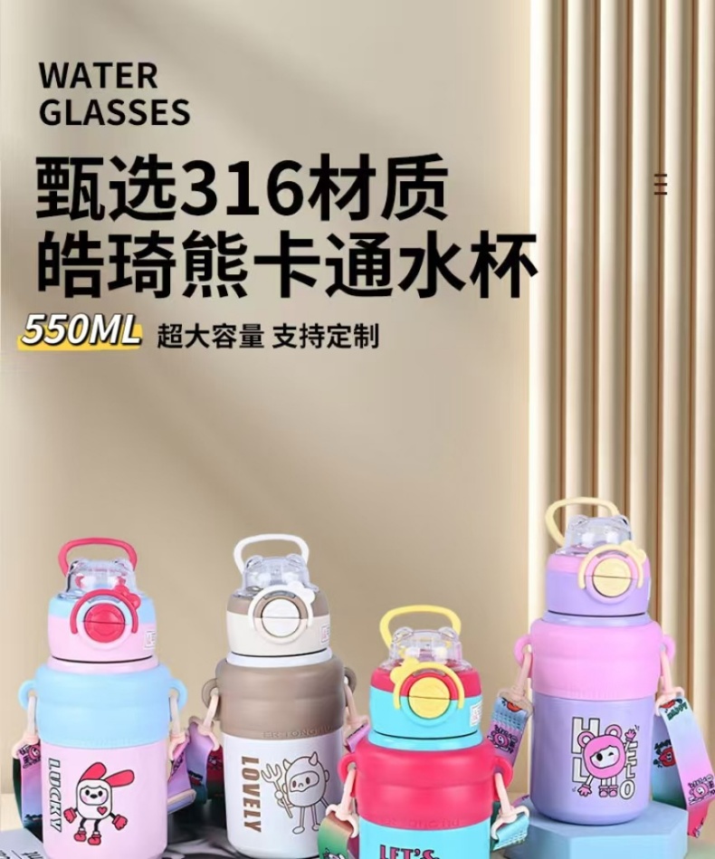 商品名称:2024新款歪歪熊高颜值儿童吸管保温杯316不锈钢水杯户外便携智能水杯