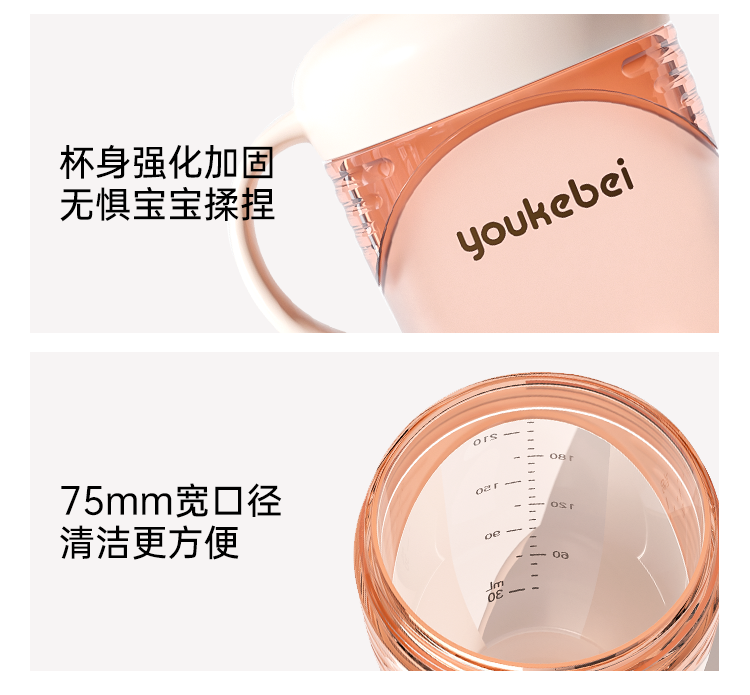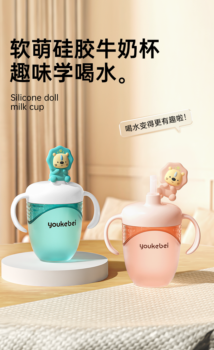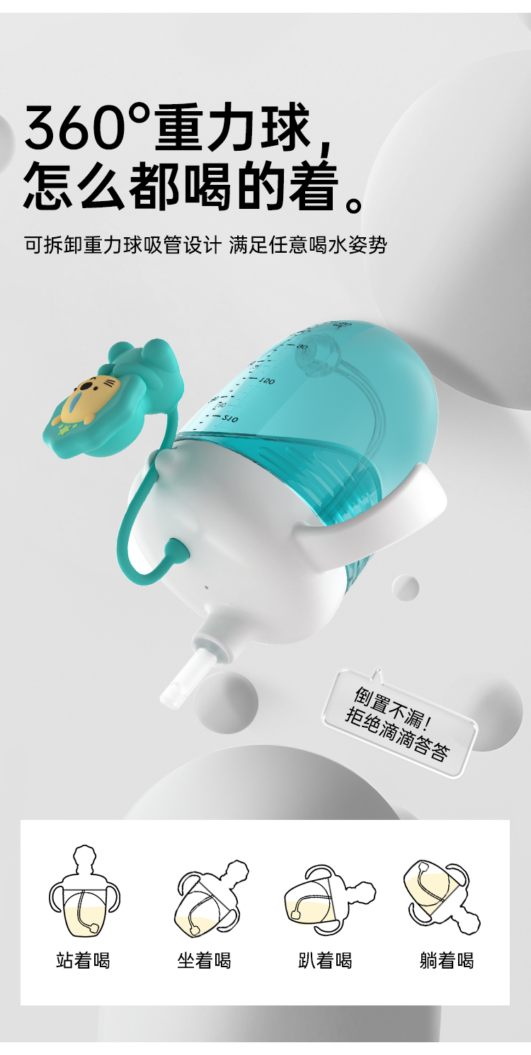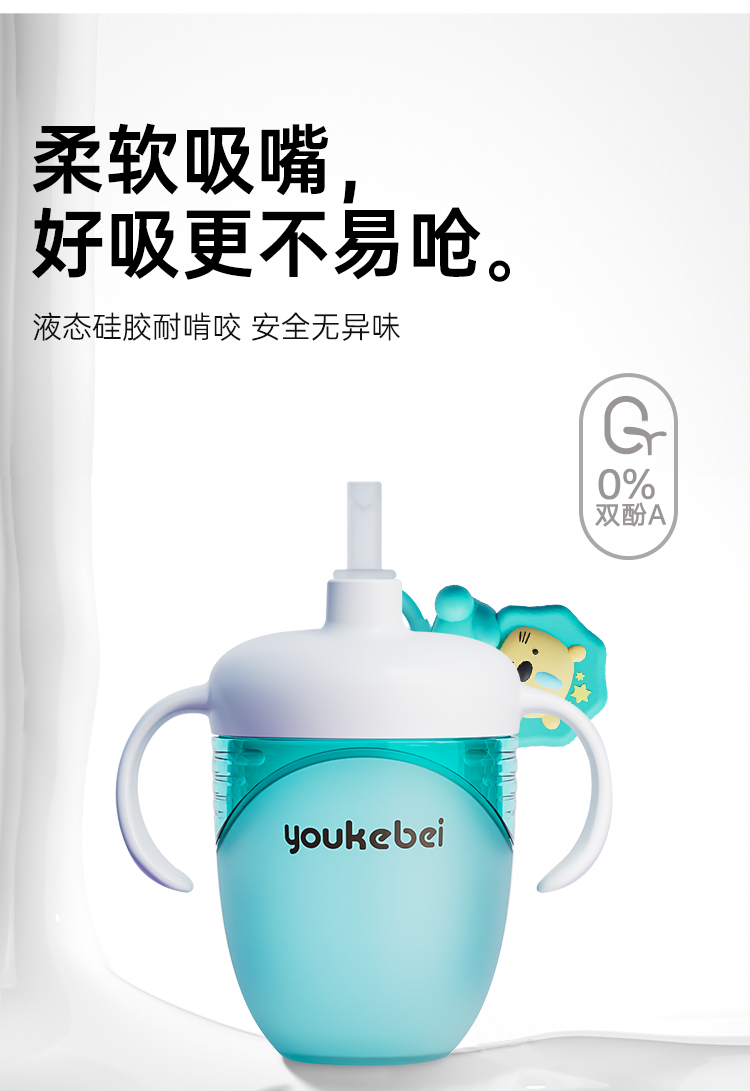 爱菲儿广口全硅胶耐摔防呛学饮杯婴幼儿直饮杯6个月以上宝宝防喷吸管奶瓶硅胶牛奶杯