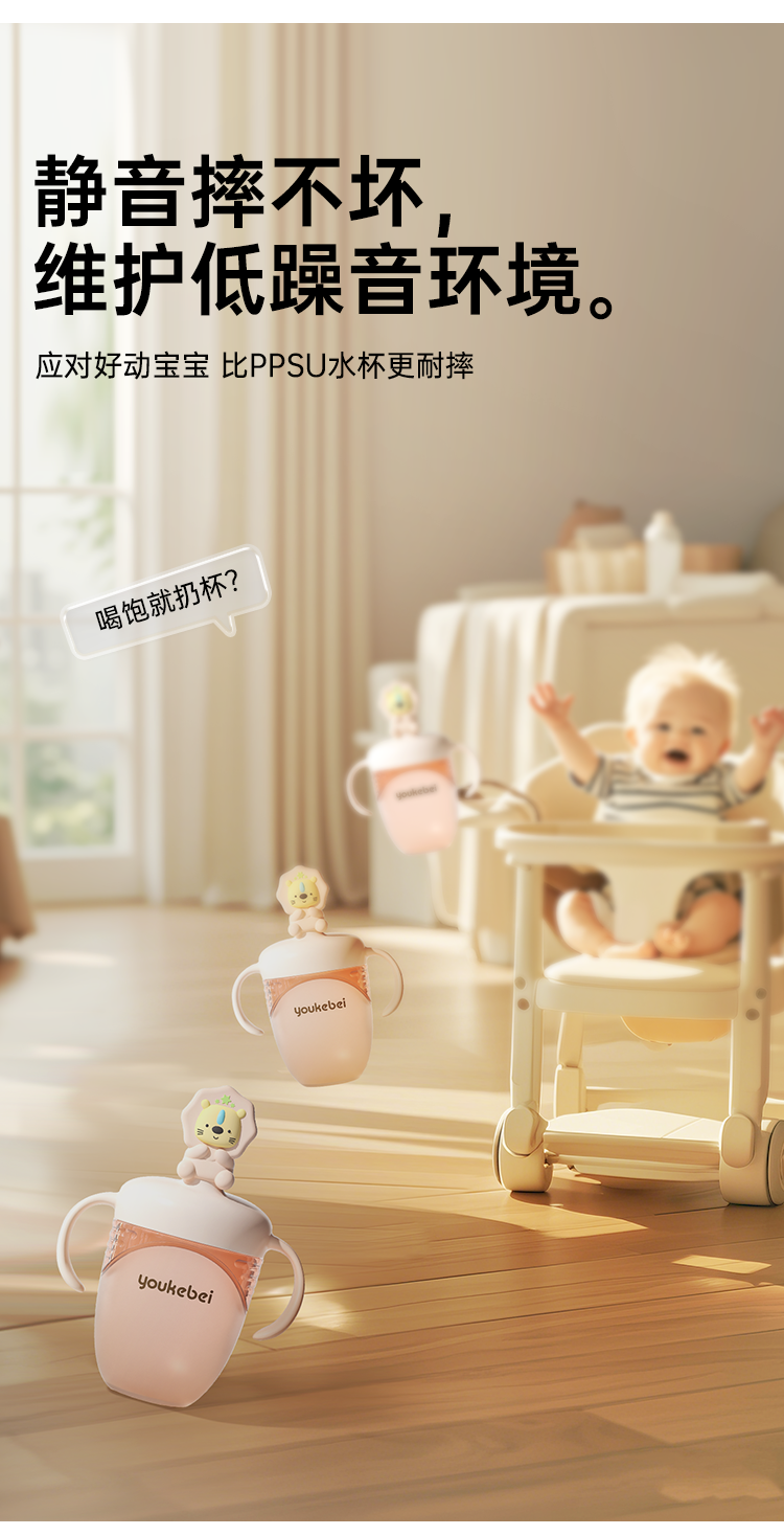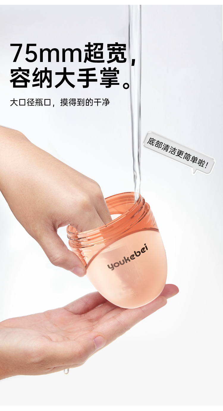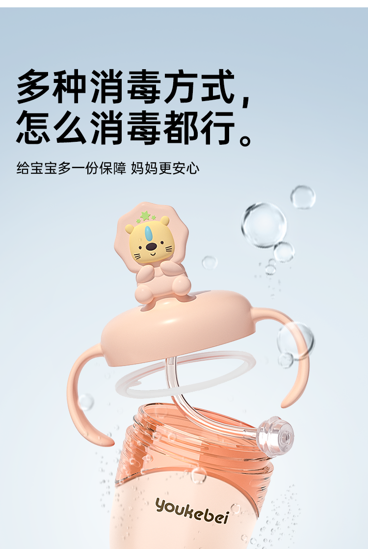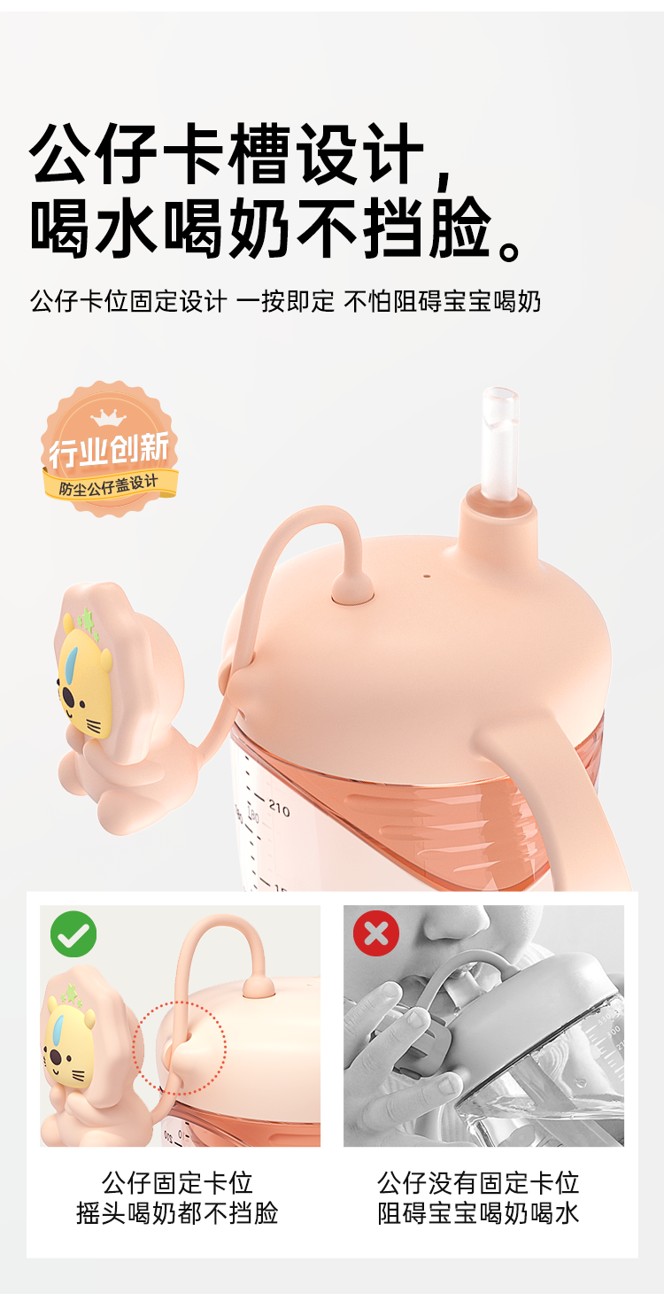 爱菲儿广口全硅胶耐摔防呛学饮杯婴幼儿直饮杯6个月以上宝宝防喷吸管奶瓶硅胶牛奶杯