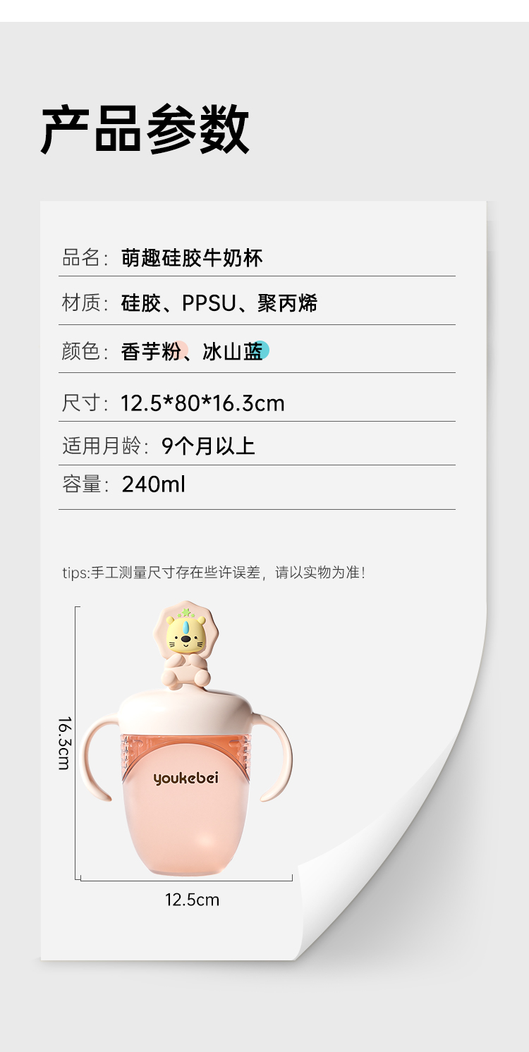 商品名称:爱菲儿广口全硅胶耐摔防呛学饮杯婴幼儿直饮杯6个月以上宝宝防喷吸管奶瓶硅胶牛奶杯