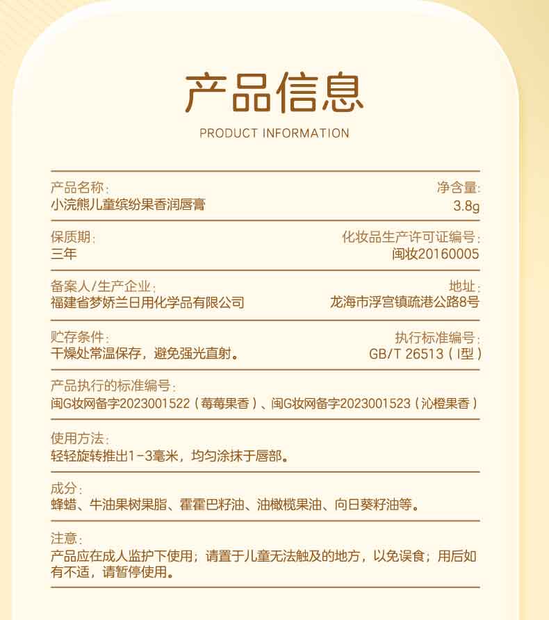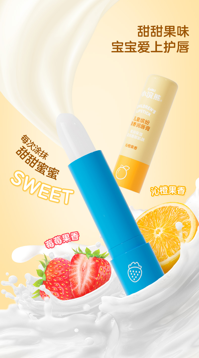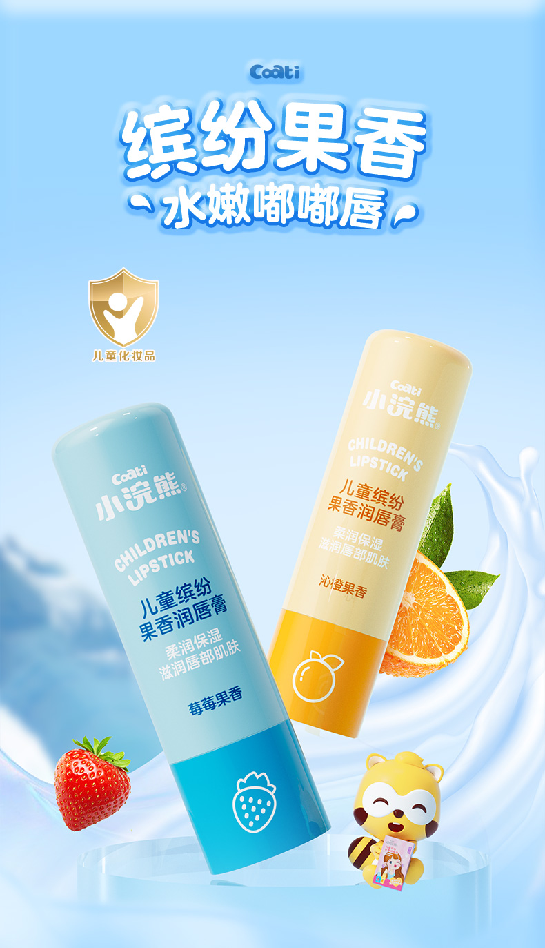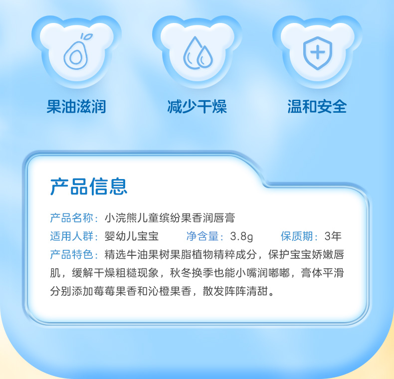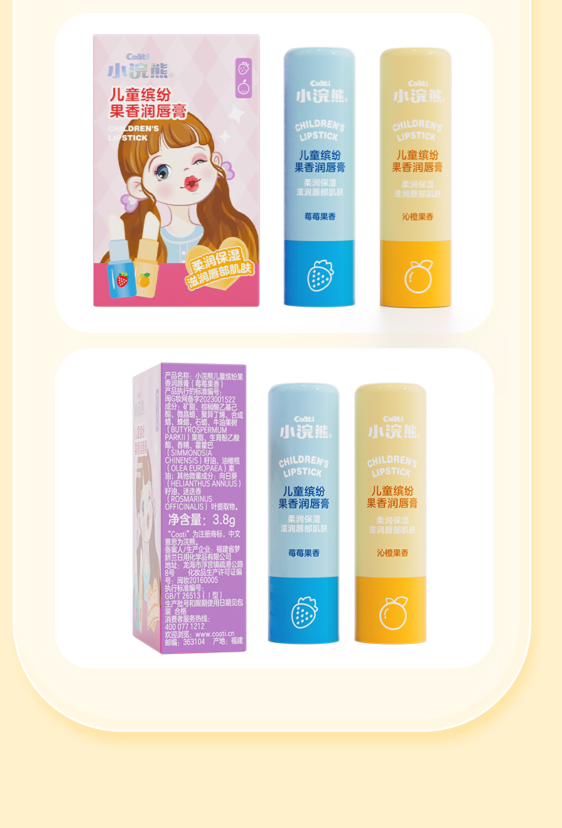 商品名称:【品牌直供】小浣熊果香缤纷润唇膏3.8g两支装儿童学生护唇补水保湿润唇膏口味可选