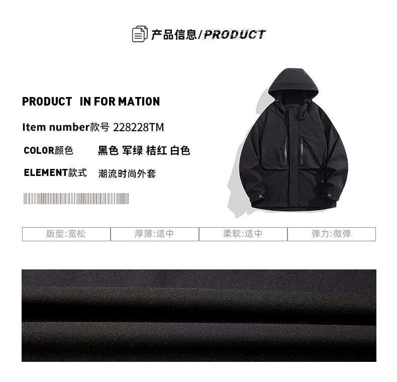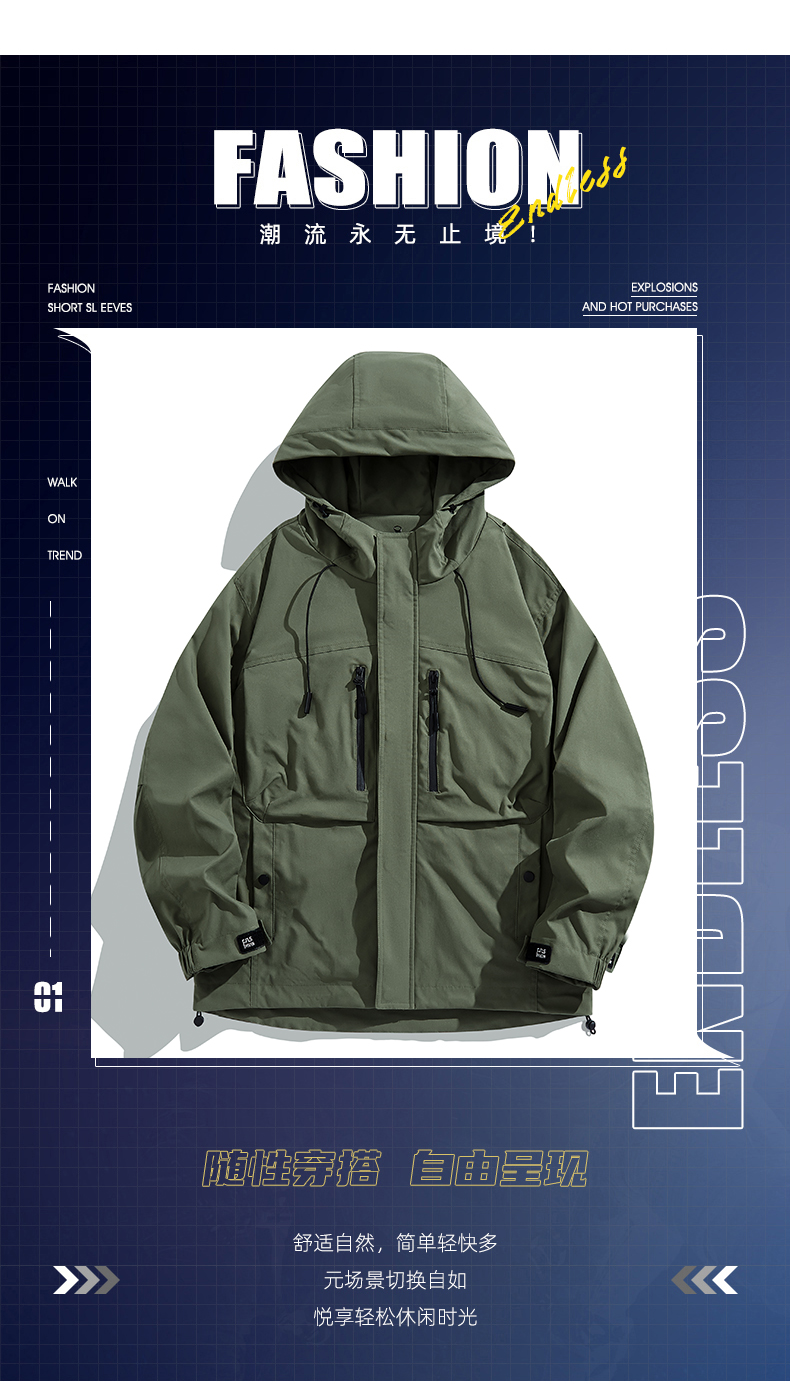 商品名称:曼西尔奴男士潮流时尚复古宽松百搭舒适休闲连帽夹克228228TM