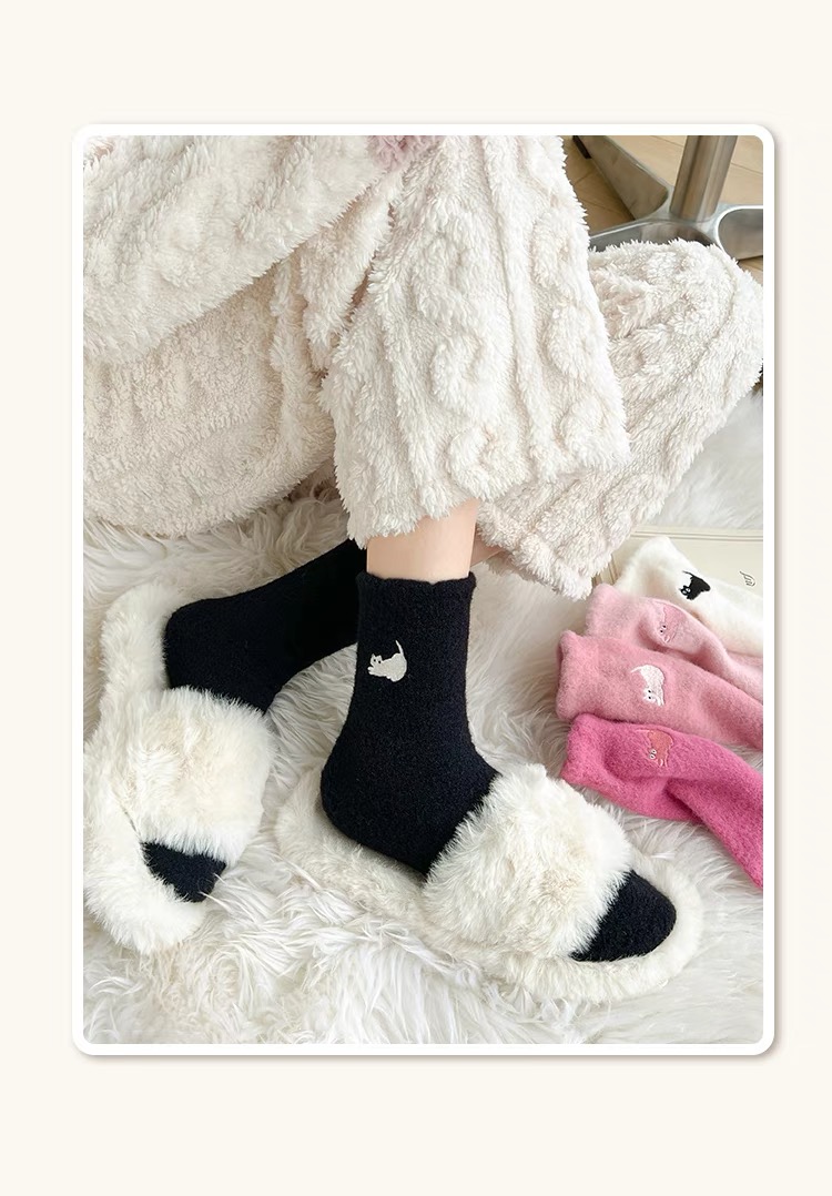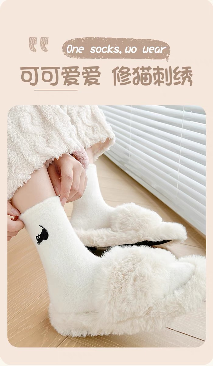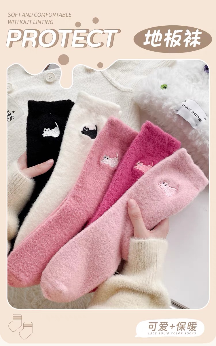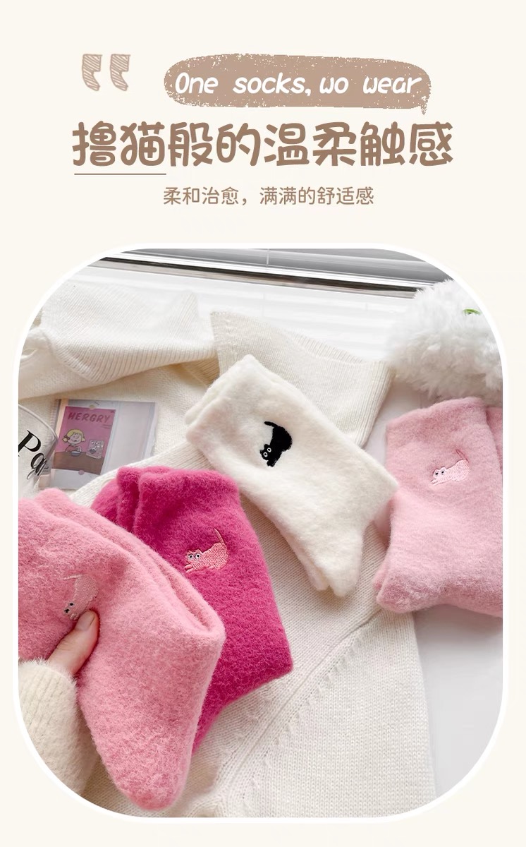 商品名称:【5双装】冬季长款袜子女加绒保暖加厚秋冬可爱中筒袜长筒粉色毛茸茸澳绒