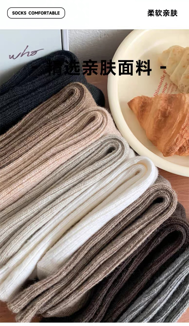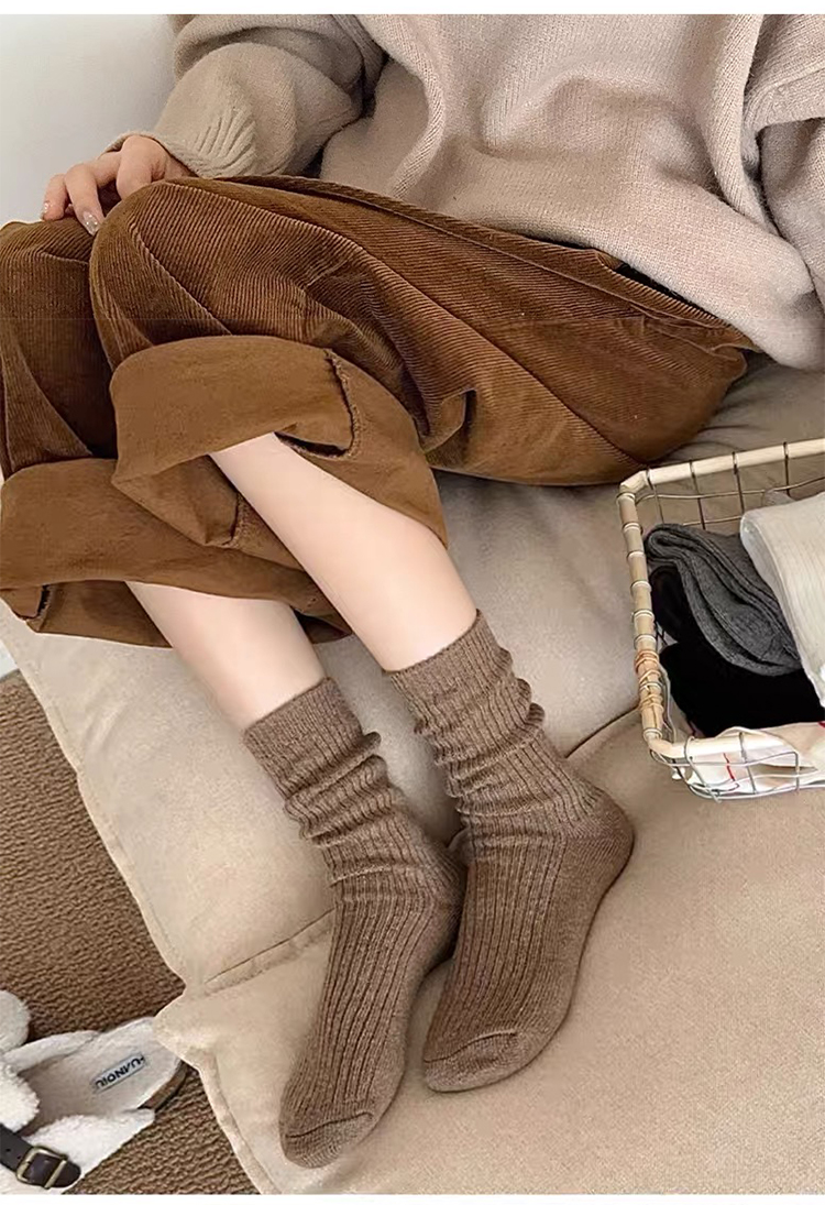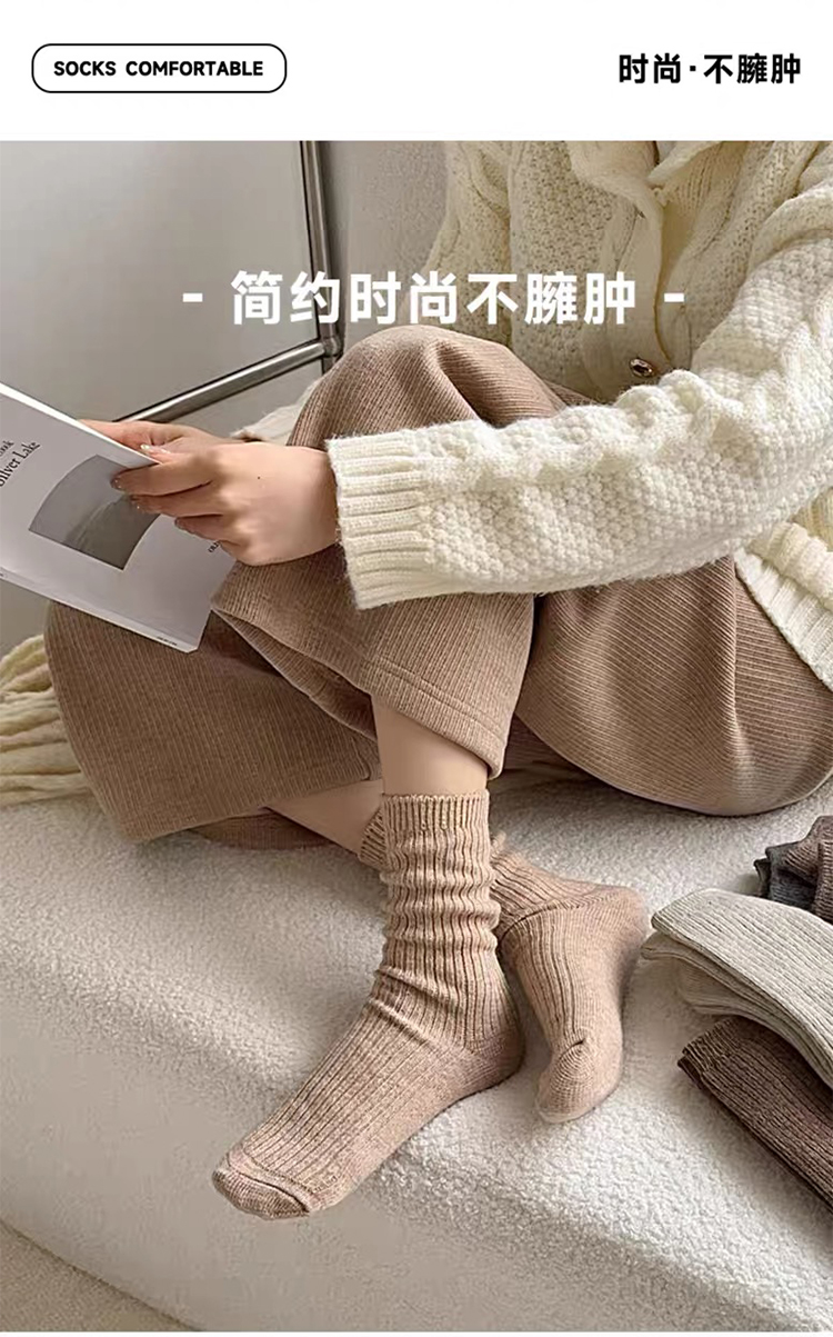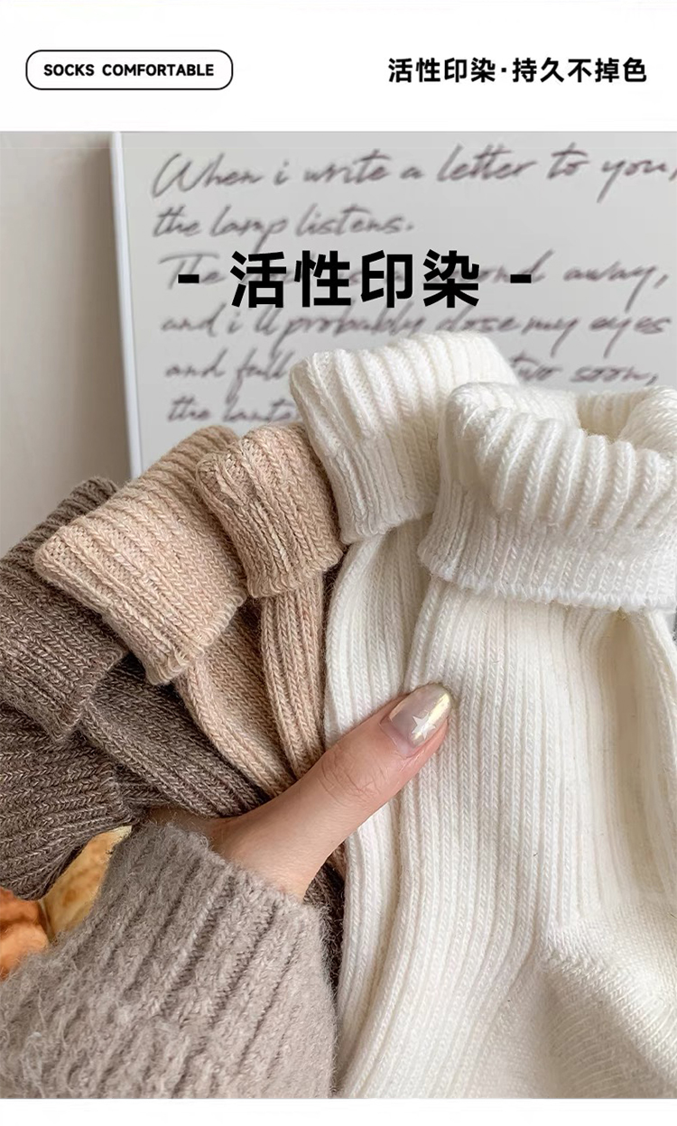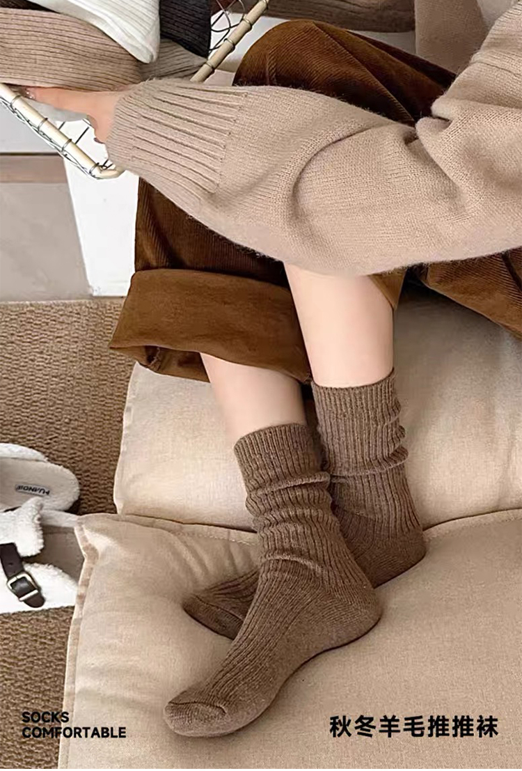 商品名称:【5双装】朝暮栖止羊毛袜子女秋冬保暖双针中筒袜加绒加厚堆堆袜子冬睡眠袜