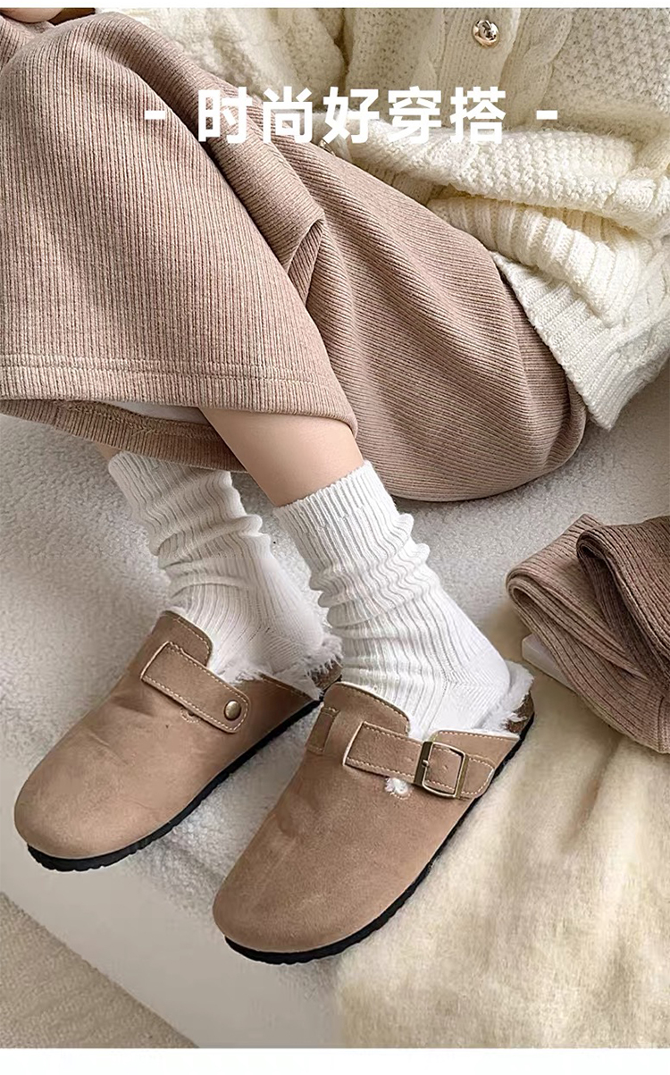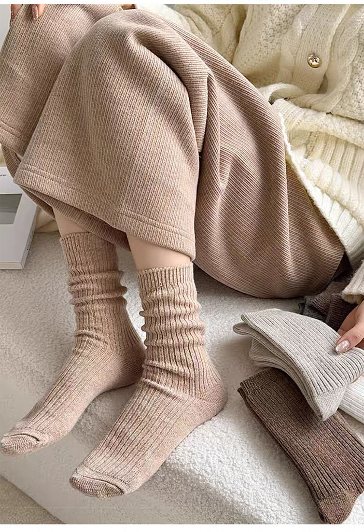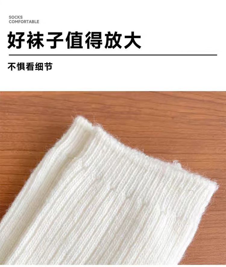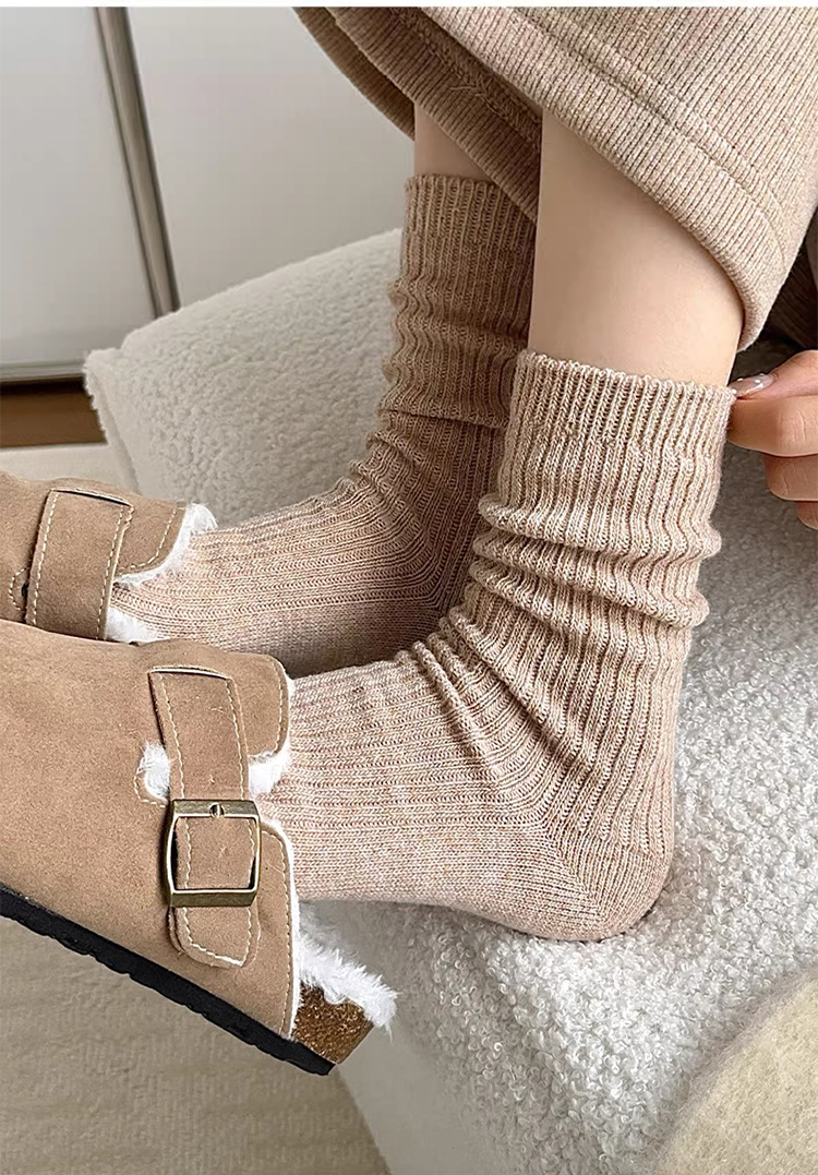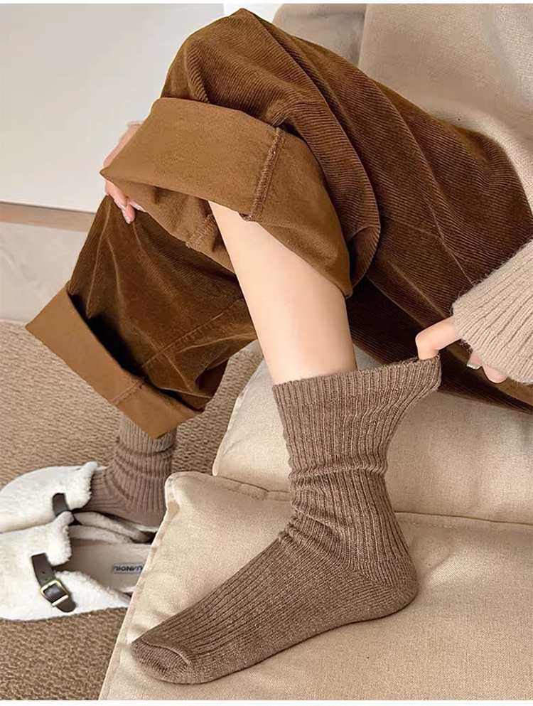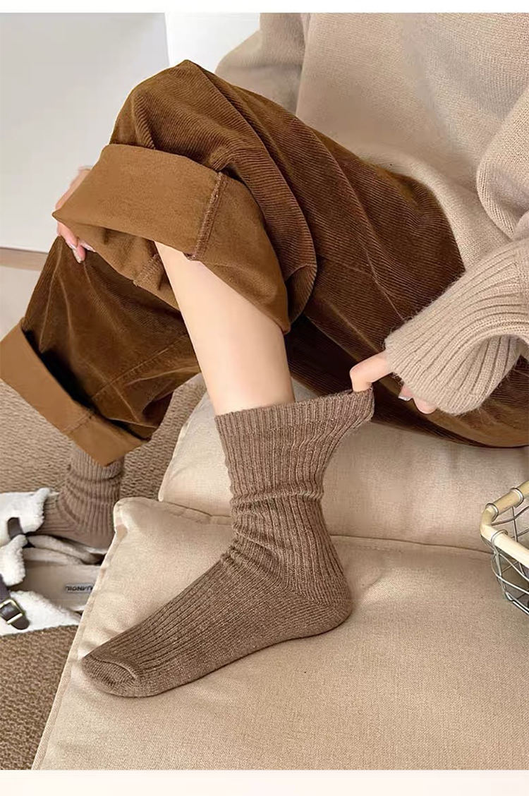 商品名称:【5双装】朝暮栖止羊毛袜子女秋冬保暖双针中筒袜加绒加厚堆堆袜子冬睡眠袜